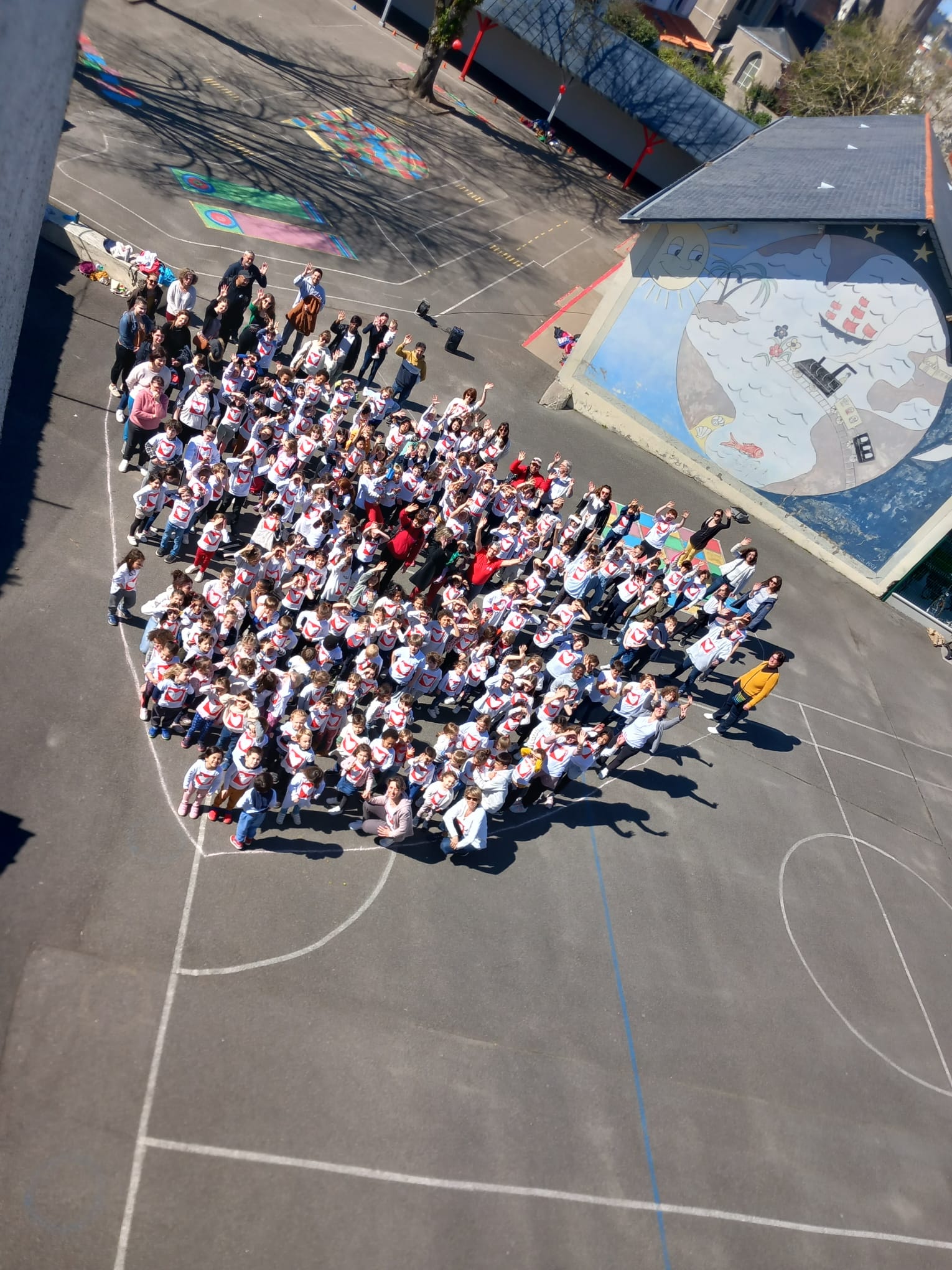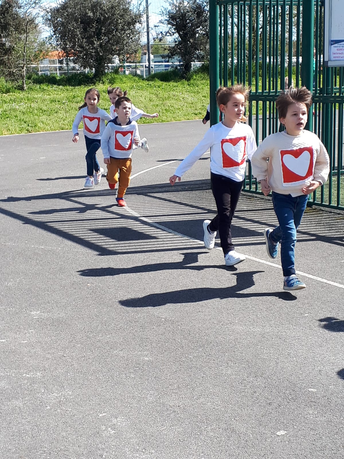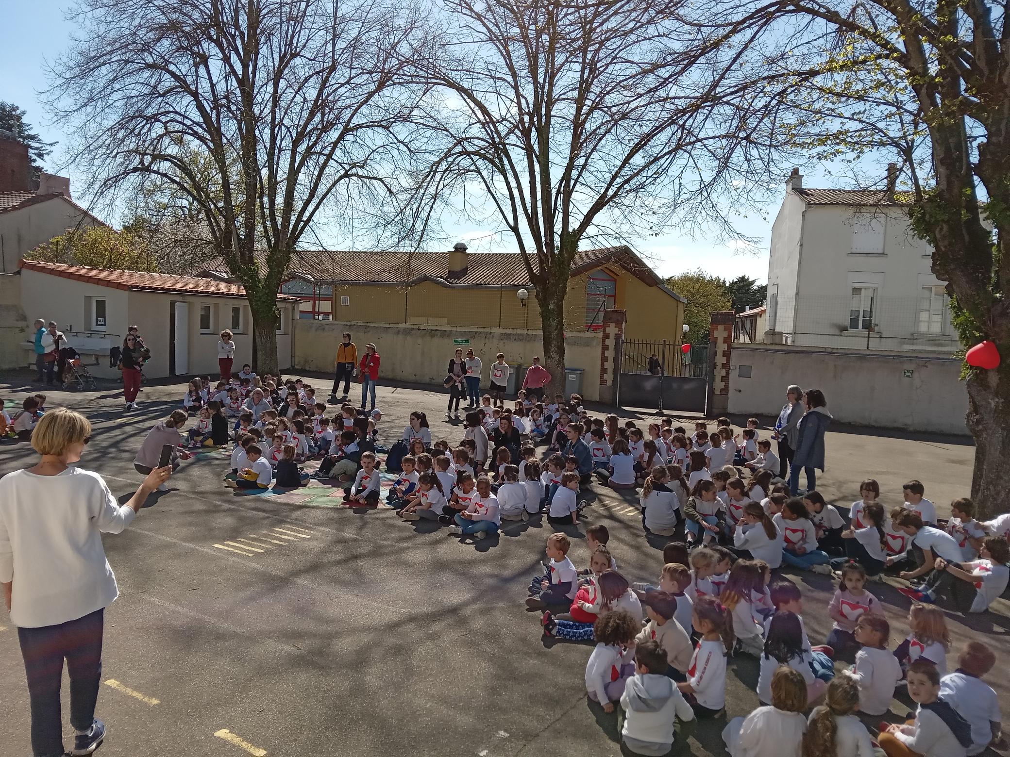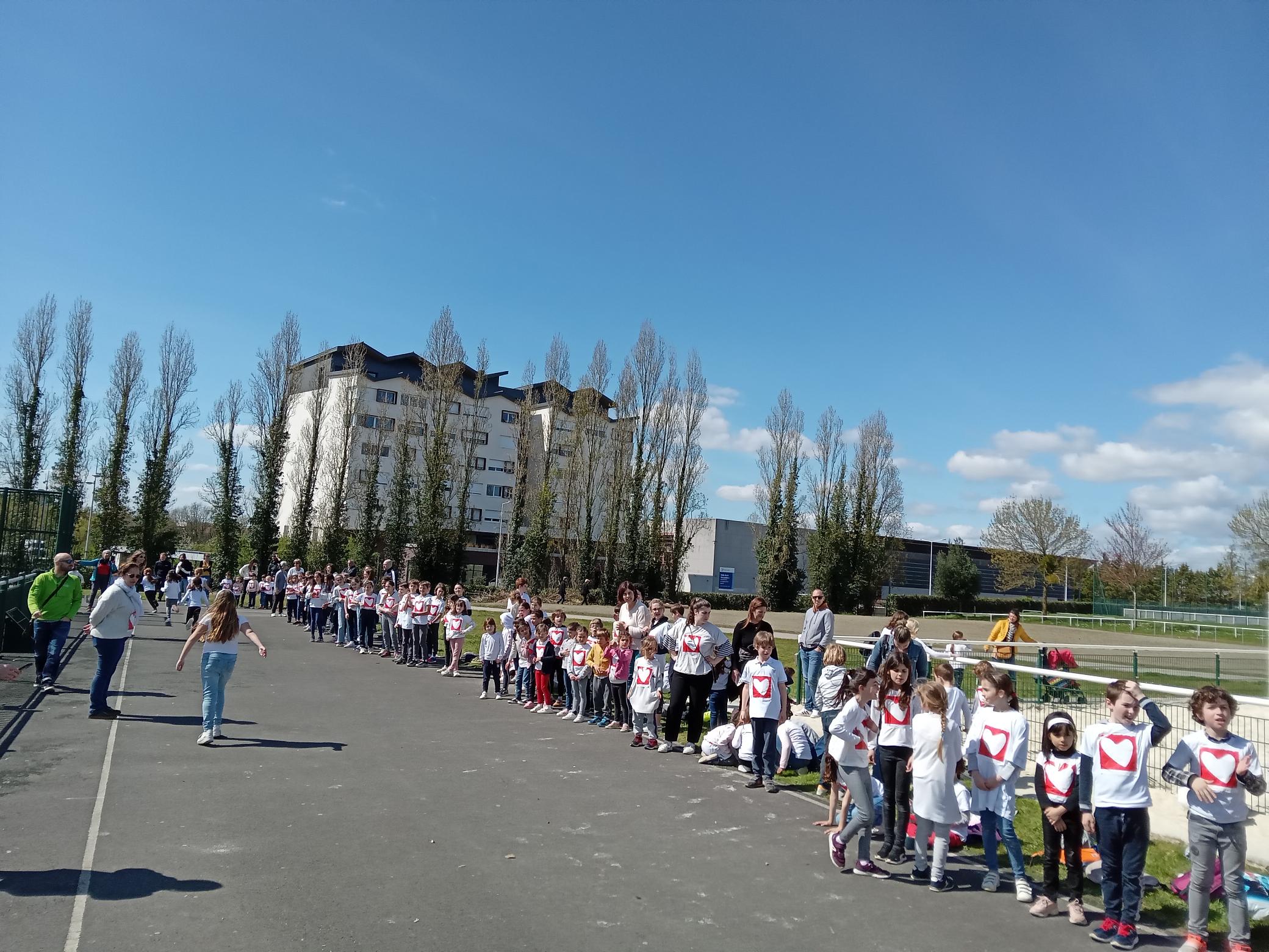 Les 3 axes du projet pédagogique de l’école : la solidarité, l’environnement et l’ouverture à l’autre se déclinent cette année autour du cœur. Nous avons fait de nombreux projets et actions et aujourd’hui avait lieu un temps fort attendu avec impatience par les enfants : la rando-cross solidaire au profit de l’association Mécénat Chirurgie Cardiaque. Les bénévoles étaient venus dans les classes en mars pour présenter l’association qui permet à des enfants malades du cœur de venir se faire opérer en France. Ils sont accueillis par des familles d’accueil le temps de leur présence en France. L’école avait aussi suivi Samantha Davis soutenue par l’association en novembre pendant la Route du Rhum.