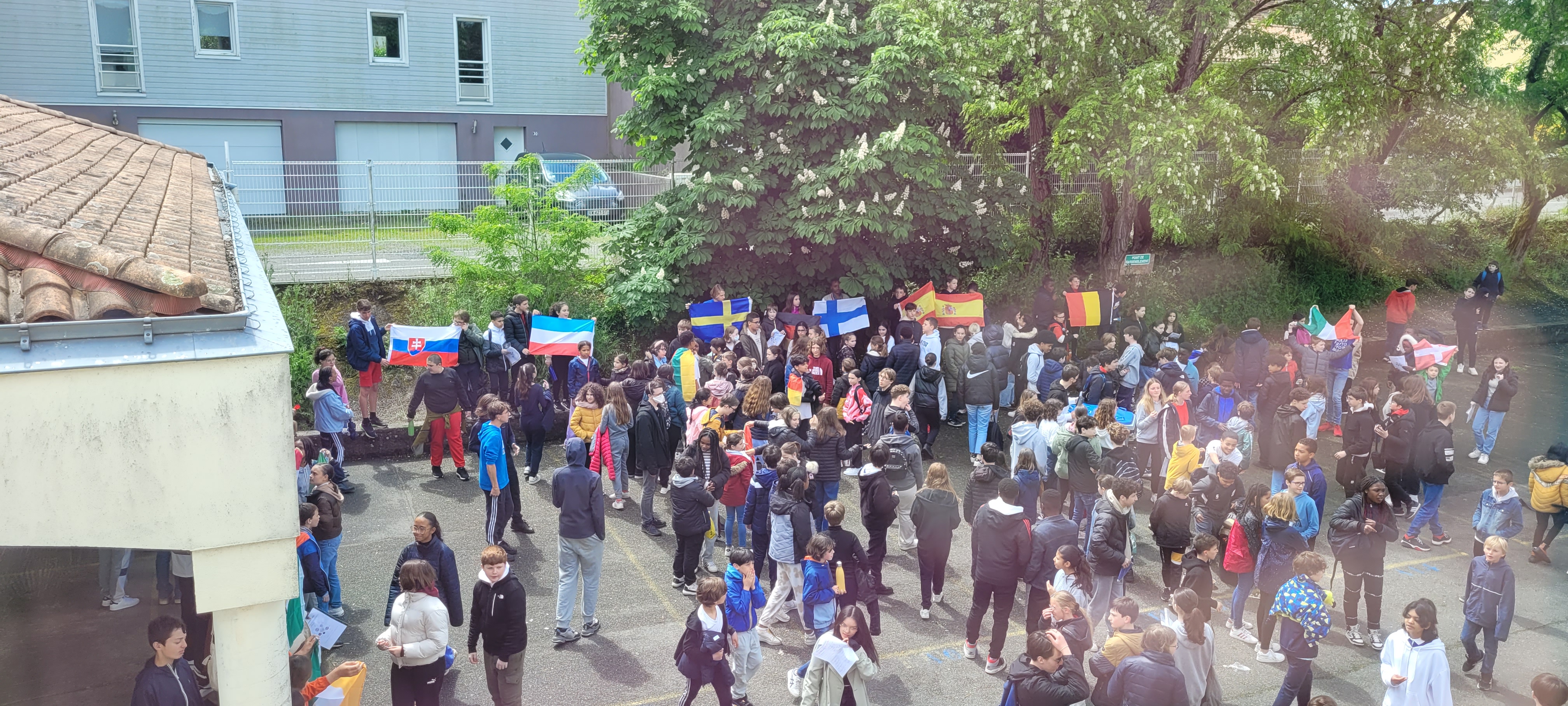 - À l’occasion de la journée de l’Europe, le 9 mai, les élèves de CM1 et CM2 ont partagé de bons moments avec les collégiens. Rassemblement au collège, formation de groupes mixtes, ateliers, pique-nique, remise de médailles