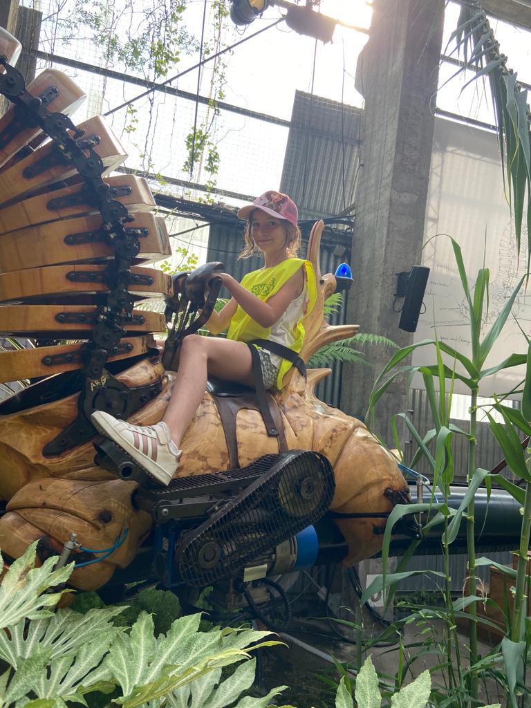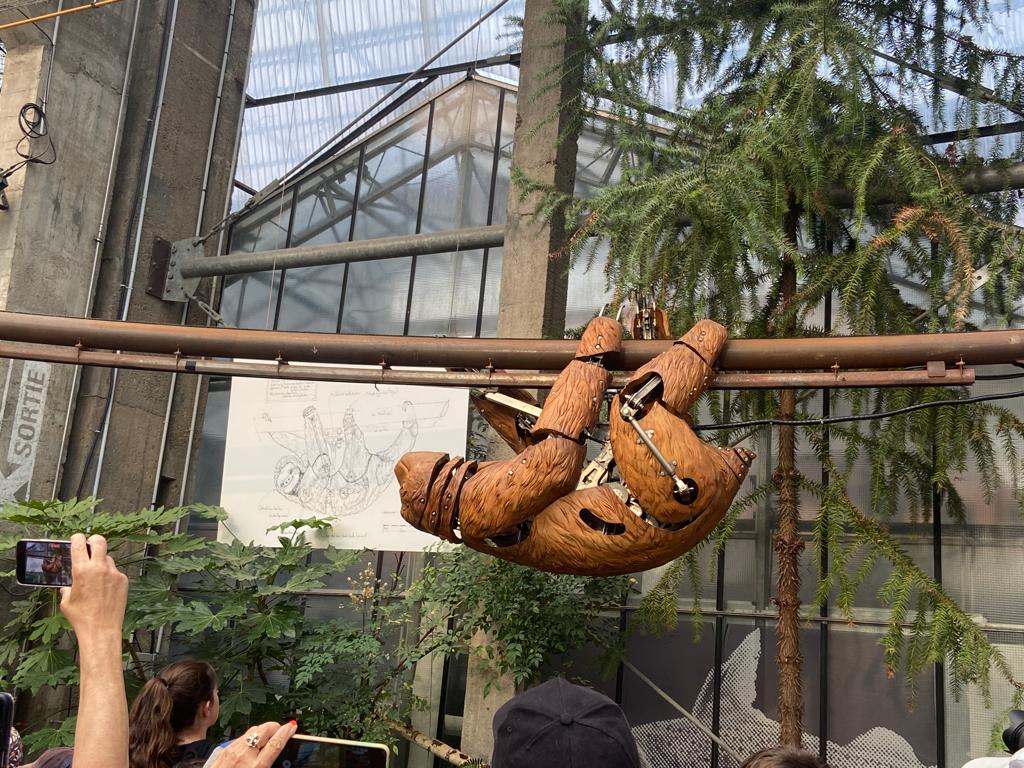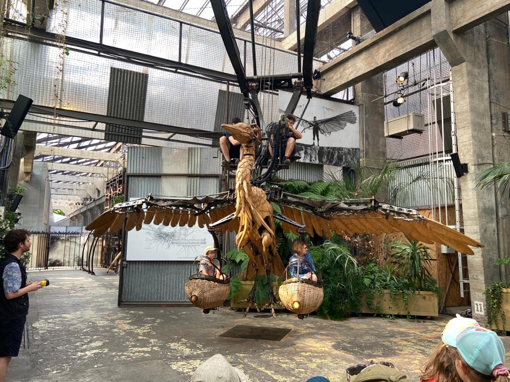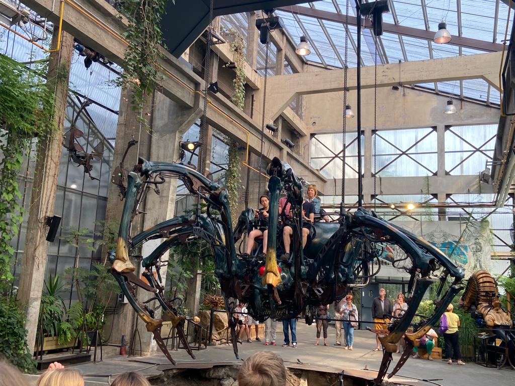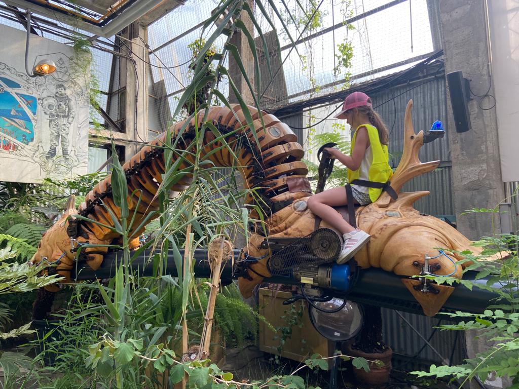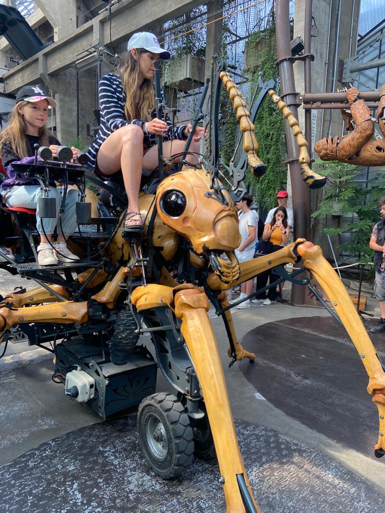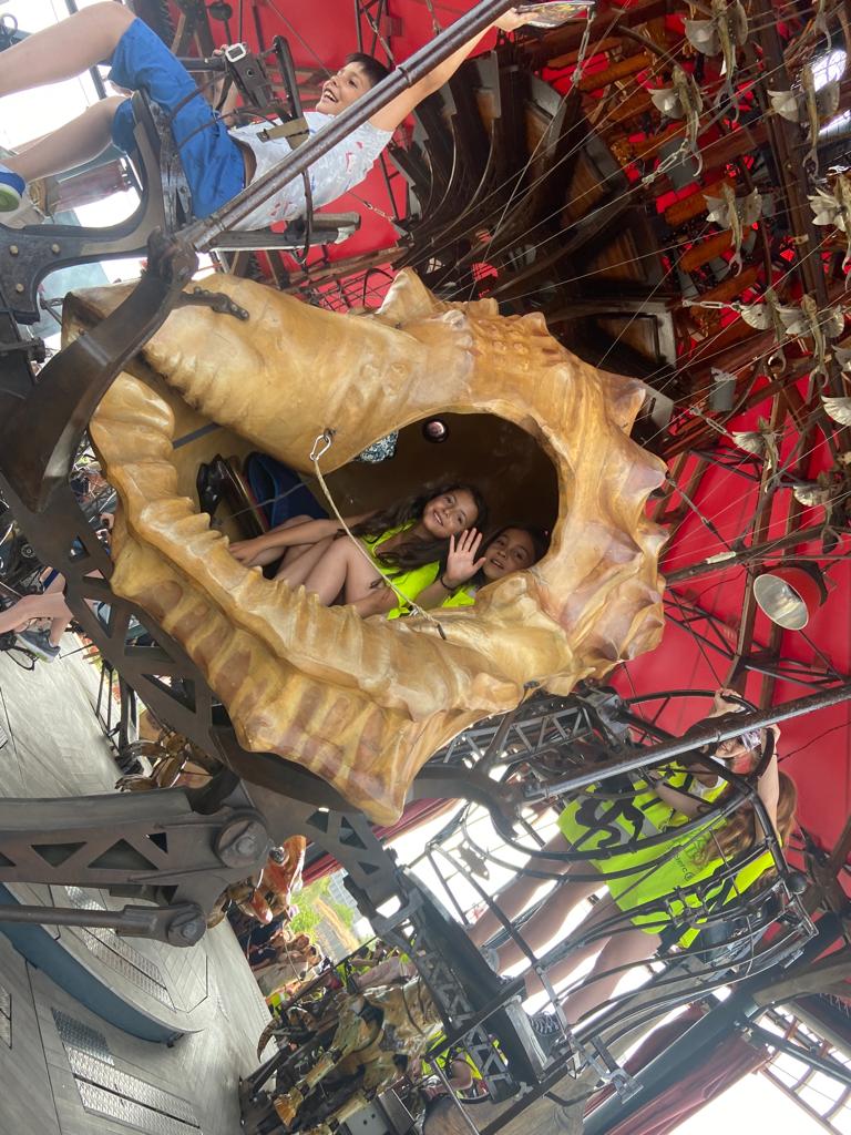Ensuite, direction la Galerie des Machines pour en découvrir tous les fantastiques animaux. Chenille, colibris, héron, araignée, caméléon, paresseux, fourmis et nuée de papillons… Manon a même eu le privilège d’être choisie pour faire avancer la chenille! Puis, un petit tour aux Ateliers de la Galerie et un coucou à notre célèbre éléphant, avant de rejoindre le Carrousel des Mondes Marins pour une visite guidée très intéressante et… un tour de manège au dernier étage avec une vue splendide!