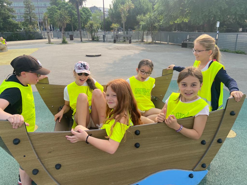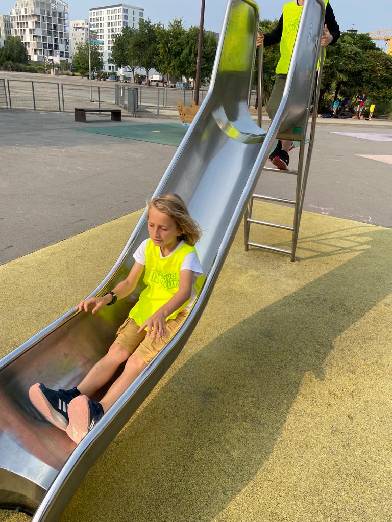 D’abord, ils ont pu faire une grande pause et beaucoup de rires sur l’aire de jeux, le long des quais.