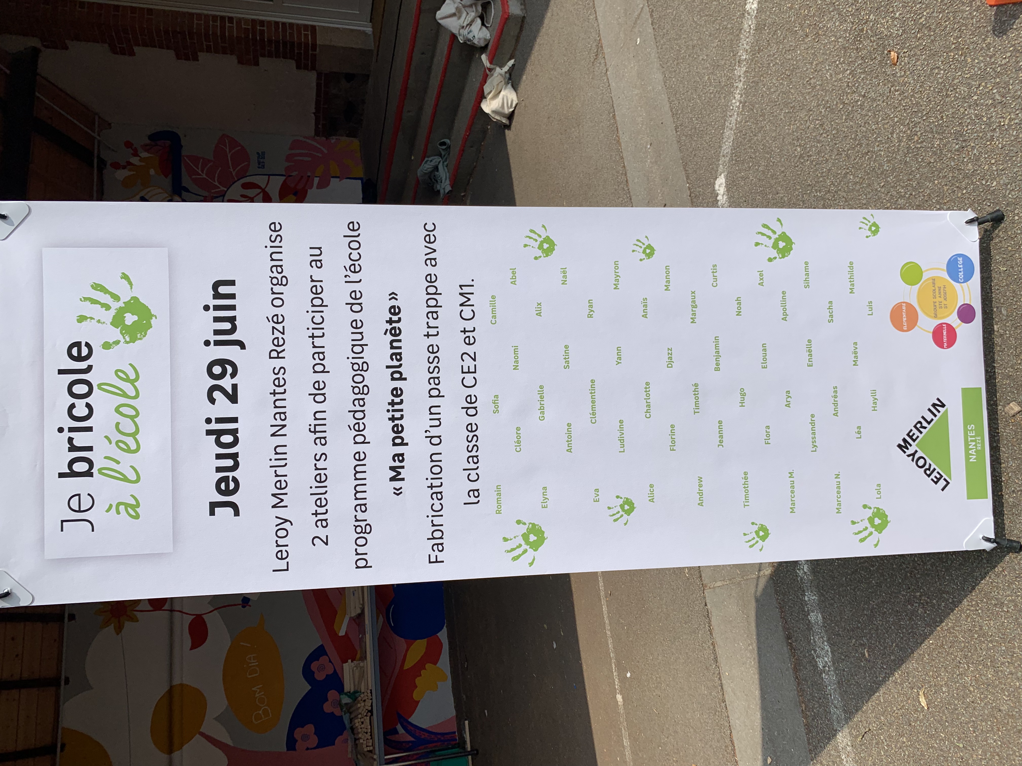 Le 29 juin, les CE2 ont eu la chance de participer à l’opération “Je bricole à l’école”, dans le cadre du programme “Ma petite planète” (Vous vous souvenez? au printemps…)