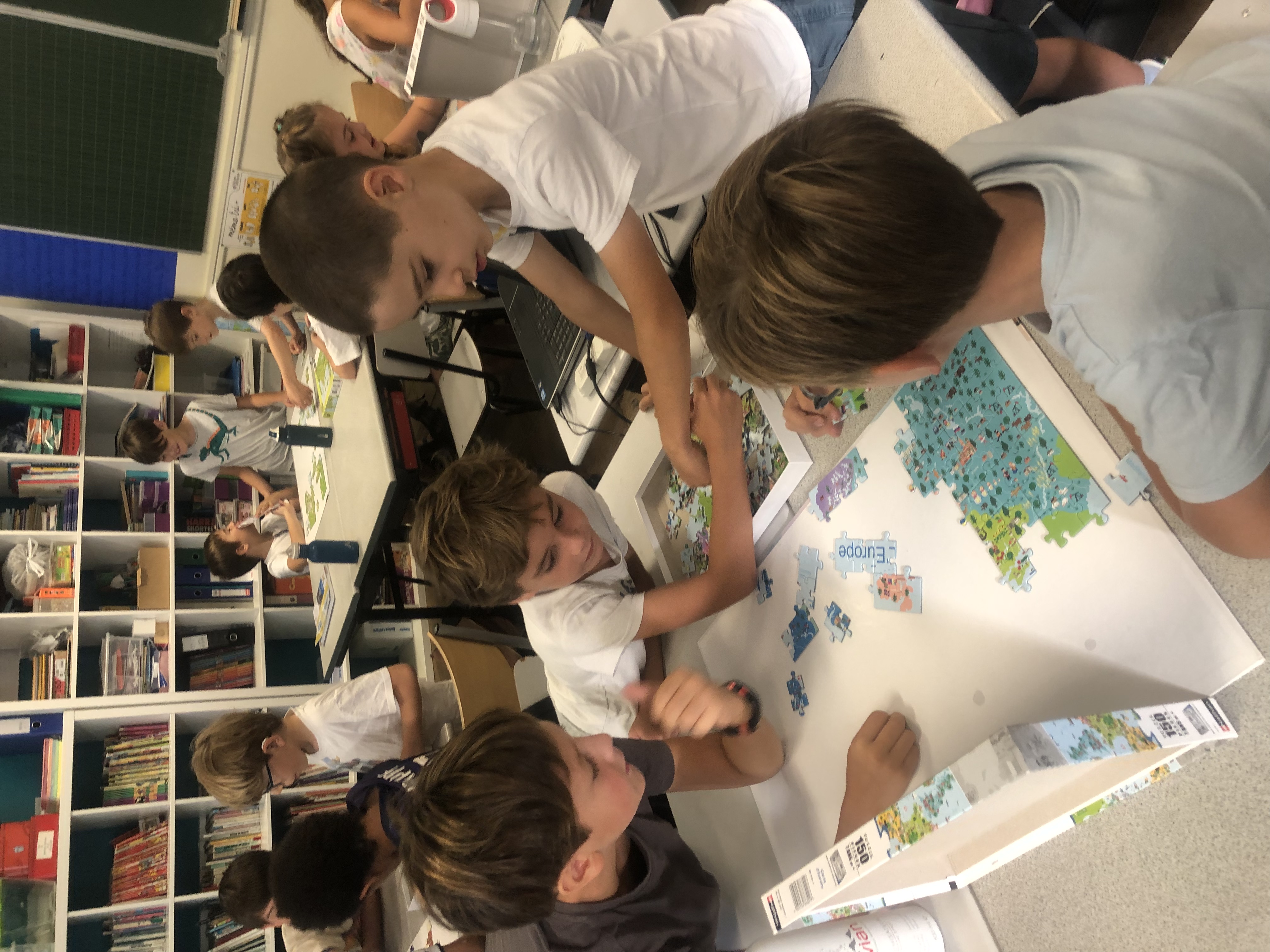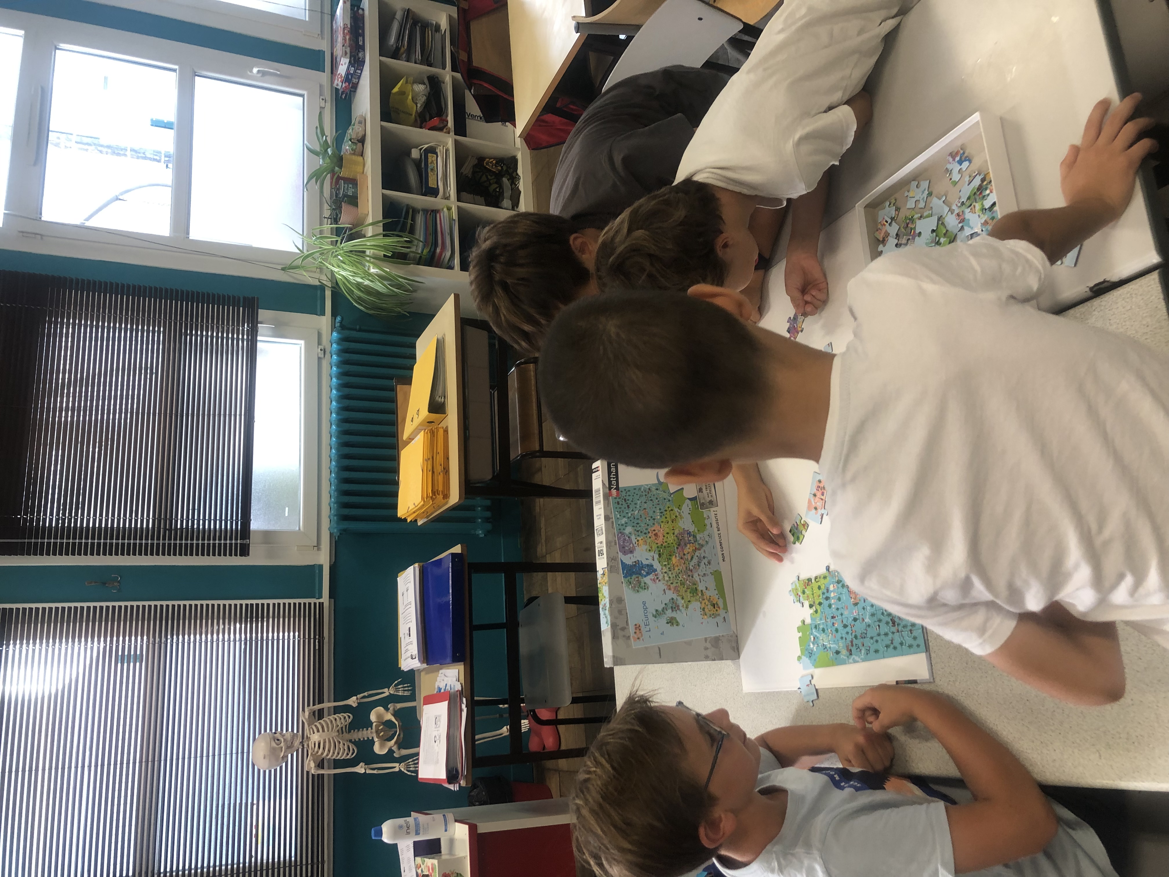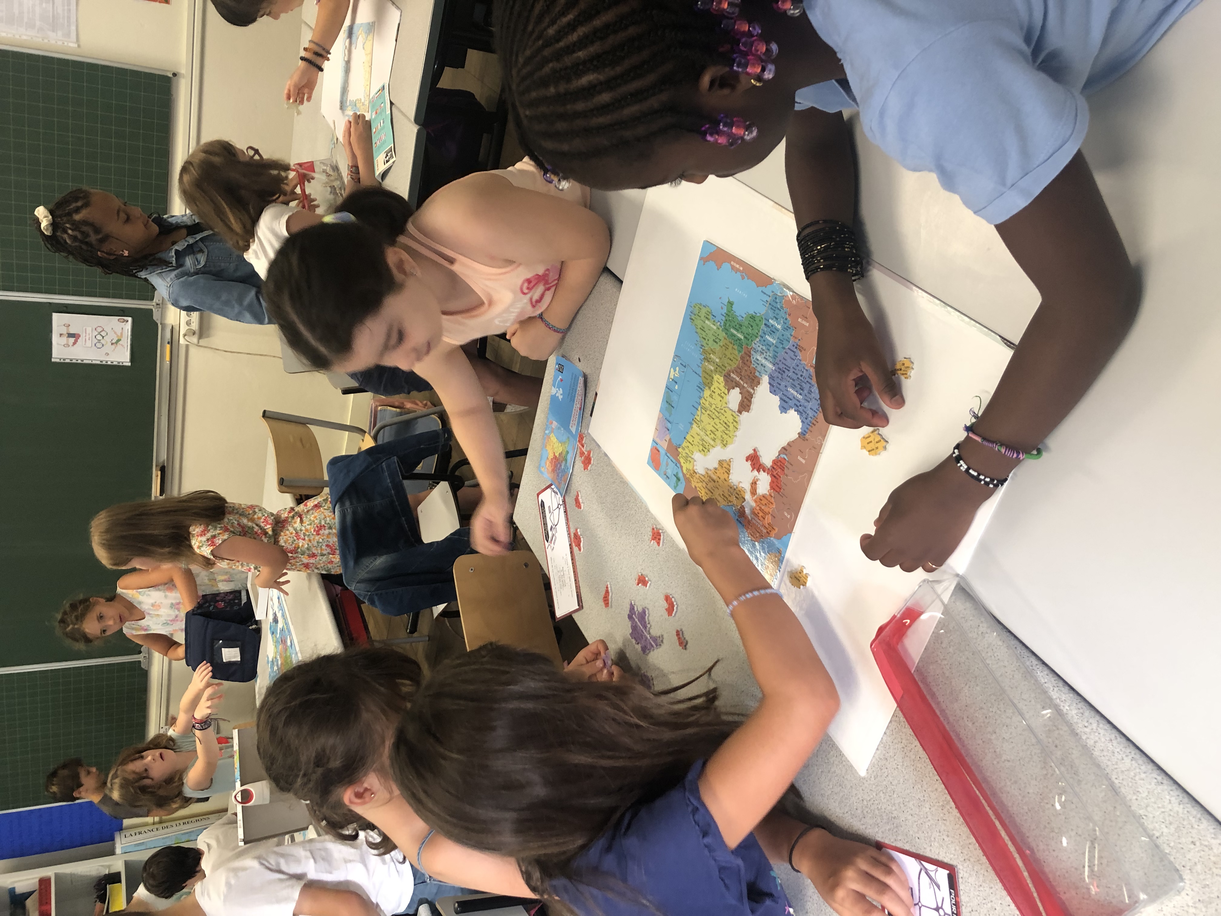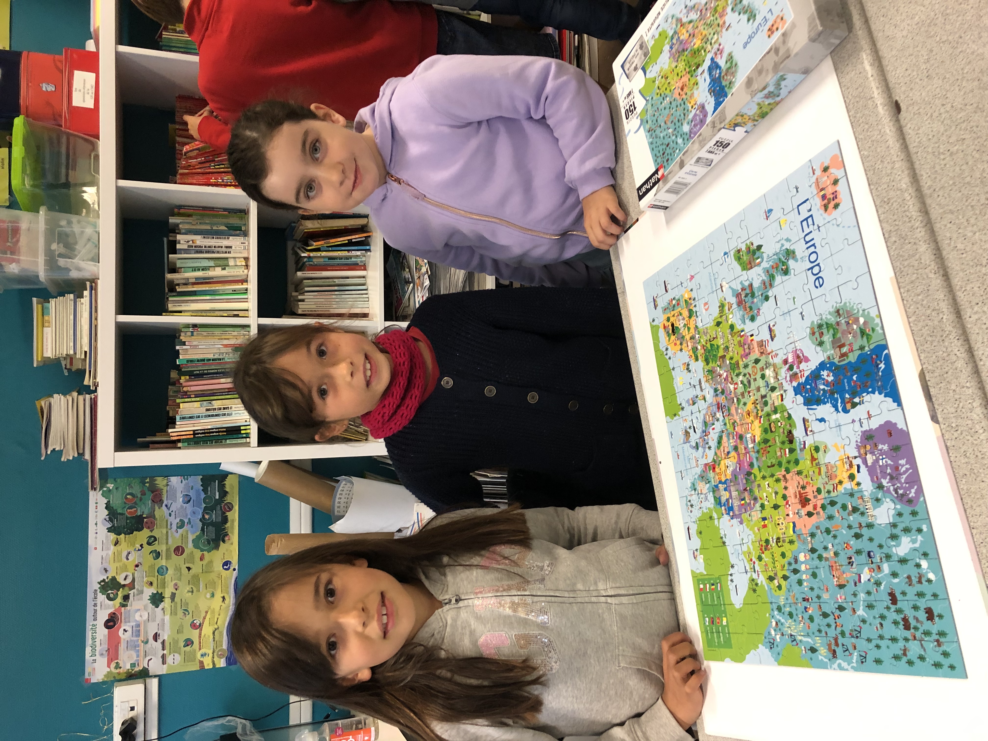 Tous les matins de la première période, les CE2 se sont lancés avec beaucoup d’enthousiasme dans la confection de puzzles géographiques (France, Europe, monde)!
