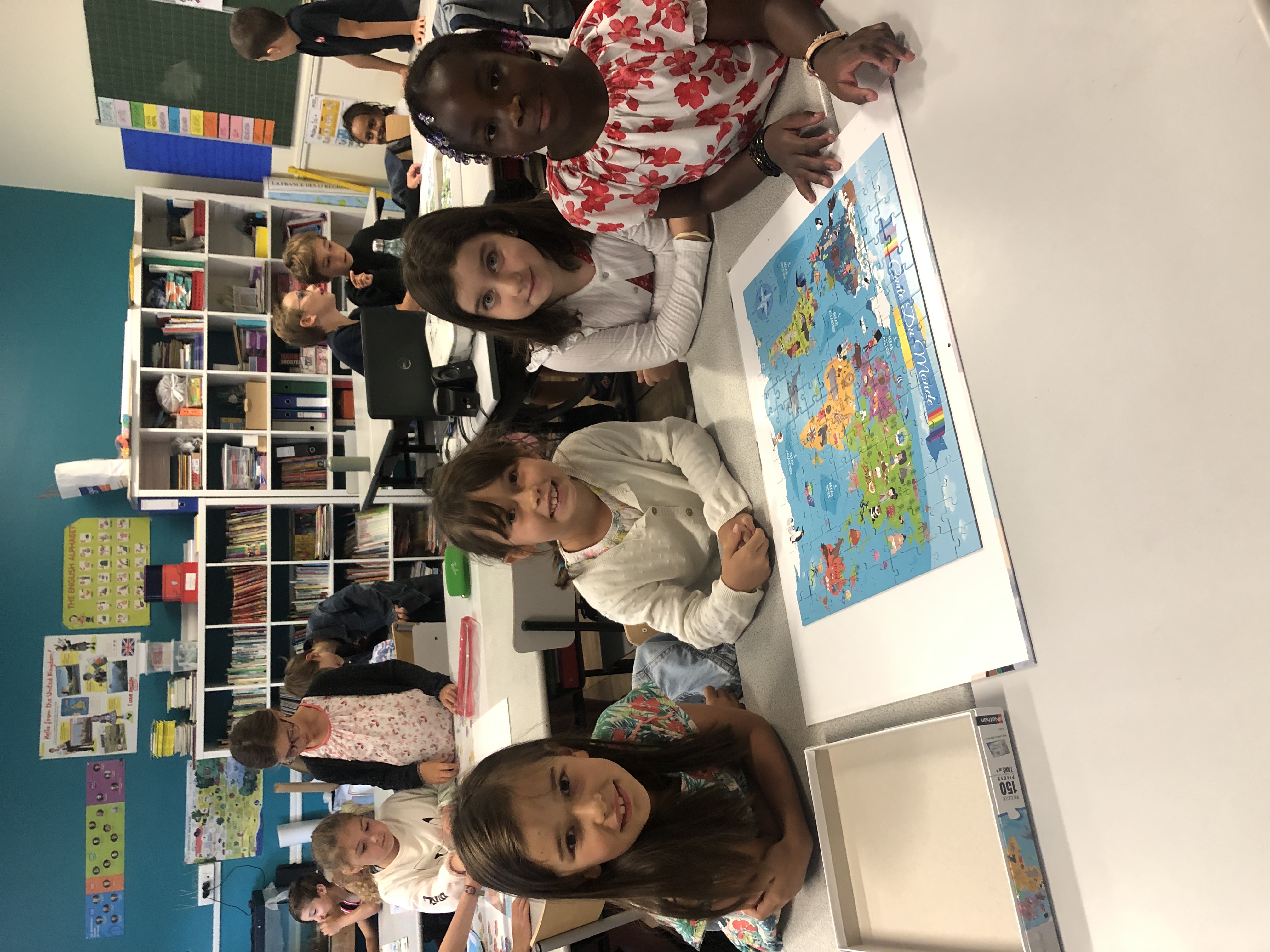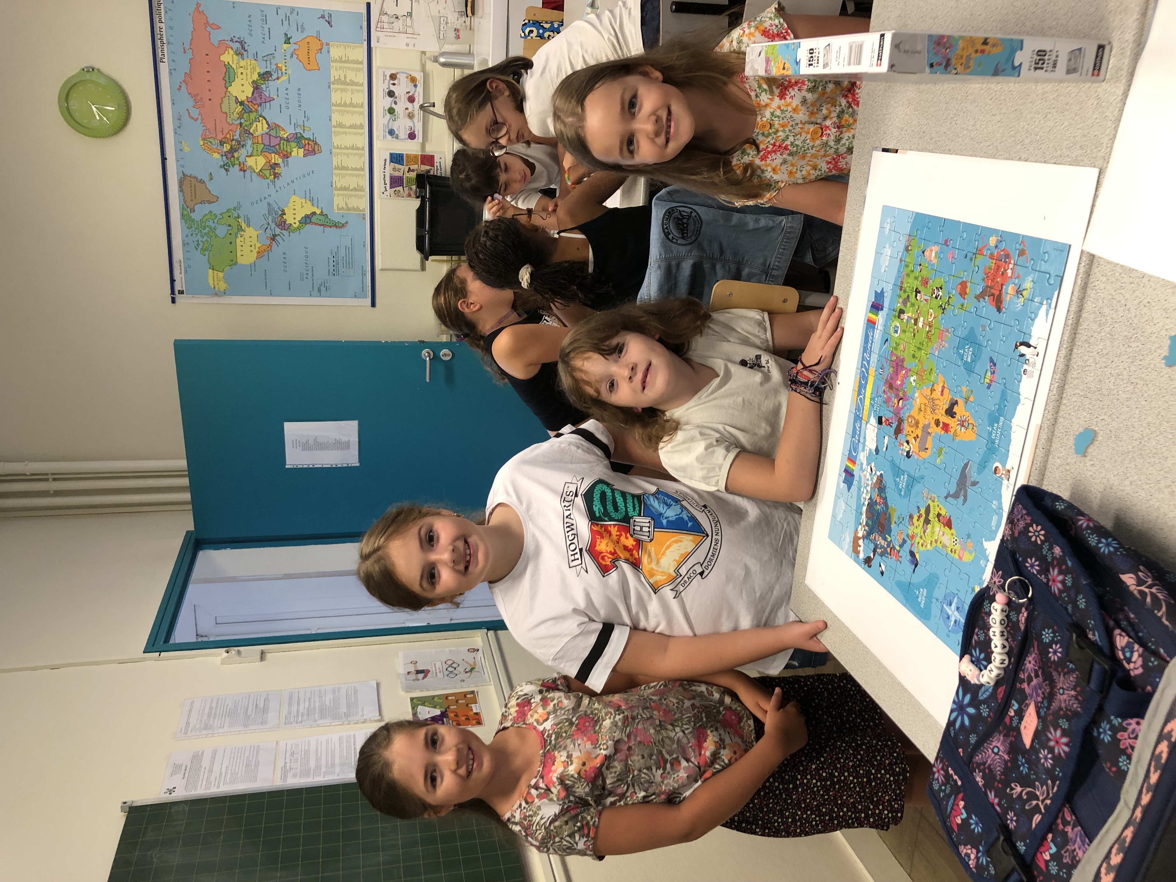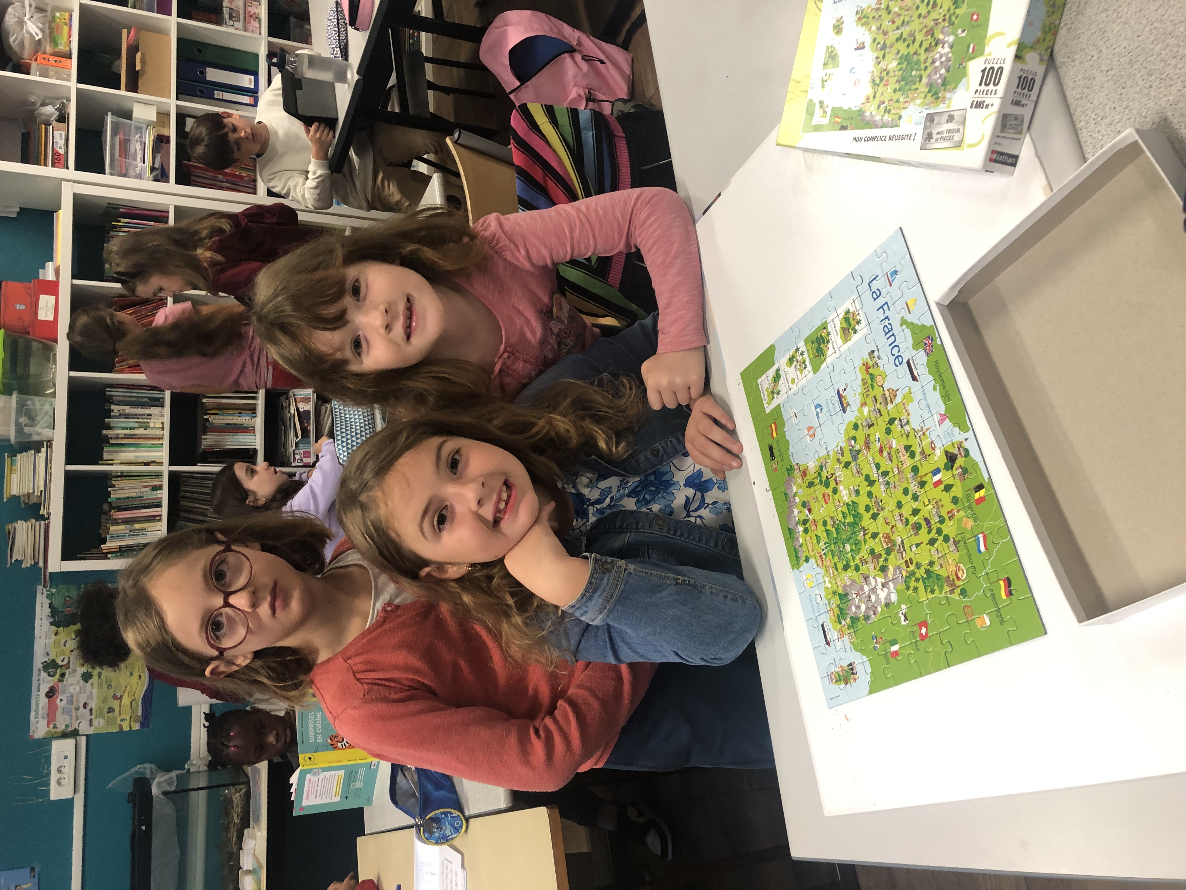 Tous les matins de la première période, les CE2 se sont lancés avec beaucoup d’enthousiasme dans la confection de puzzles géographiques (France, Europe, monde)!