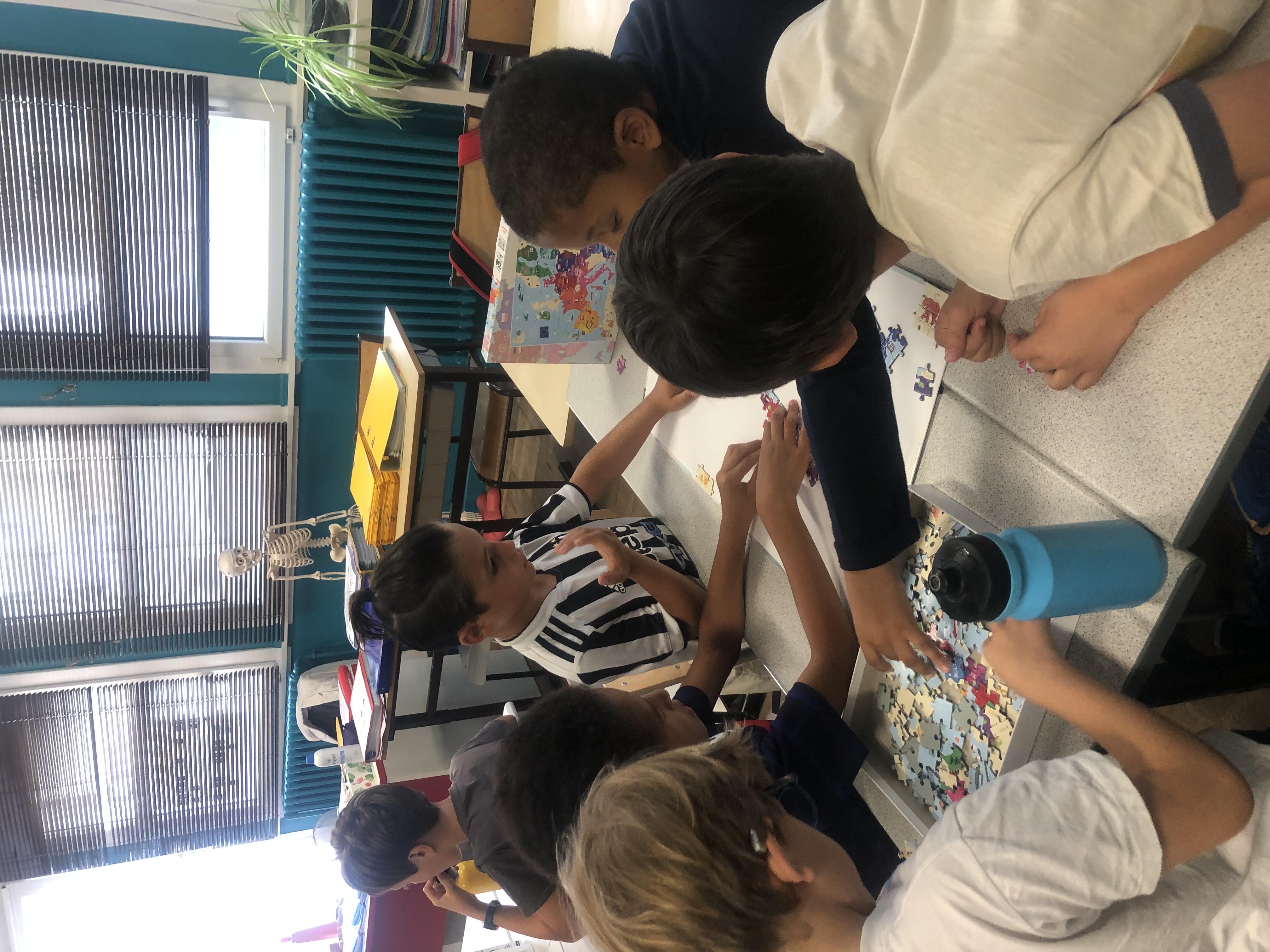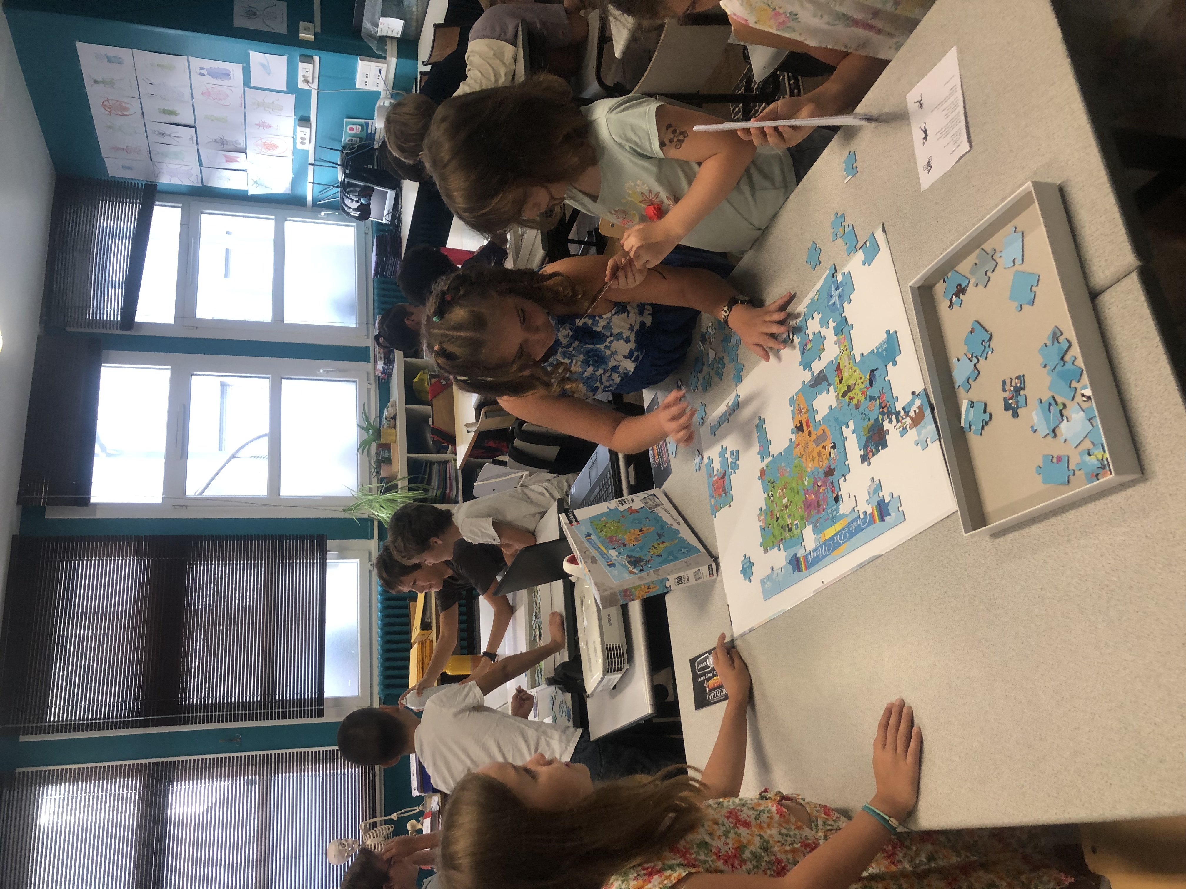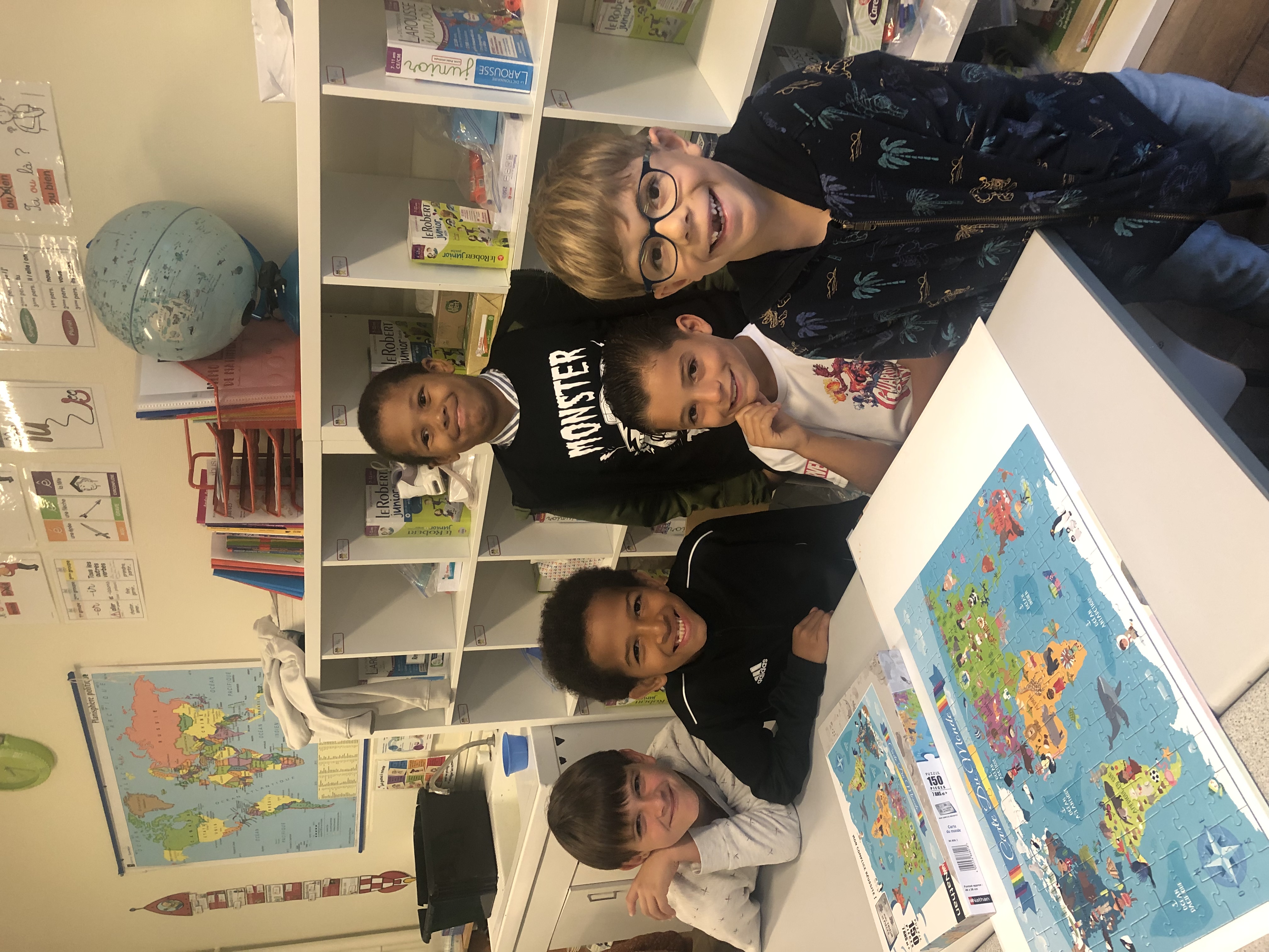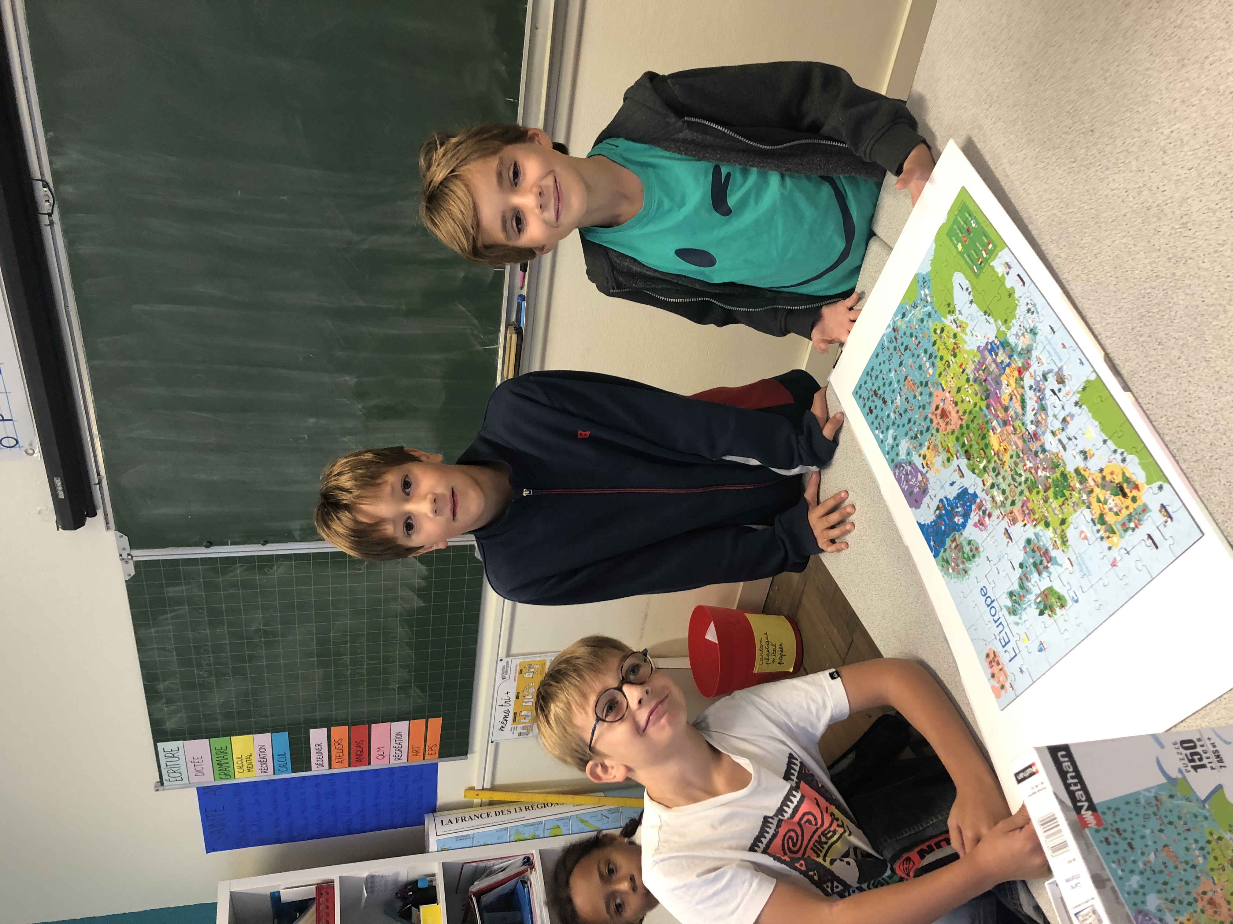 Tous les matins de la première période, les CE2 se sont lancés avec beaucoup d’enthousiasme dans la confection de puzzles géographiques (France, Europe, monde)!