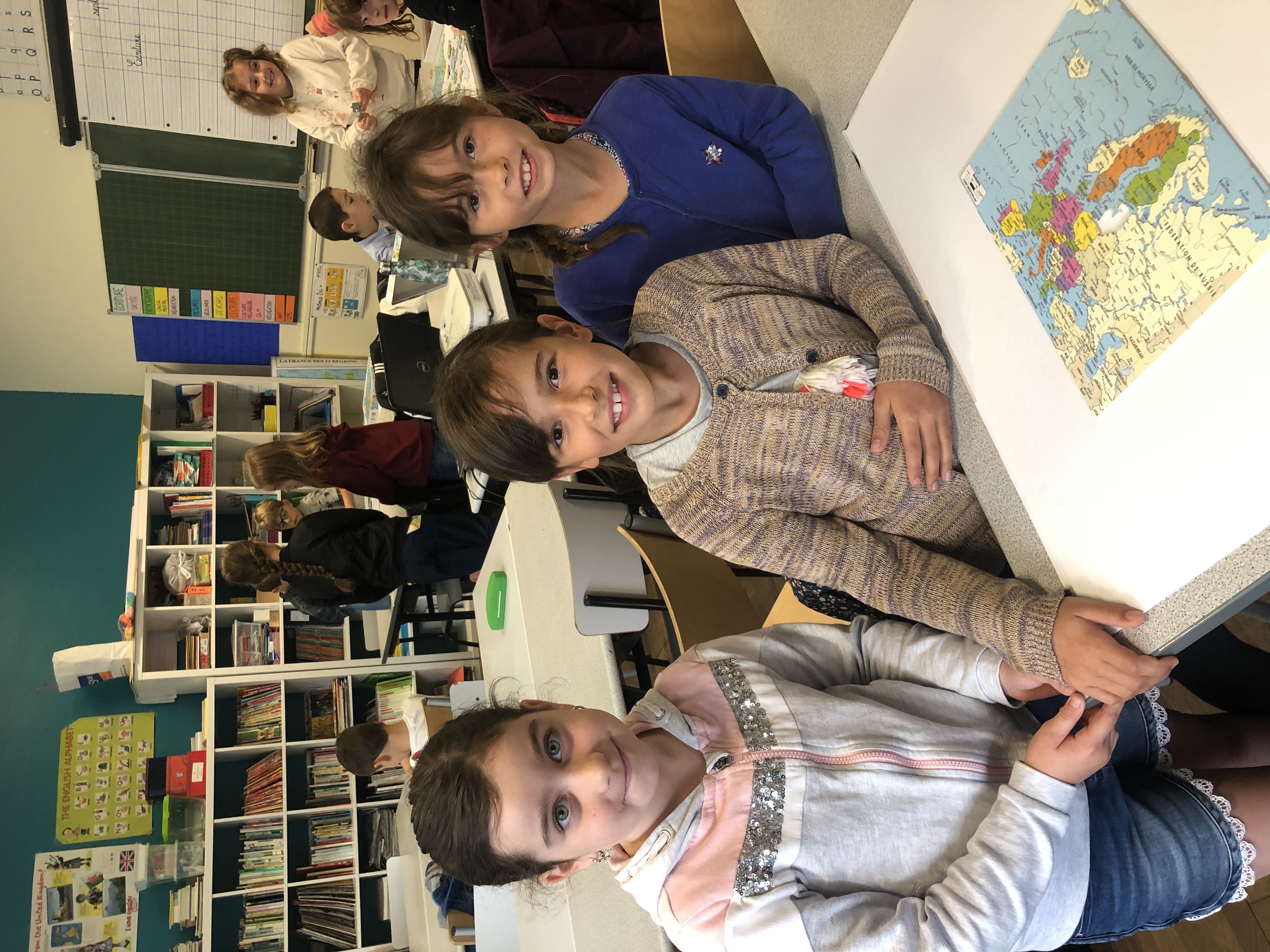 Cette activité permet de travailler en coopération, d’observer, d’apprendre des choses en s’amusant. Juste après, c’est dans nos cahiers du jour, en travaillant le graphisme des majuscules en cursives, que nous avons partagé nos connaissances sur les pays du monde (mais plus spécialement de notre continent, l’Europe). Chaque jour, la maitresse nous les a montrés sur le planisphère.