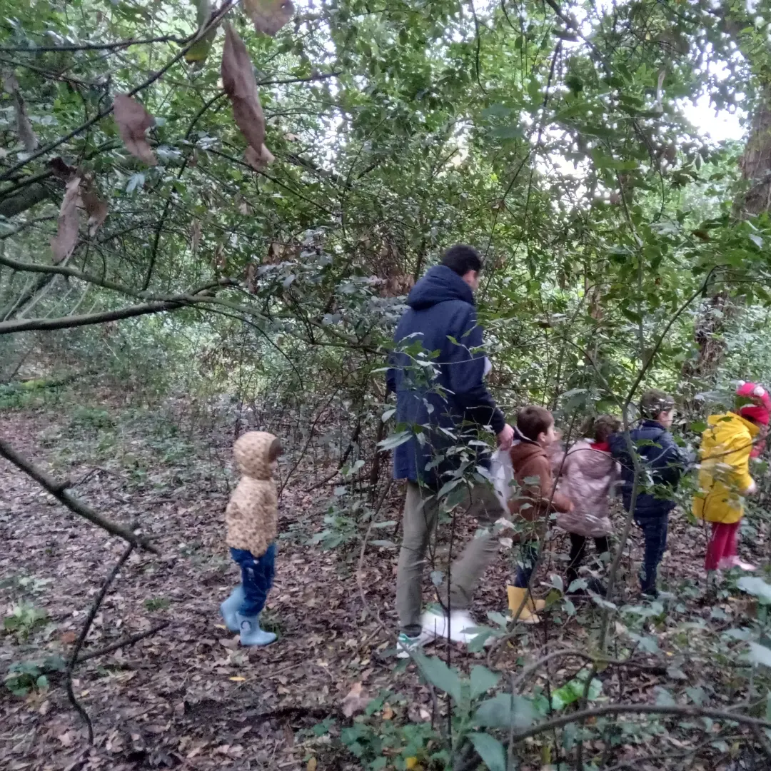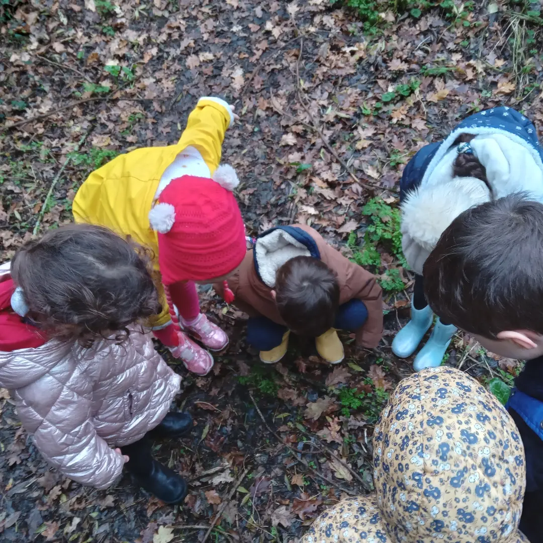 Dans le cadre du projet pédagogique de cette année sur la forêt, plusieurs classes de cycle 1 et cycle 2 sont parties en novembre-décembre à la découverte de la forêt rezéenne sur le chemin de la Jaguère : observations, récoltes, éveil des sens … les trouvailles ont été exploitées en classe à travers du land art, du tri et des apprentissages scientifiques. On y retournera au printemps pour observer l’évolution de la nature et les différences avec l’automne et l’hiver. Merci aux parents qui ont pu nous accompagner.