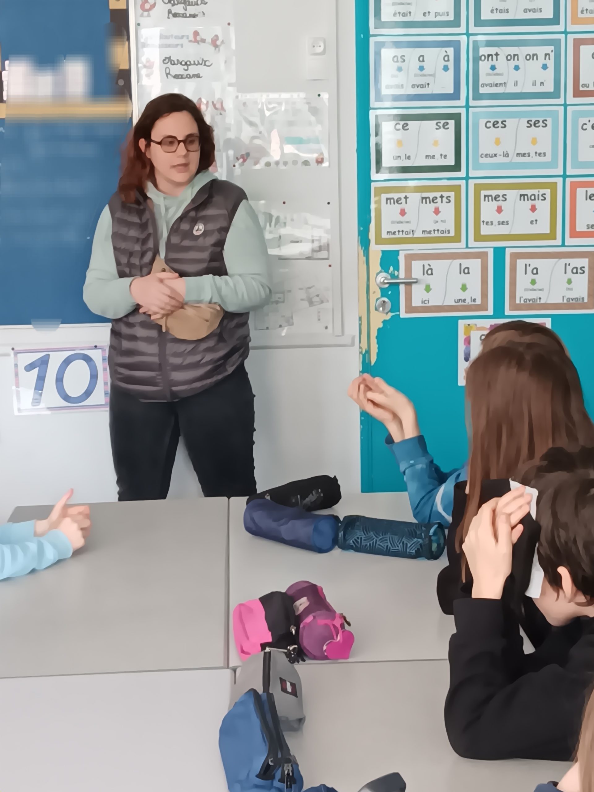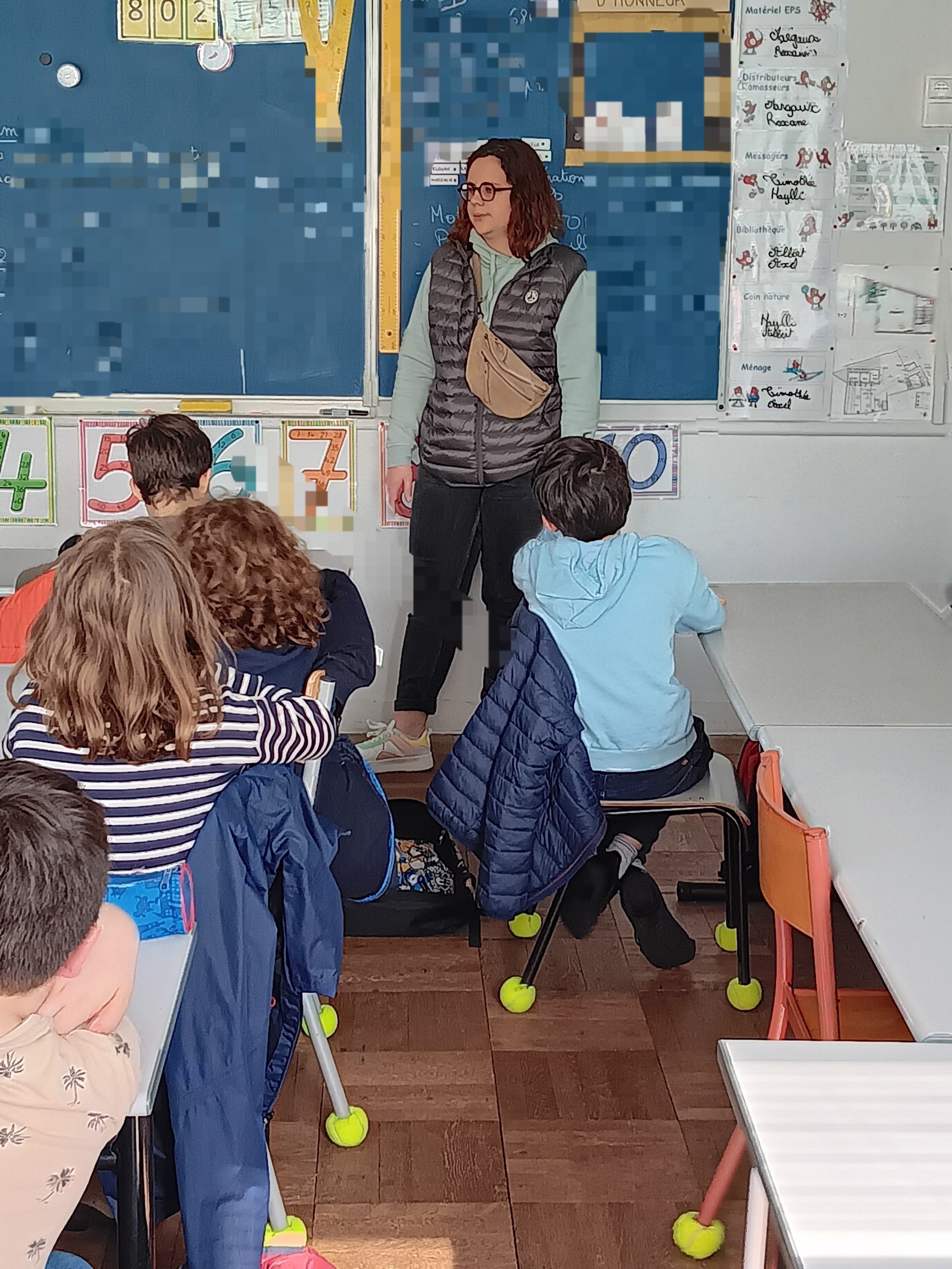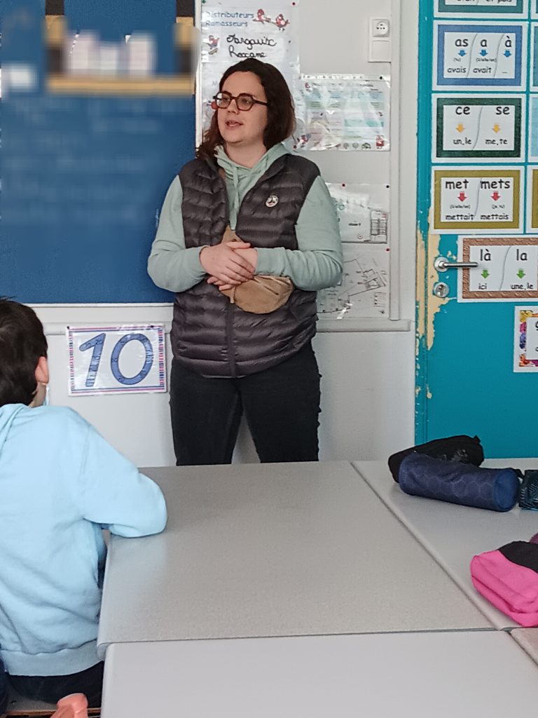 En cette année sportive, nous avons eu le plaisir de recevoir en CE2 et CM2, Adèle, qui a été sélectionnée pour apporter son aide lors des phases finales de basket cet été à Paris. Elle sera chargée de placer et de guider les spectateurs. Elle effectuera cette mission pour le basket (qui est son sport de prédilection, puisqu’elle est coach pour des équipes de jeunes dans le département ) mais aussi pour les épreuves de gymnastique et de trampoline.