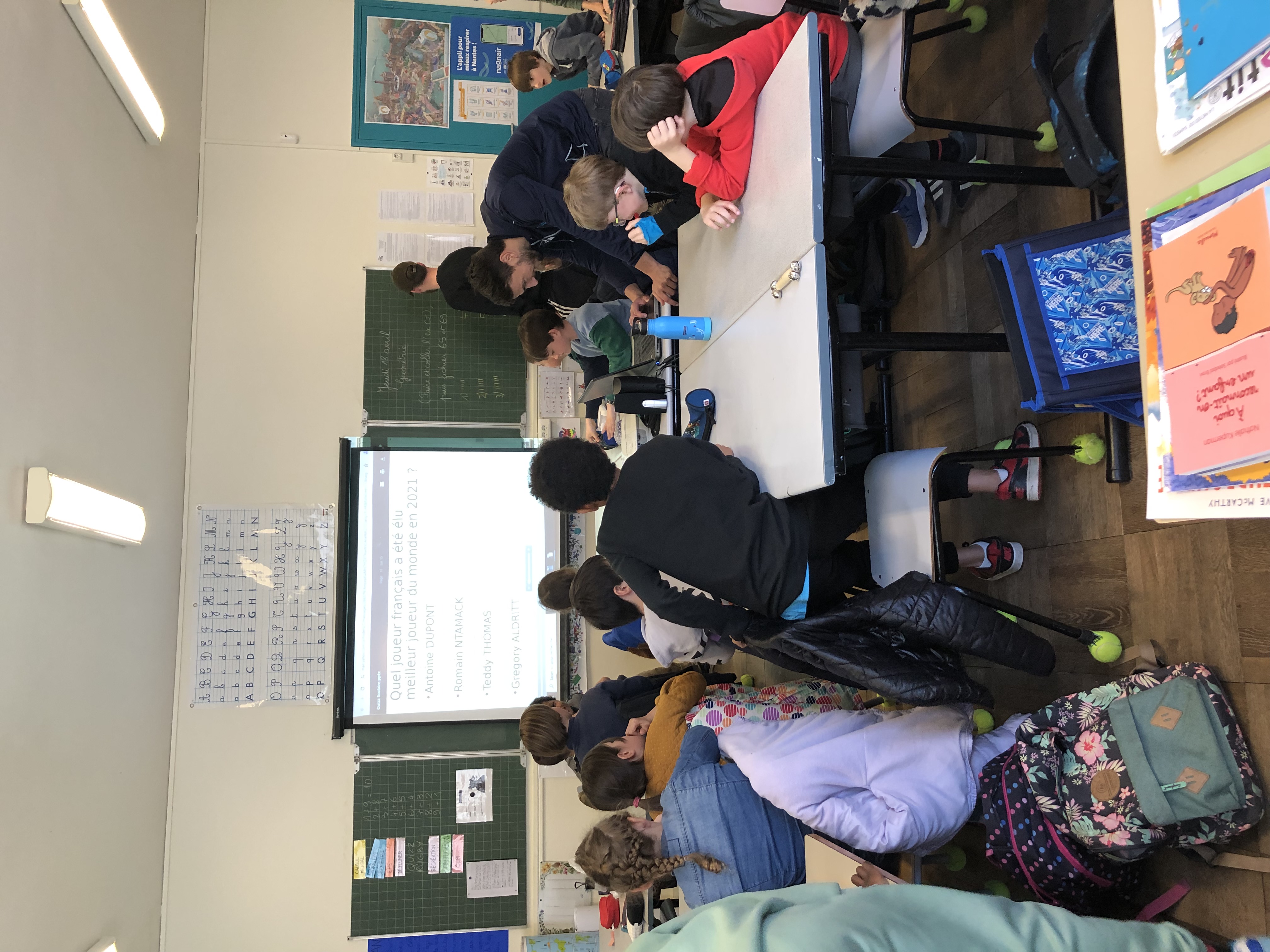 Jeudi 18 avril, deux joueurs de l’ASBR rugby sont venus dans la classe pour nous parler de leur sport, nous en apprendre les règles et plein d’anecdotes et informations. C’était très intéressant et très sympa! (Quelques vidéos pour voir l’ambiance…)
