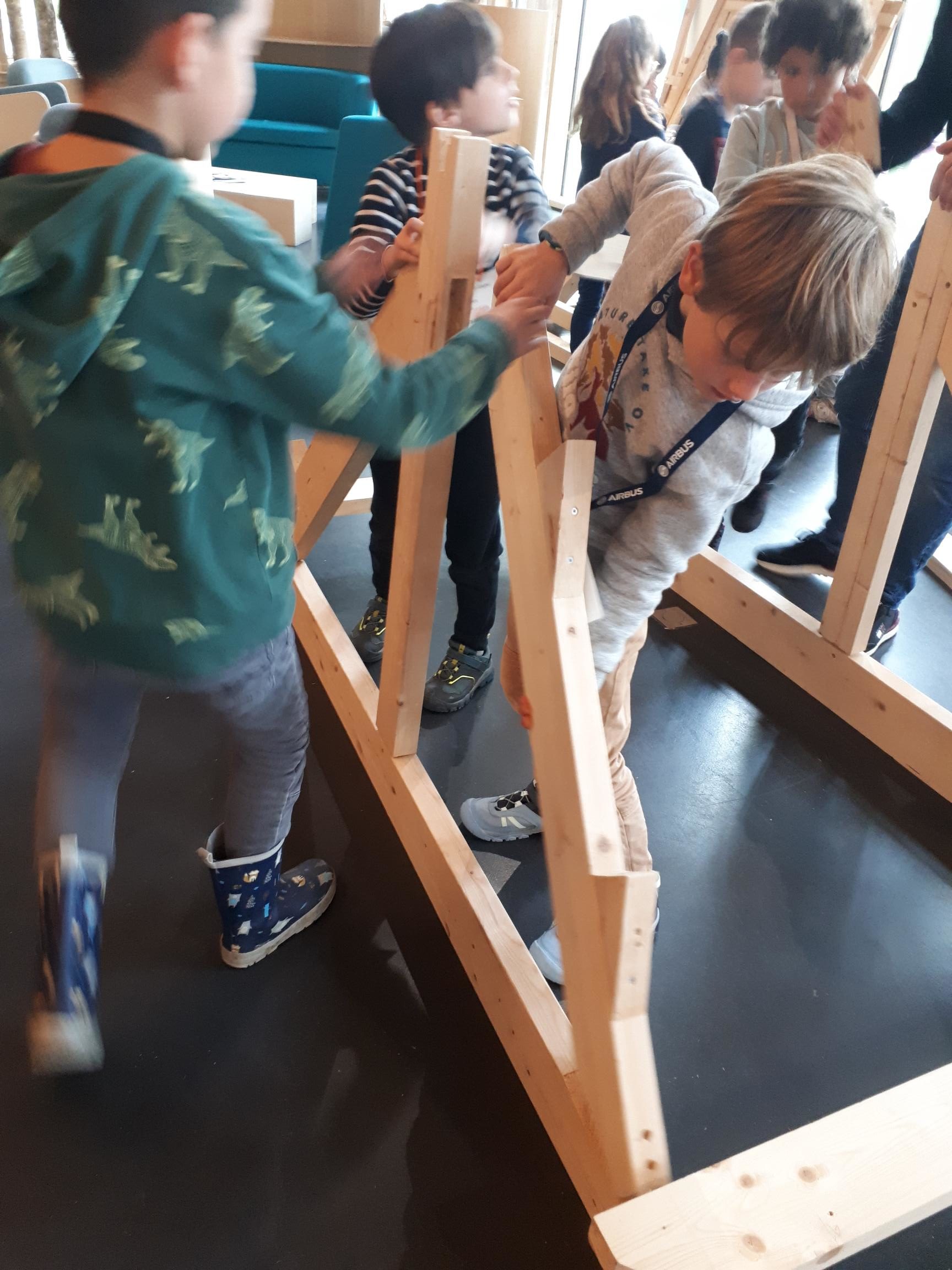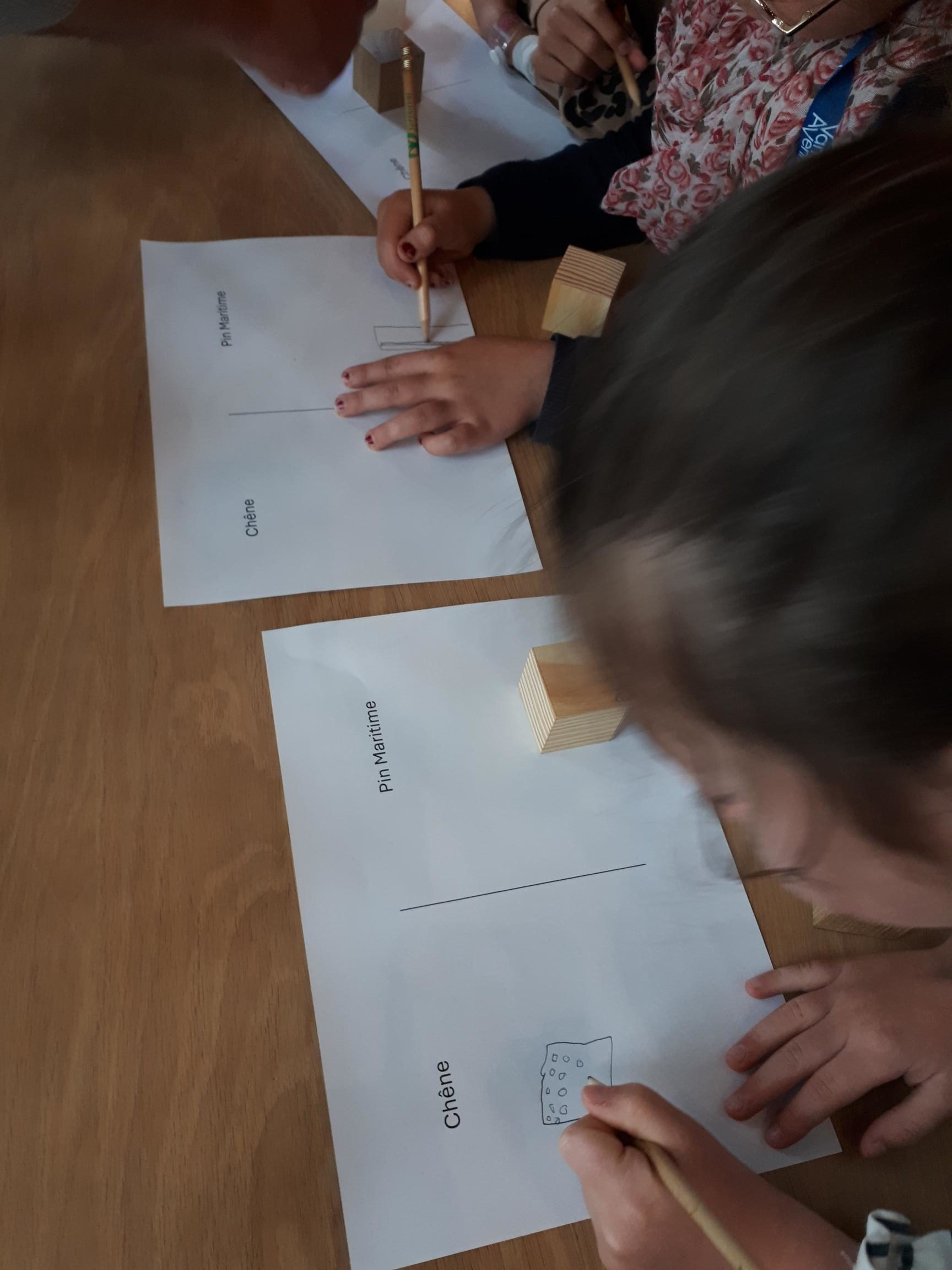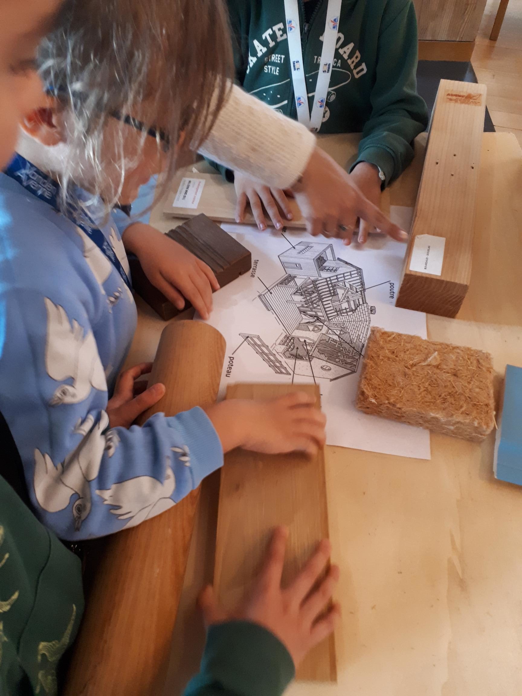 Chaque atelier était l’occasion d’une découverte : observer le bois à la loupe, connaitre l’âge d’un arbre, différencier les essences, repérer les différents types de bois dans une maison, construire une charpente de maison ………..