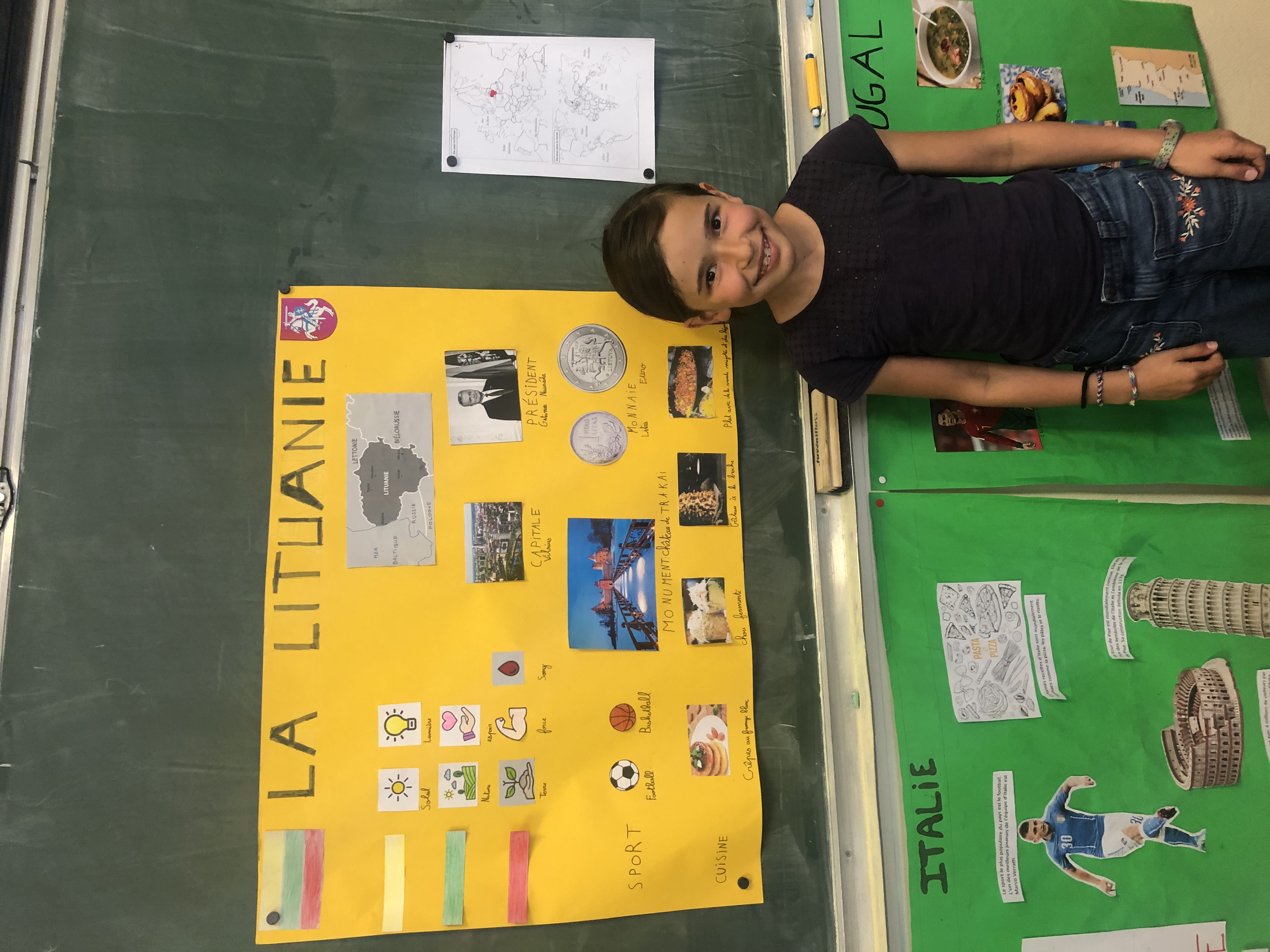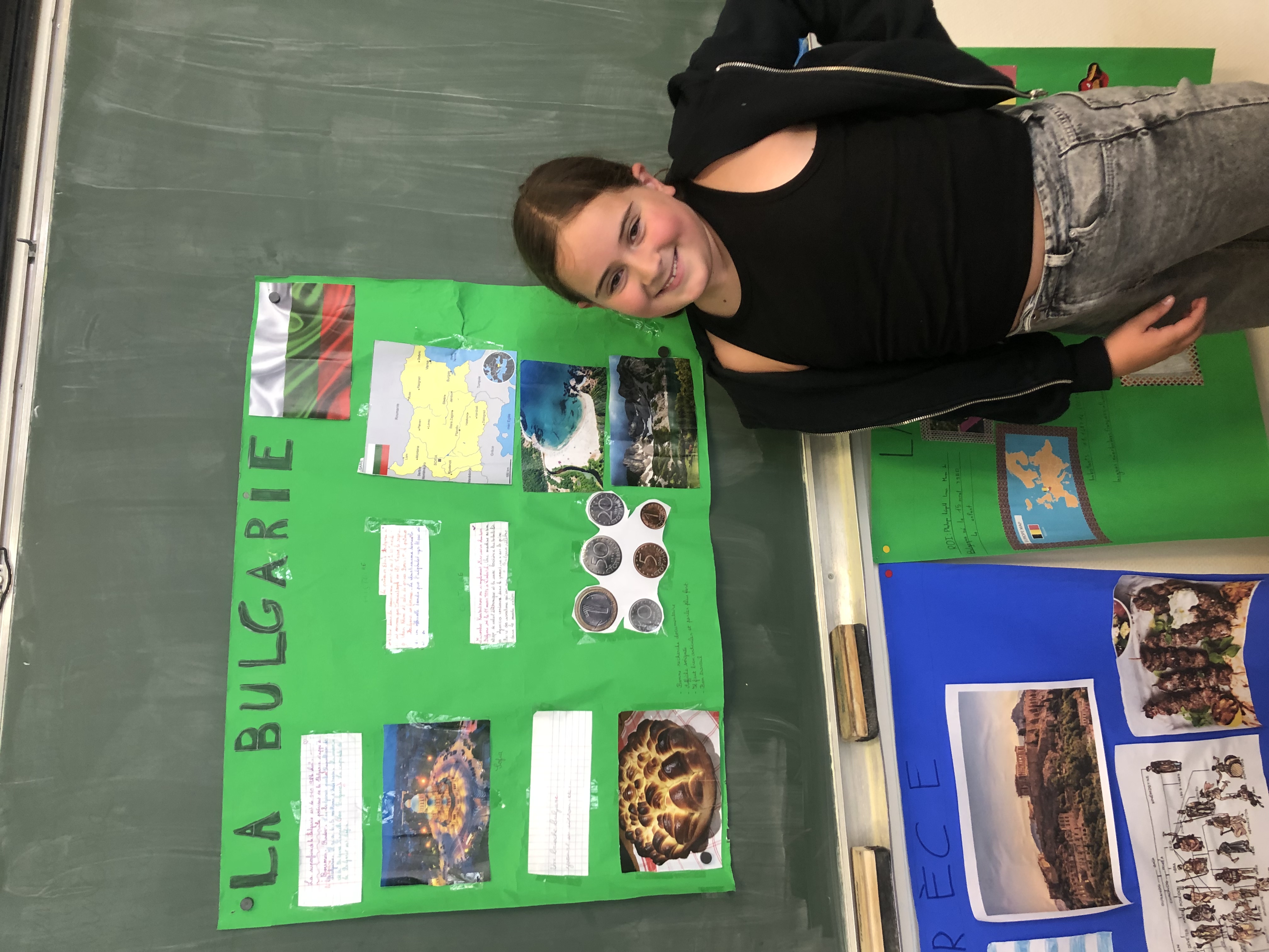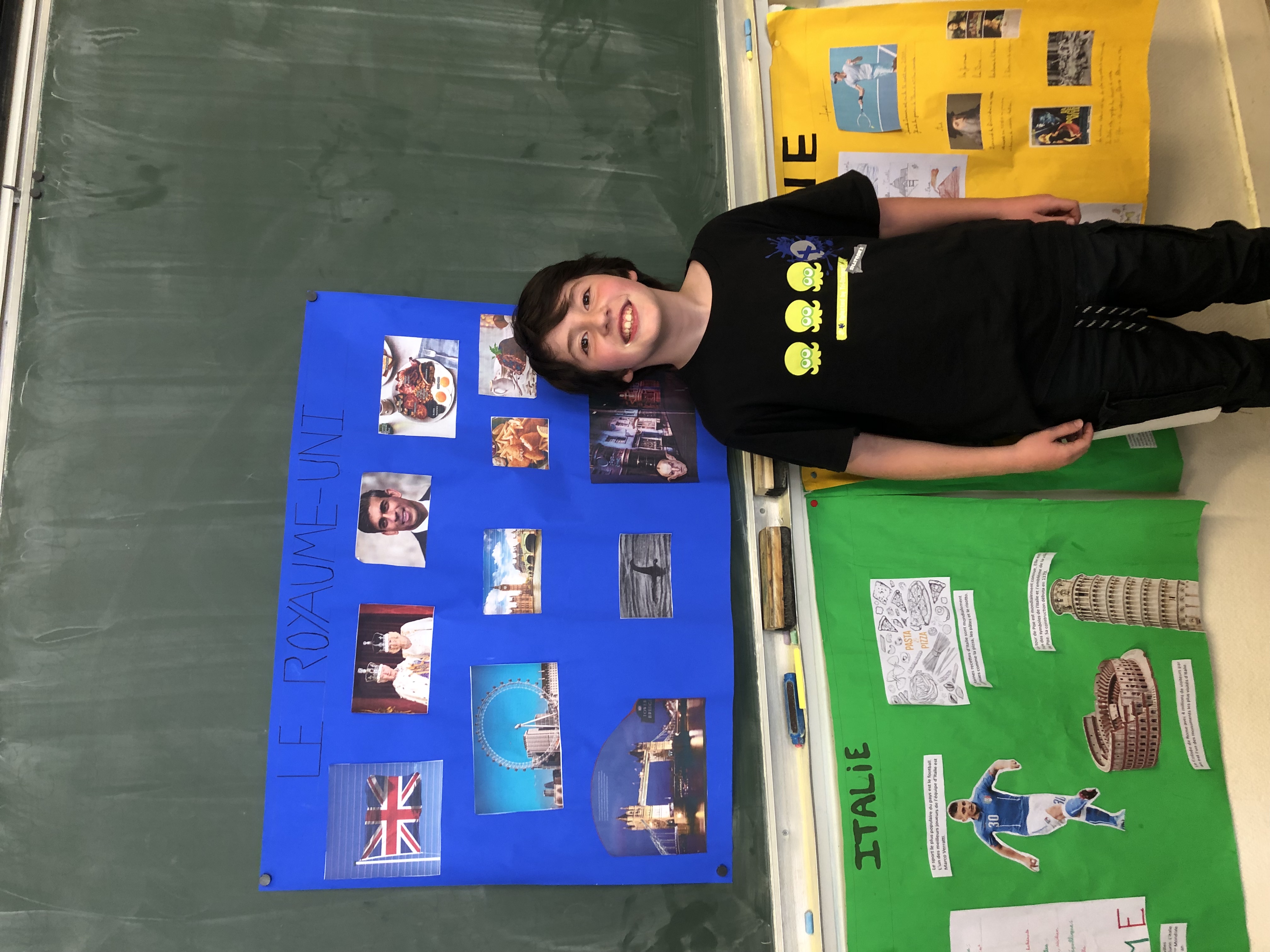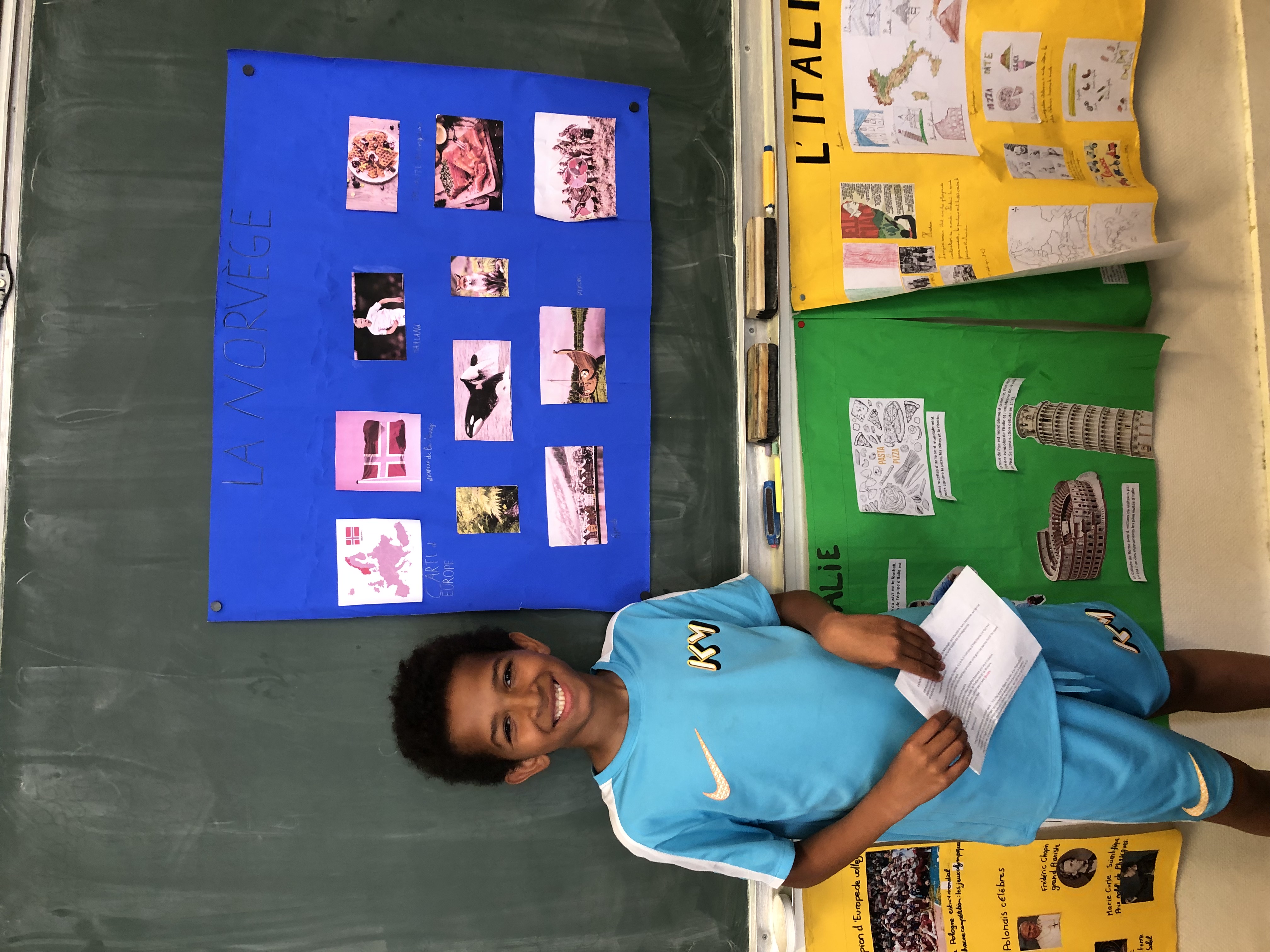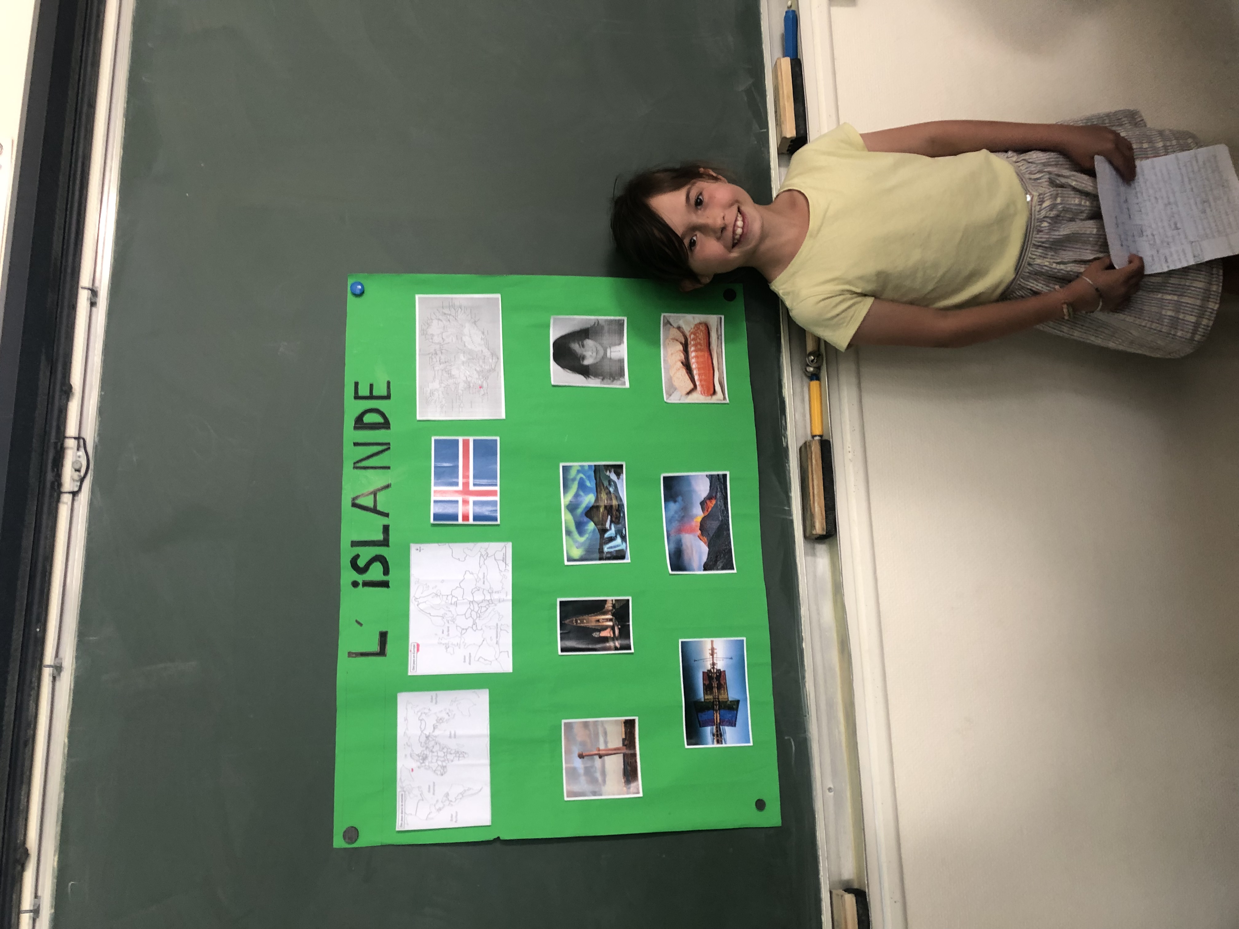 Ils ont fait des recherches (Bravo à tous les parents qui ont pleinement participé à ce projet!) sur le pays choisi: situation géographique, pays limitrophes, population, superficie, capitale, langue officielle, monnaie, gouvernement, hymne, drapeau, gastronomie, culture et histoire, quelques mots du quotidien… Ils ont imprimé, écrit et dessiné, se sont entrainés à présenter et ont concocté un quizz pour évaluer l’écoute de leurs camarades.