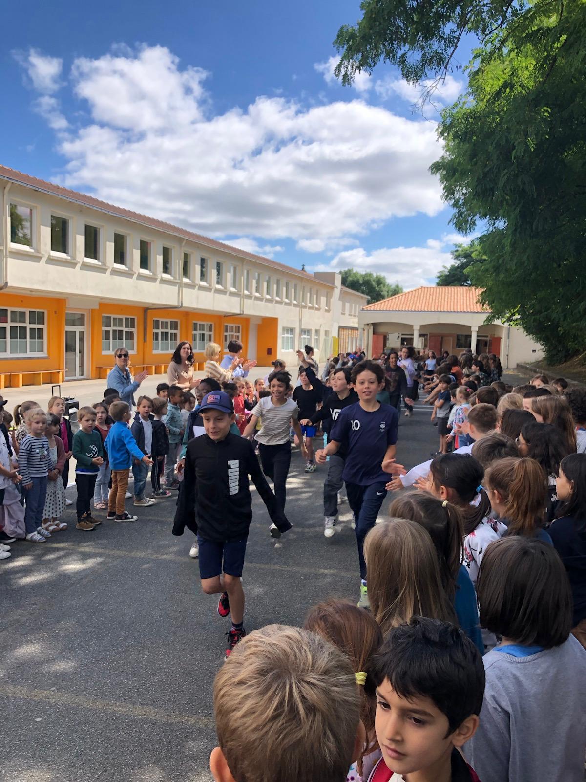 C’est la fin de l’année scolaire et les vacances approchent !!! Pour se dire au revoir, pour clore les projets sur les arbres et sur les Jeux Olympiques, pour saluer les CM2 qui partent au collège, pour dire au revoir à Brigitte … tous les enfants et adultes de l’école se sont réunis jeudi 4 juillet dans la cour du collège pour une dernière assemblée d’enfants, bonnes vacances à tous !!!