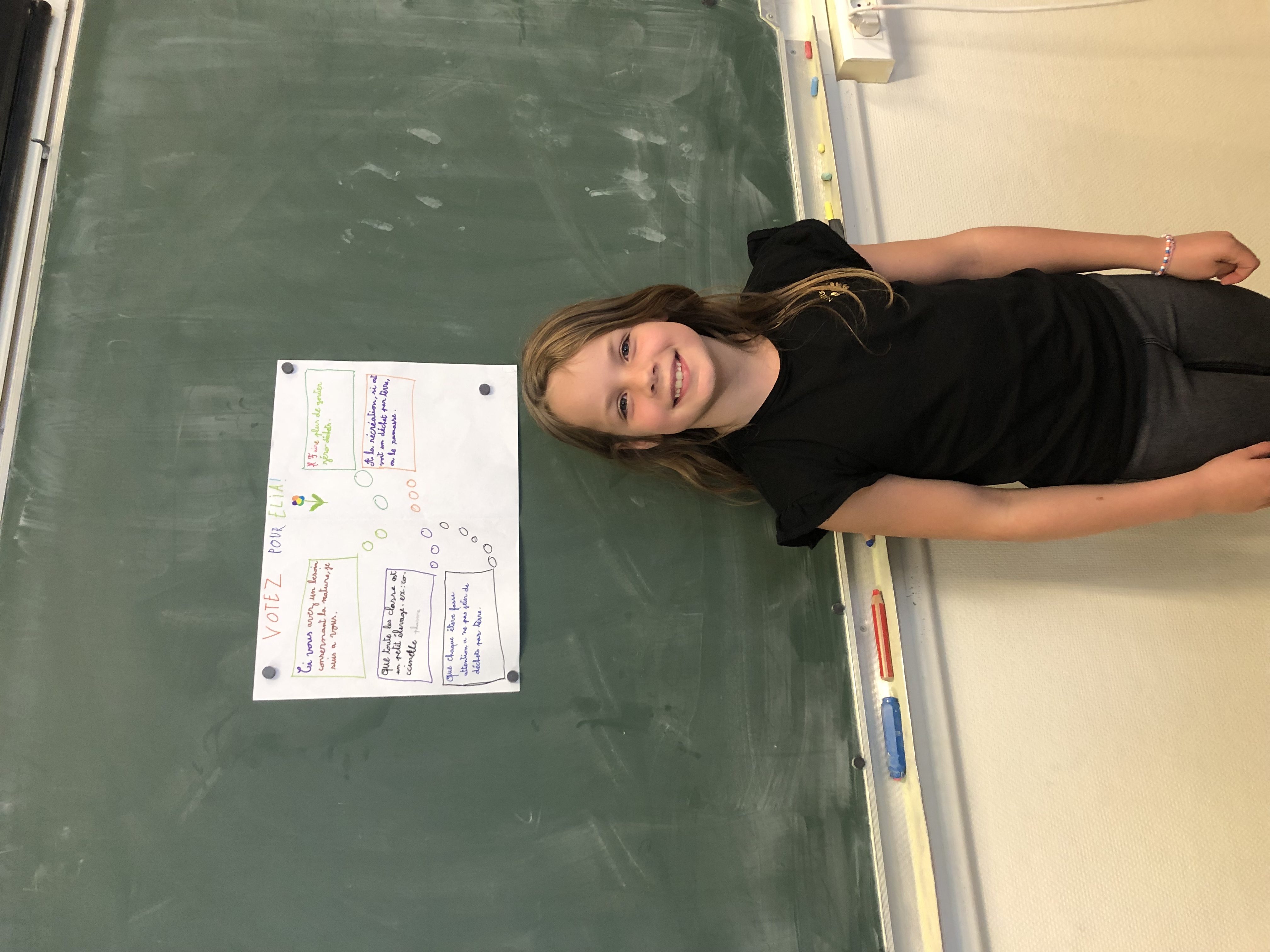 Après avoir échangé sur le rôle des délégués et éco-délégués de classe et sur l’organisation du vote en EMC (Éducation Morale et Civique), les élèves se sont lancés dans des campagnes dynamiques et enthousiastes pour tenter de convaincre leurs camarades de voter pour eux!