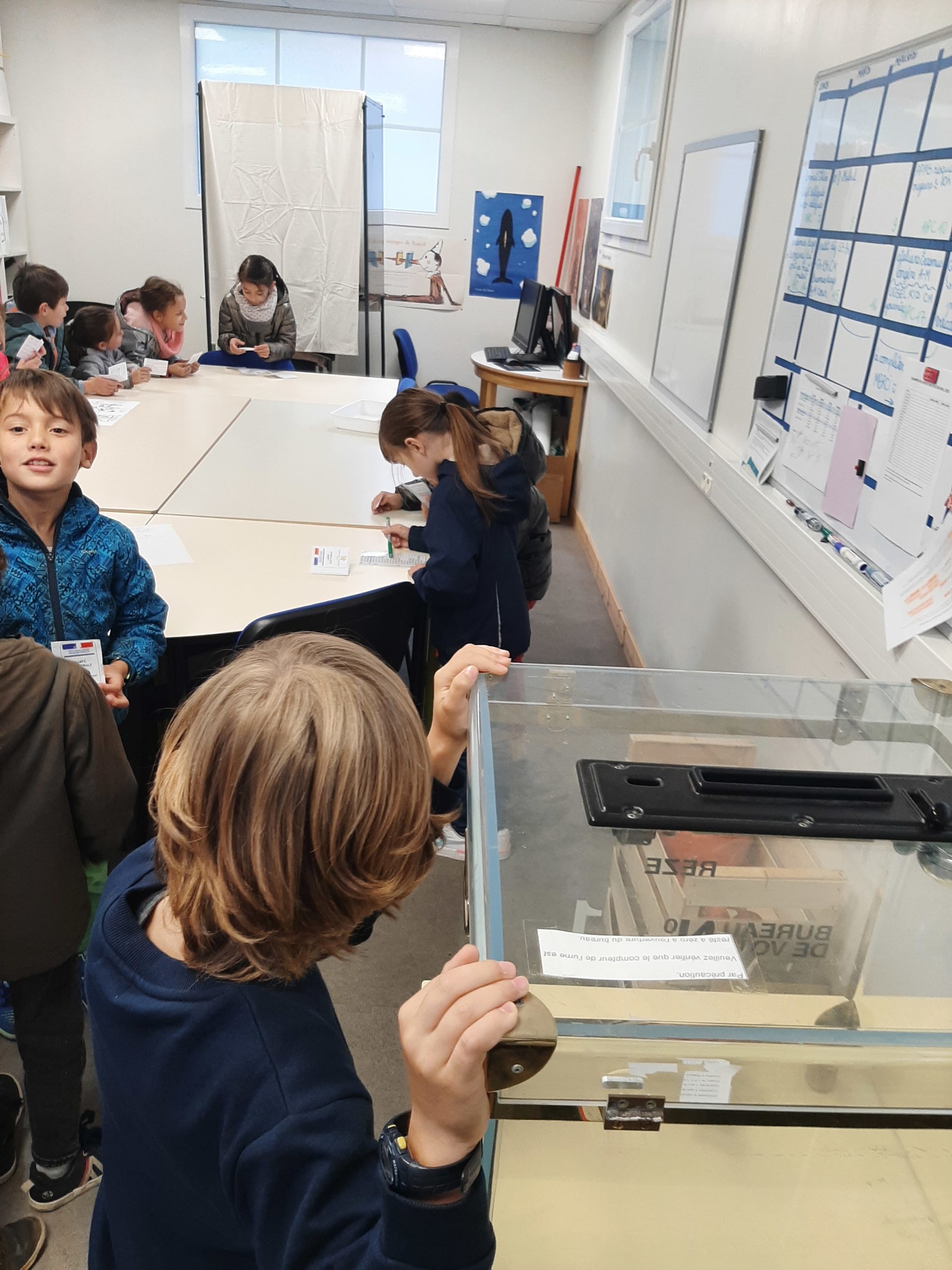 Le 07 octobre, les élèves du CP jusqu’au CM2 votaient pour élire leurs délégués et éco-délégués. Après avoir présenté leur candidature et exprimer leurs idées au cours de la campagne électorale en classe, les voilà dans l’isoloir prêté par les services de la mairie (Merci à eux) munis de leur carte d’électeur. Une fois le choix effectué, le bulletin dans l’urne, c’est le verdict du dépouillement.