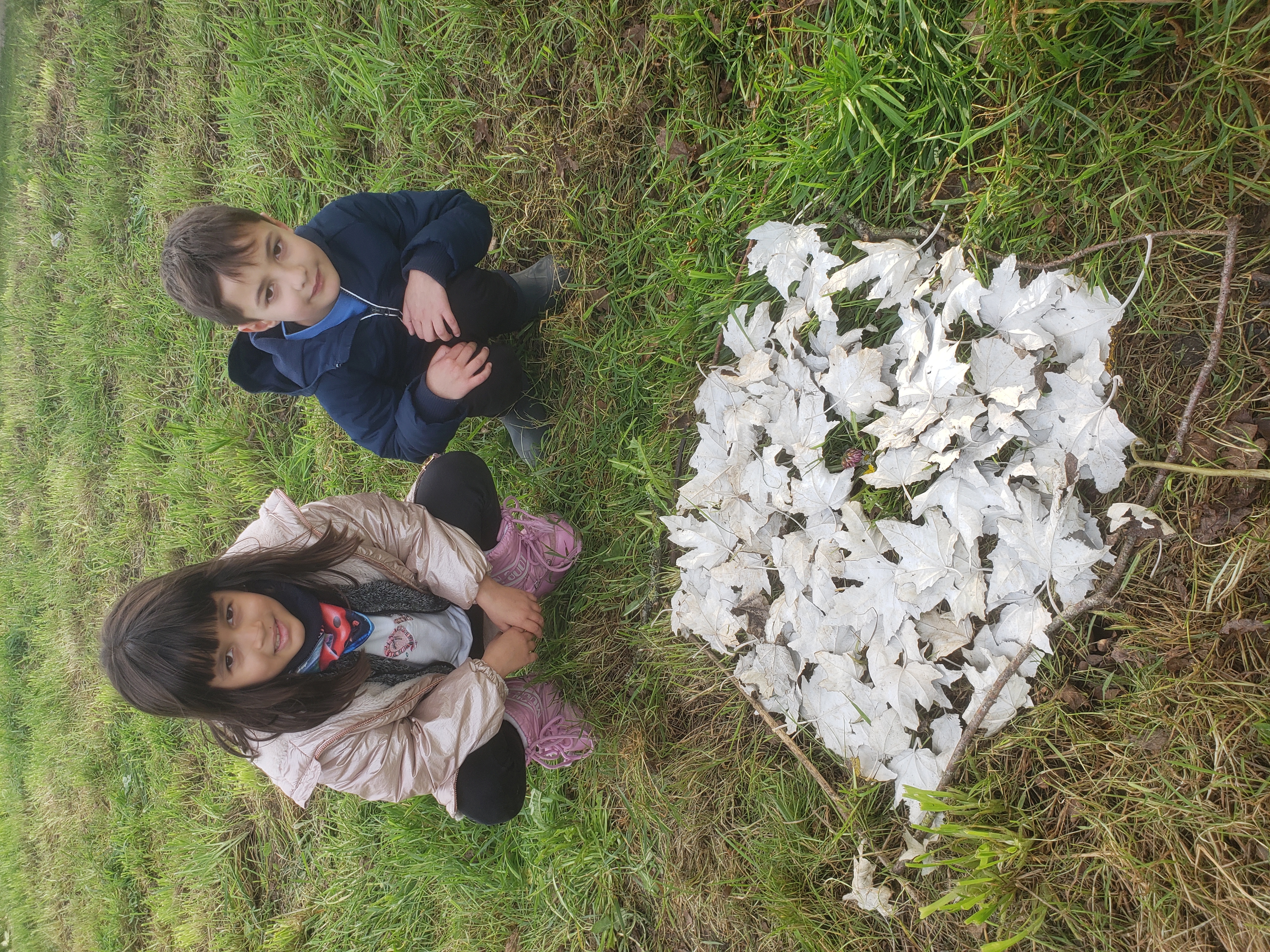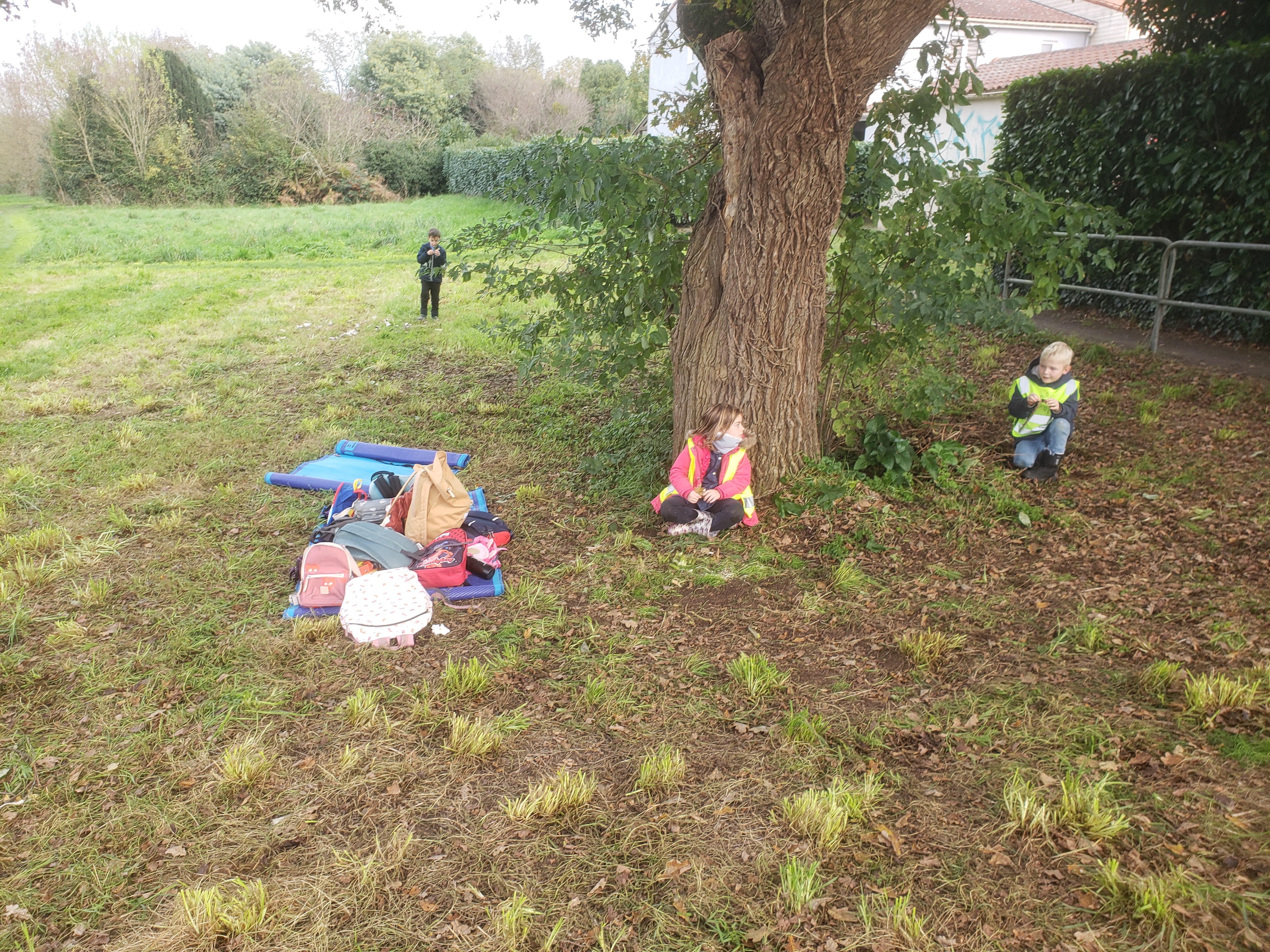 Les GS/CP sont allés en classe dehors ce vendredi après-midi pour la première fois. Ils ont fait du land art puis ont eu un temps de jeu d’exploration. Enfin ils ont écouté une histoire et ont eu un petit temps de retour au calme.
