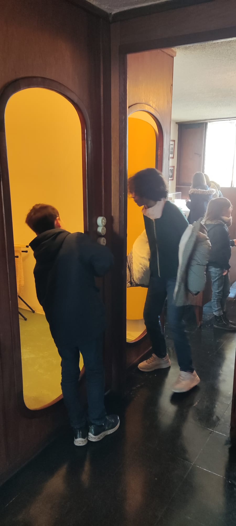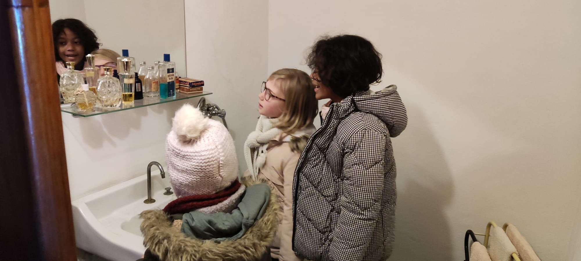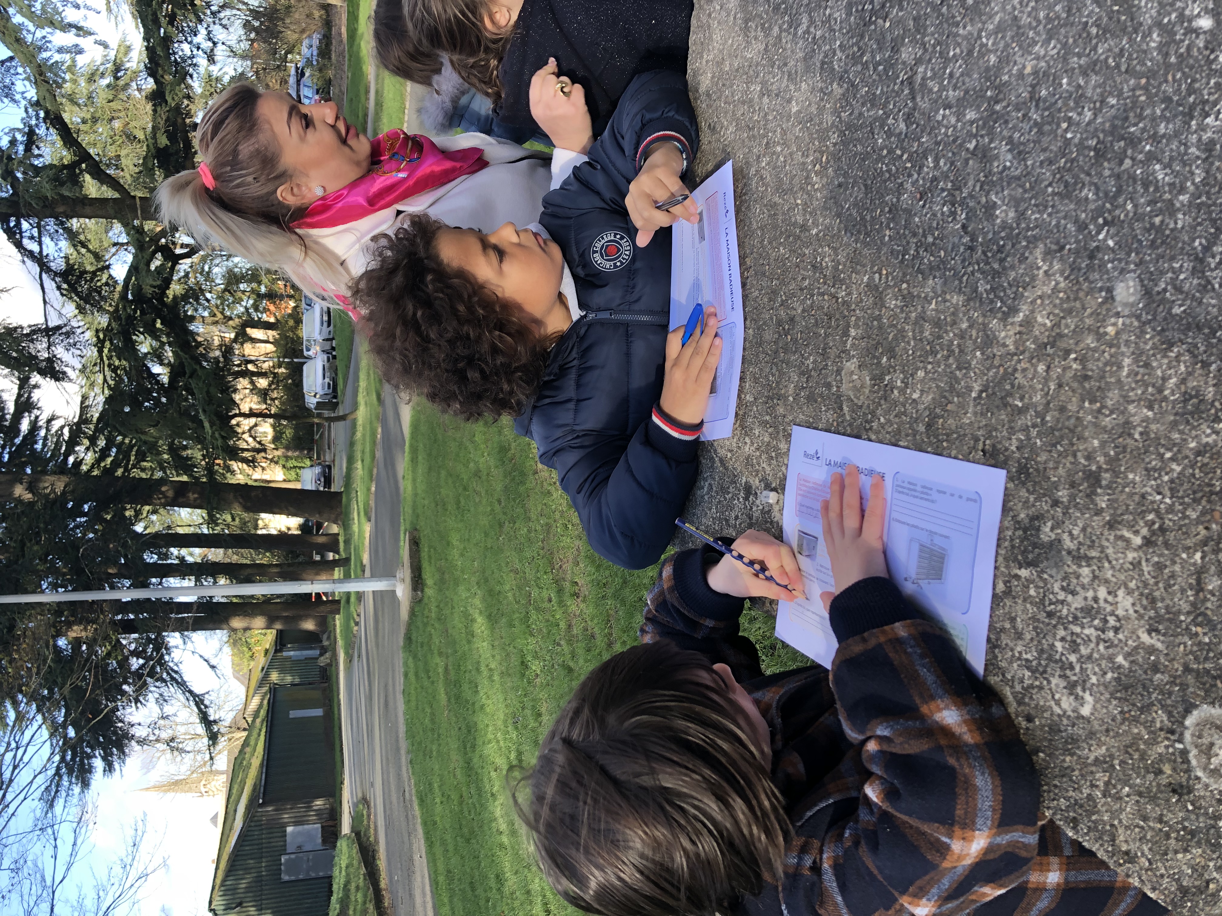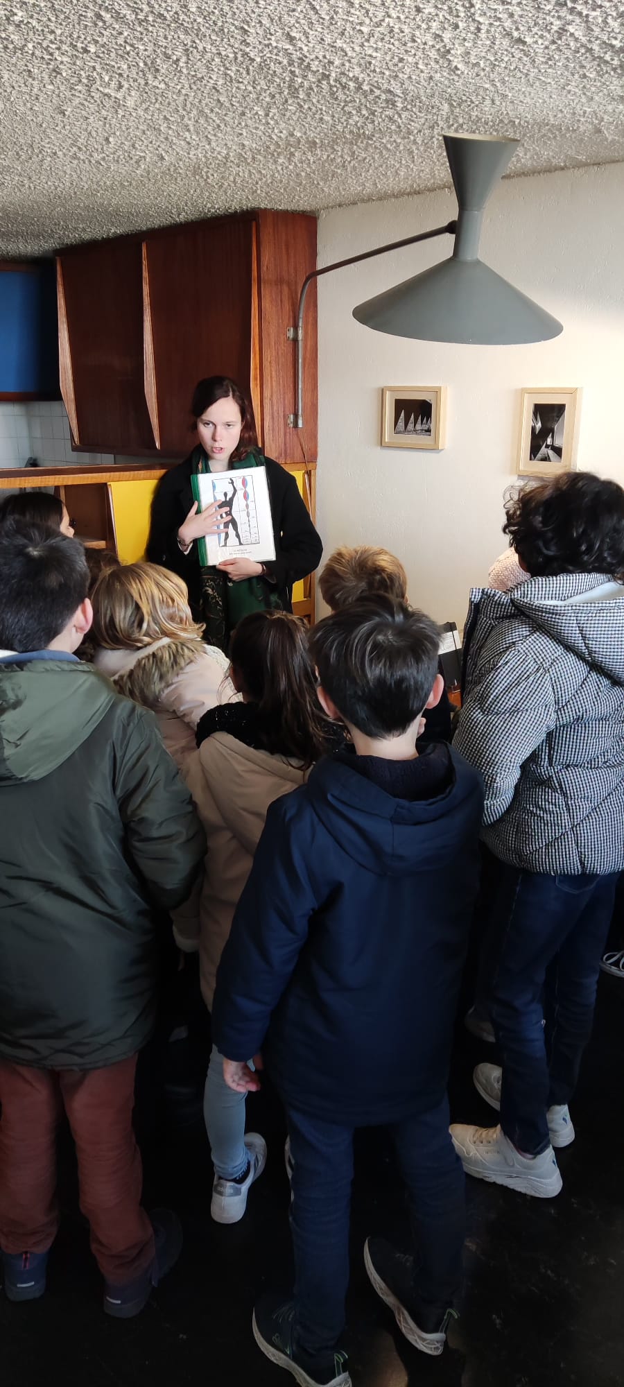 Pendant qu’un groupe menait l’enquête à l’extérieur avec des énigmes à élucider, l’autre allait découvrir le toit-terrasse (avec une vue imprenable sur Rezé, les alentours et…sur la cour de l’école!), la 6ème rue et l’appartement-témoin. Marie nous a appris beaucoup d’anecdotes sur ce grand immeuble. C’était très intéressant!.. Certains ont même pu voir leur maison!