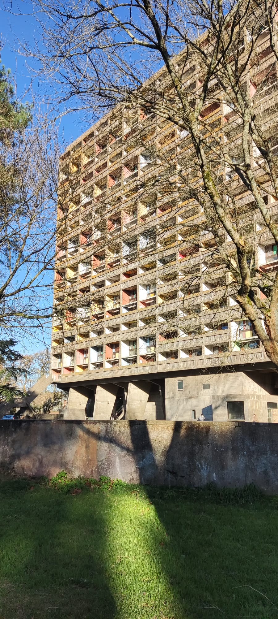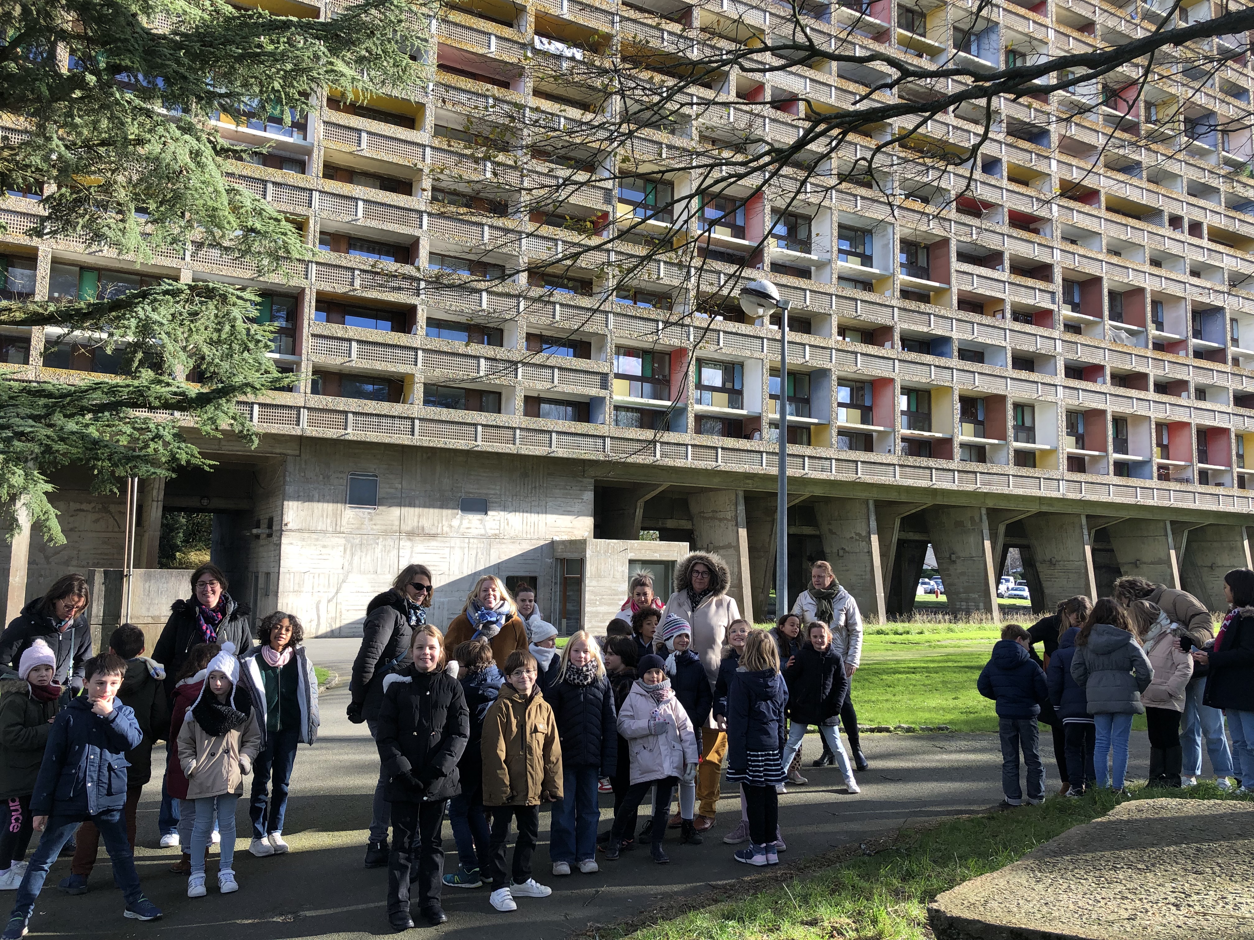 Le 22 novembre, nous sommes partis à l’assaut de notre célèbre voisine en béton, sous un soleil radieux mais aussi ébouriffés par un vent frais: la Maison Radieuse!