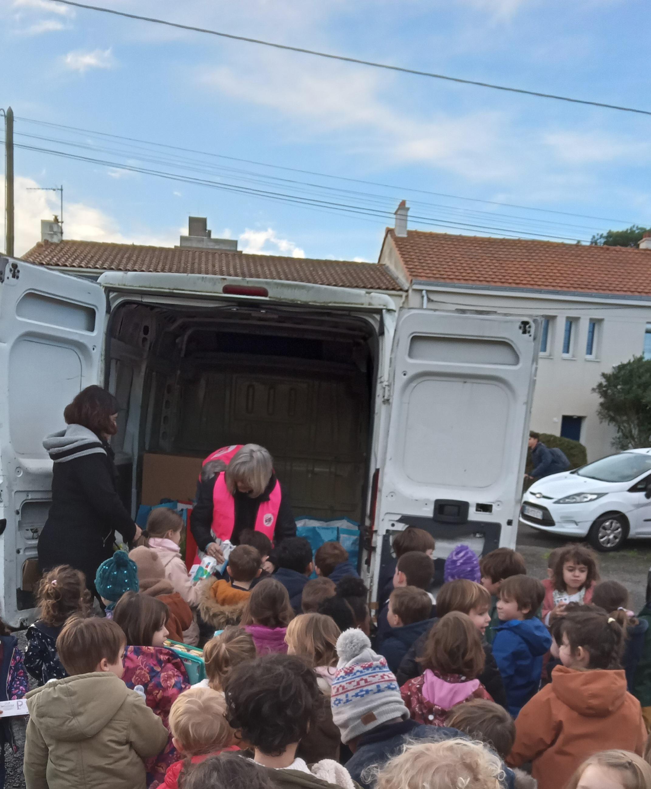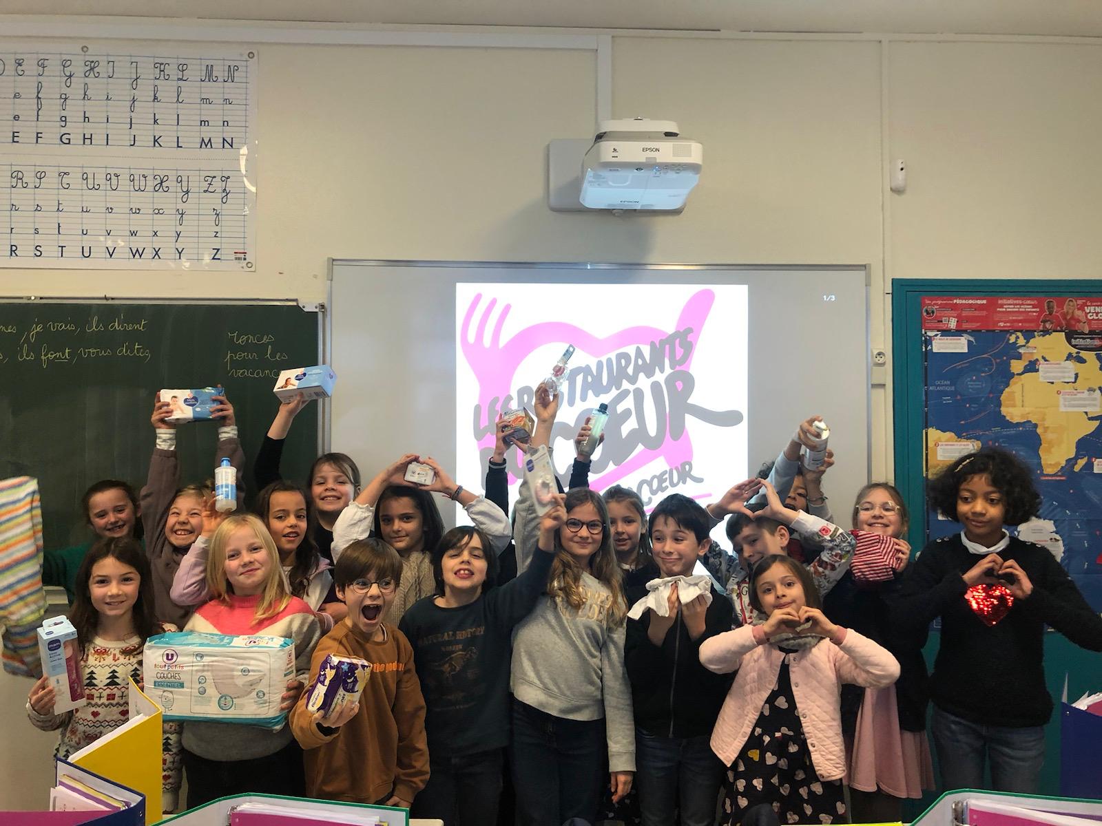 En décembre, les enfants ont récolté des dons pour les Bébés du Coeur, quelle joie de tout apporter au camion des Restos du Coeur juste avant Noël. Un grand merci à vous pour votre générosité !!!