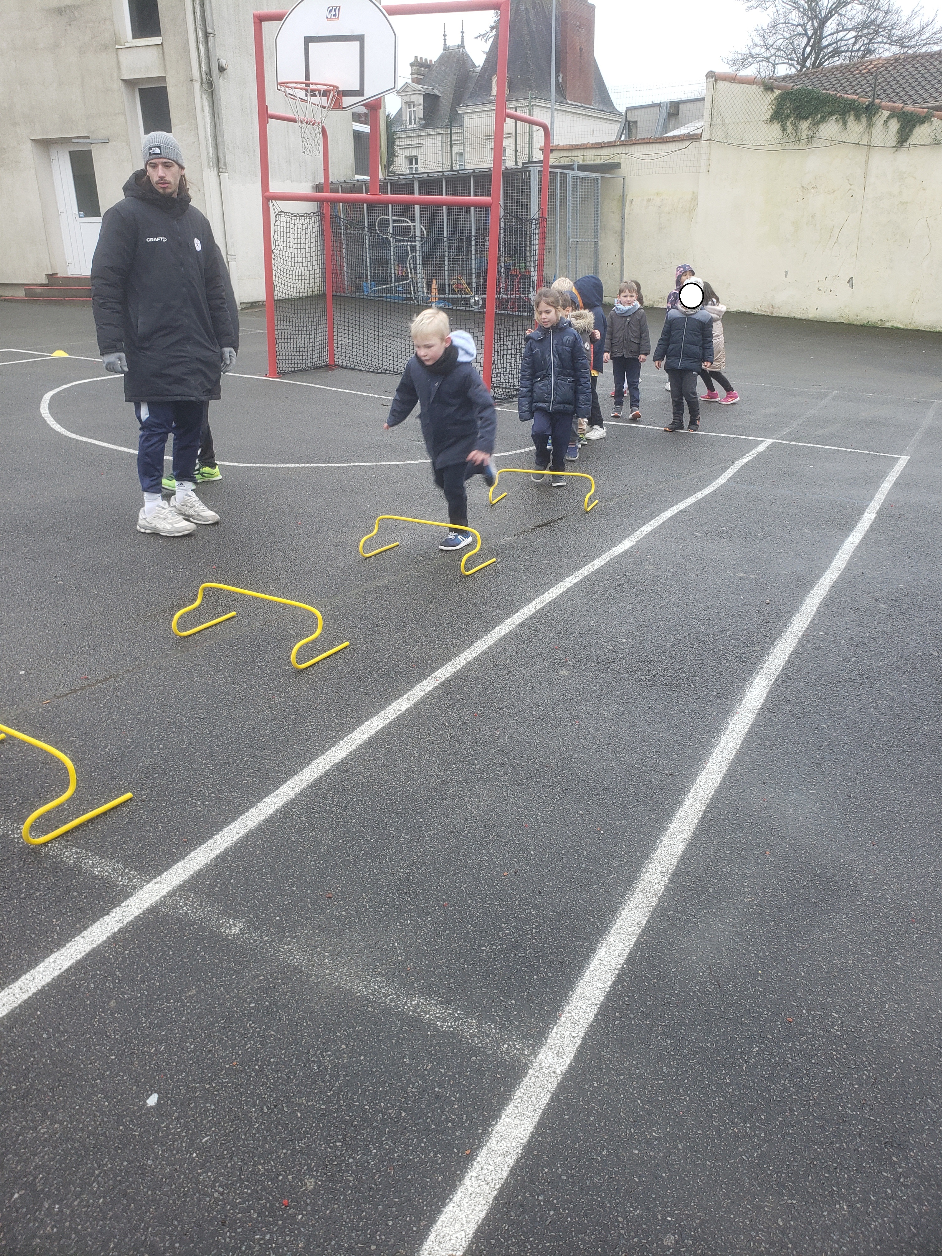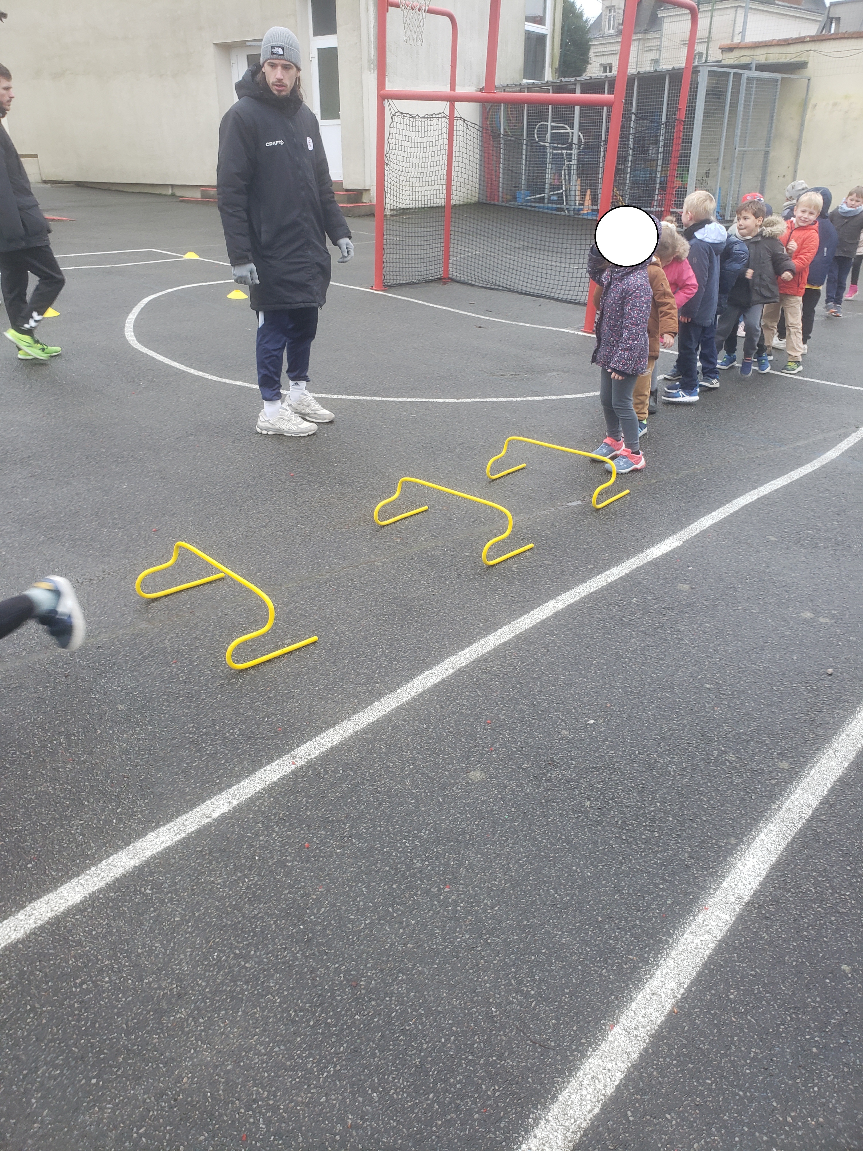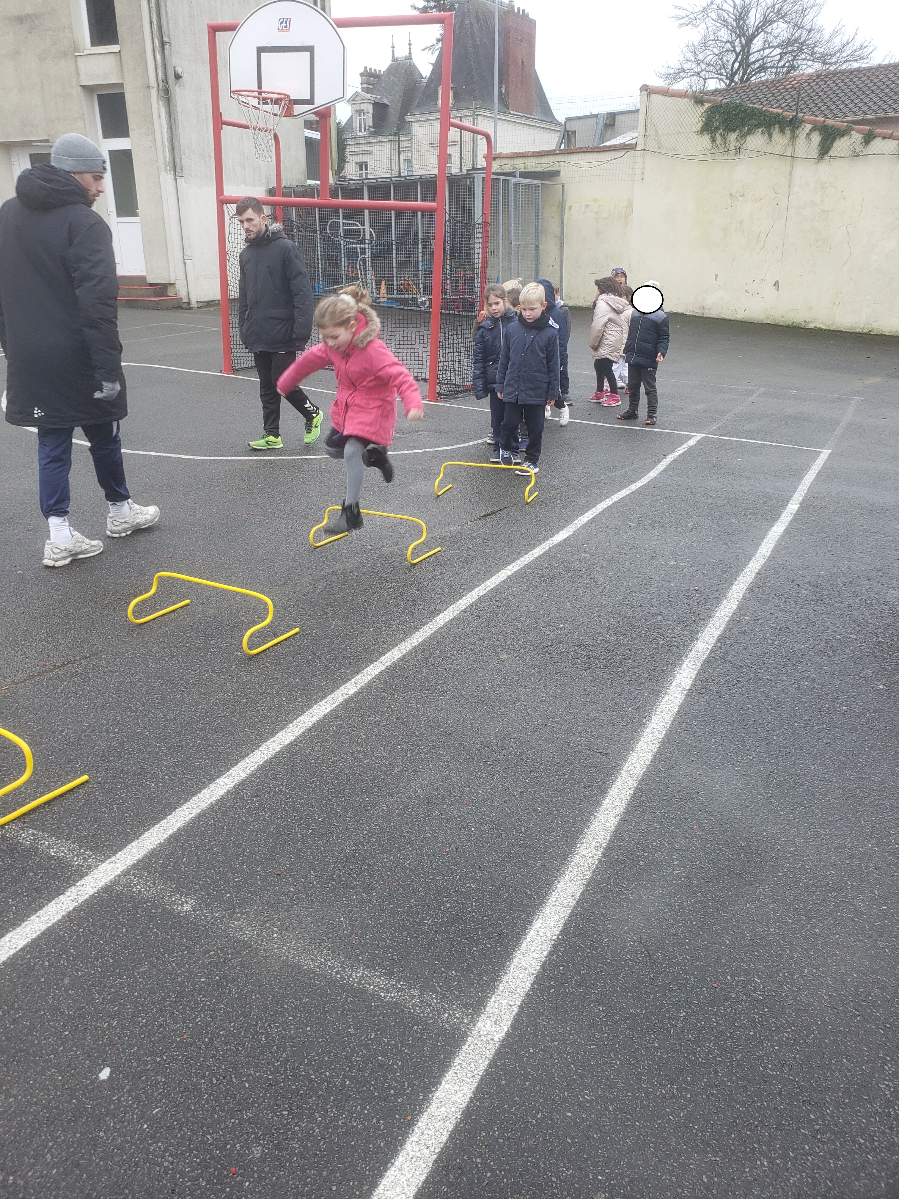 Les élèves de GS/CP vont découvrir le handball jusqu’aux vacances de printemps grâce aux entraineurs de l’ASB Rezé handball. Pour cette première séance ils ont appris à lancer le ballon avec le bras cassé et le bras viseur.