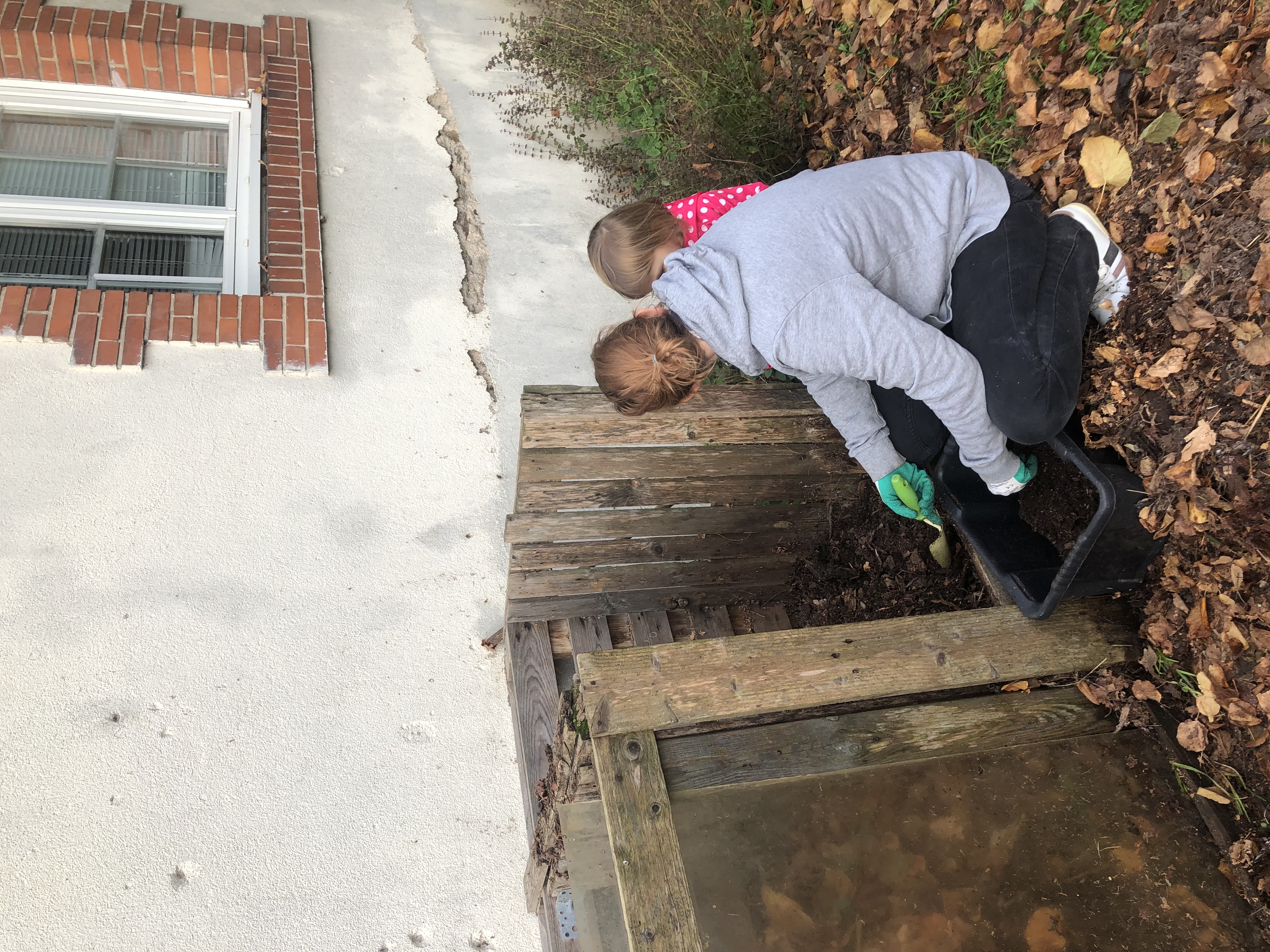 Ce samedi matin, une équipe de super-parents-ultra-motivés a bravé les éléments pour entretenir notre joli potager!