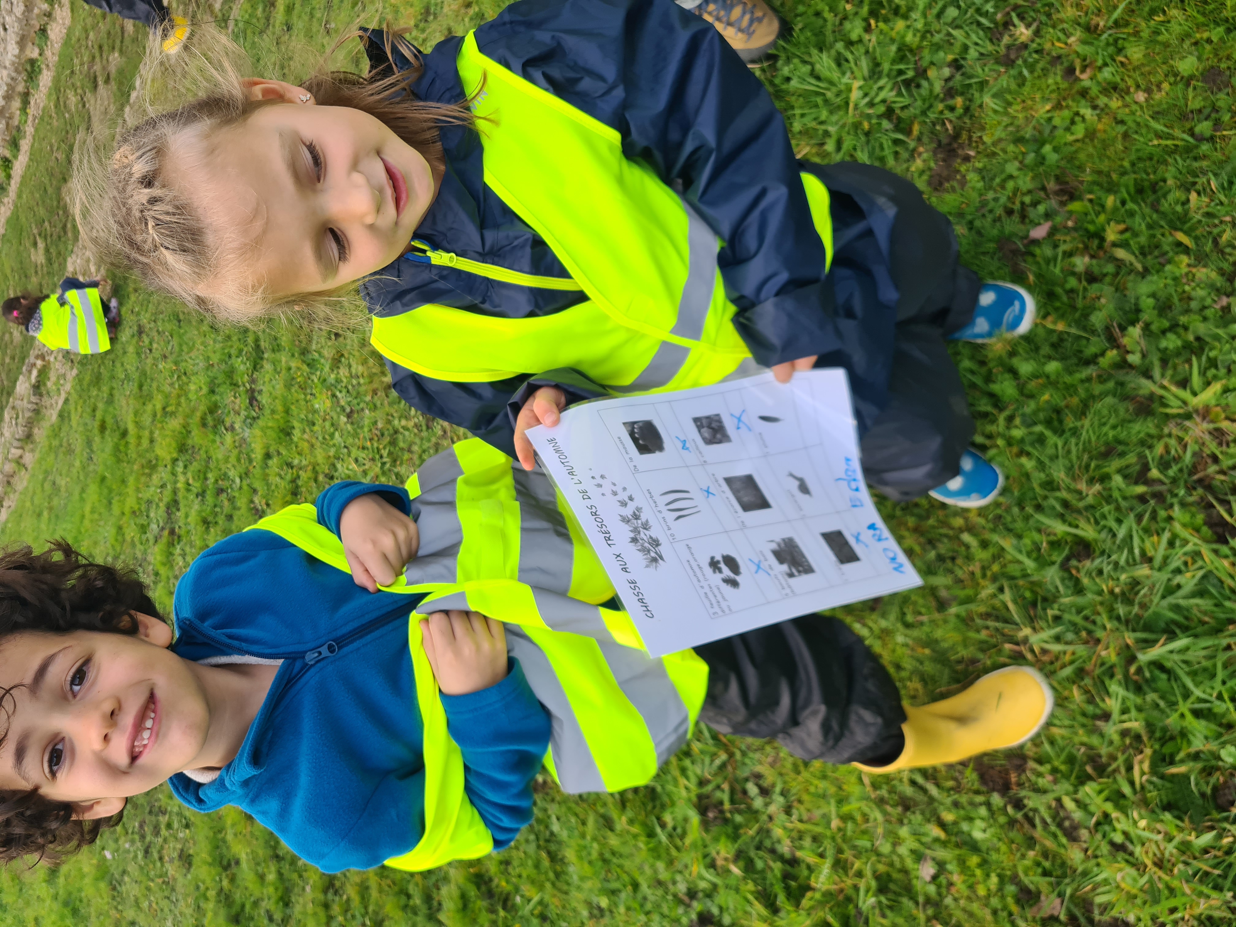 Ensuite par binôme, ils ont fait une chasse aux trésors de la nature.