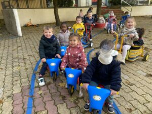 Ca bouge en Petite Section!Par PS / 23 novembre 2025 AGIR, S’EXPRIMER, COMPRENDRE à travers l’activité physique: Bouger c’est le maitre mot de la matinée en PS avec une séance de motricité quotidienne et un temps de récréation! Nouveautés du mois de novembre : Scooters et Parcours moteur!