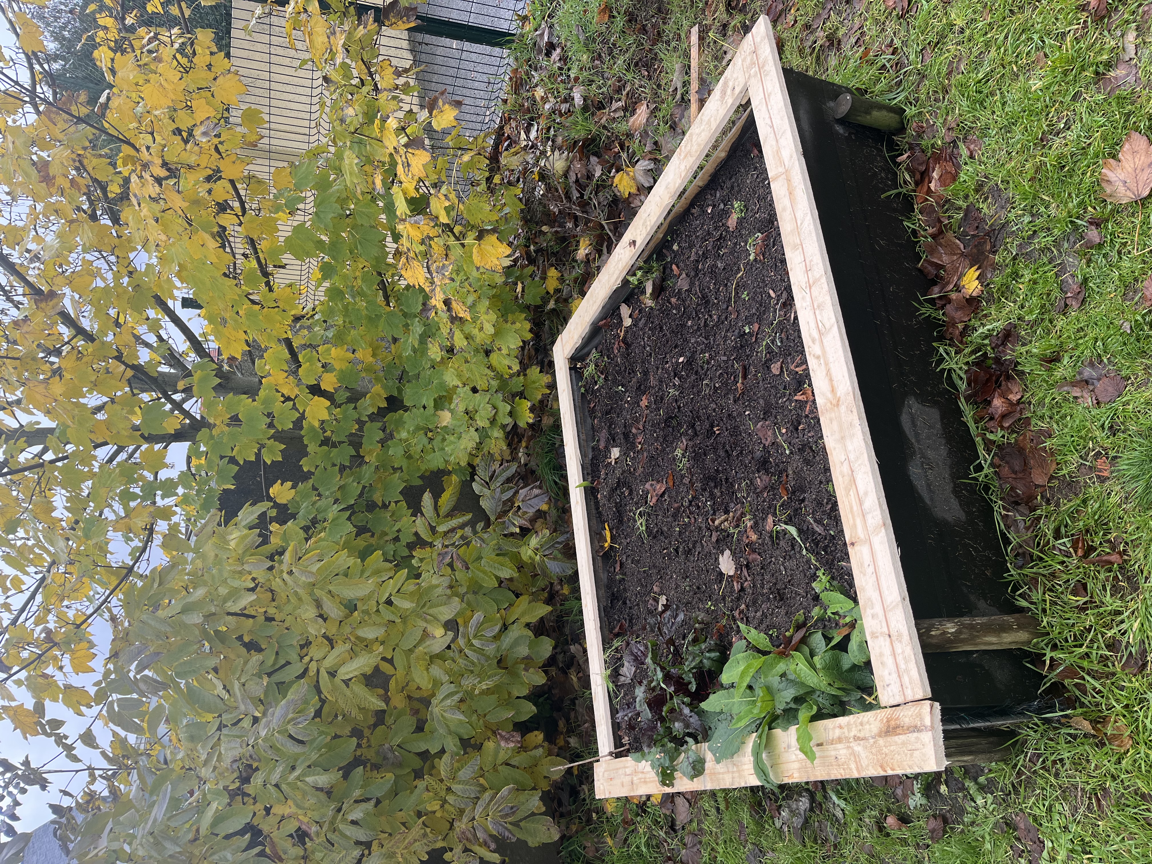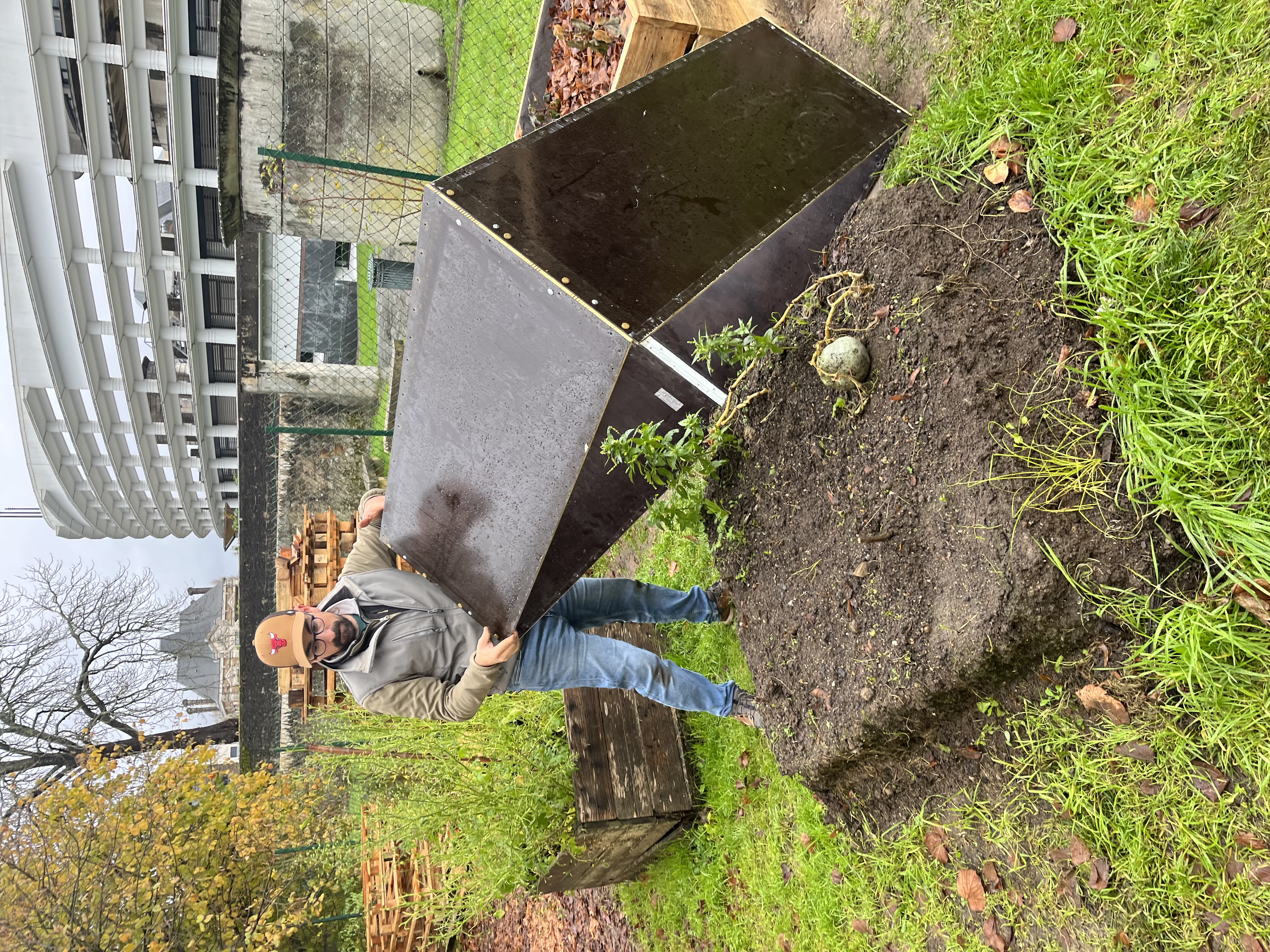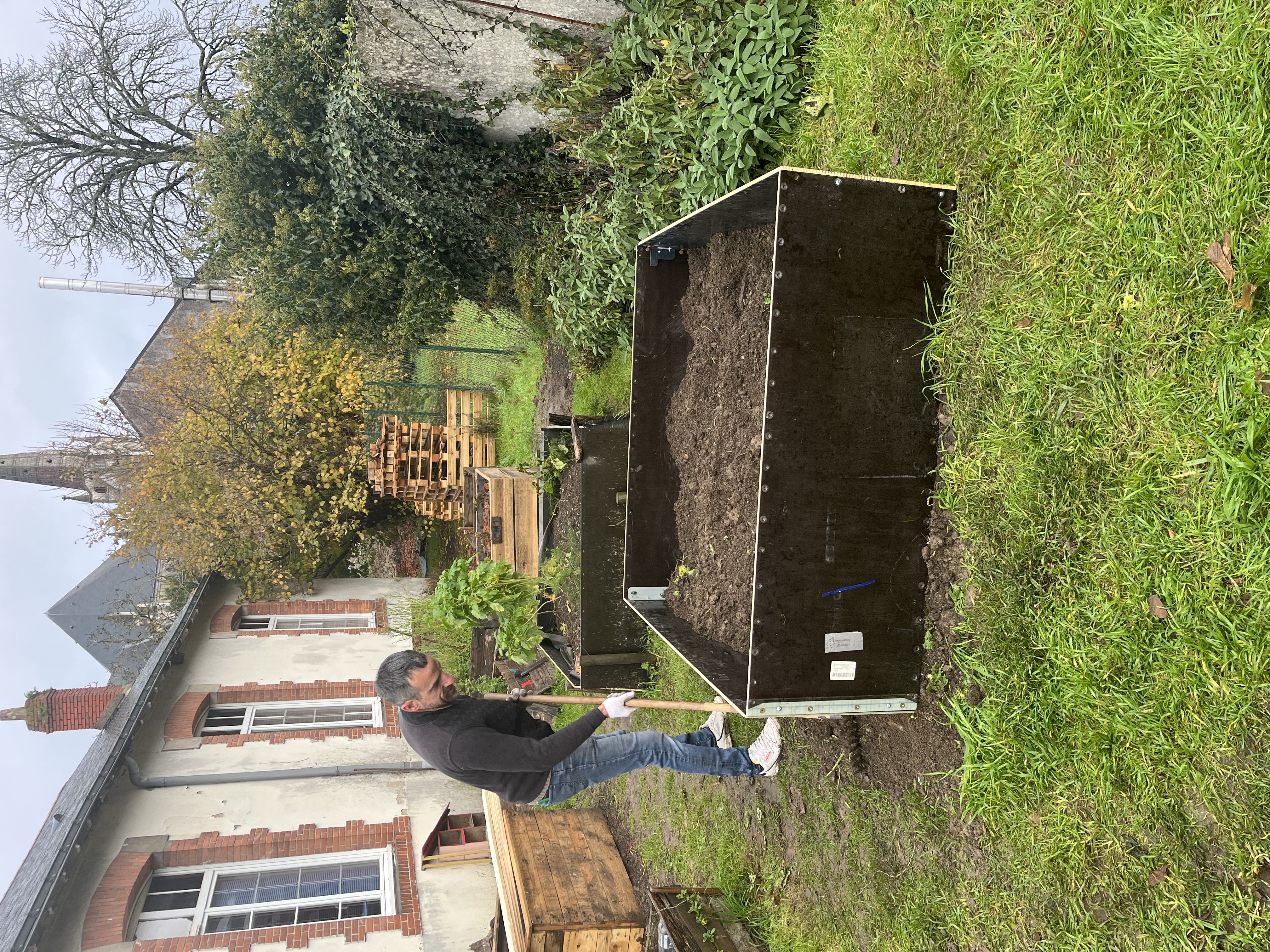 Ce samedi 29 novembre, c’est encore une belle équipe de parents motivés qui a travaillé pour le potager, malgré une météo mitigée (C’est l’automne, quoi…)!