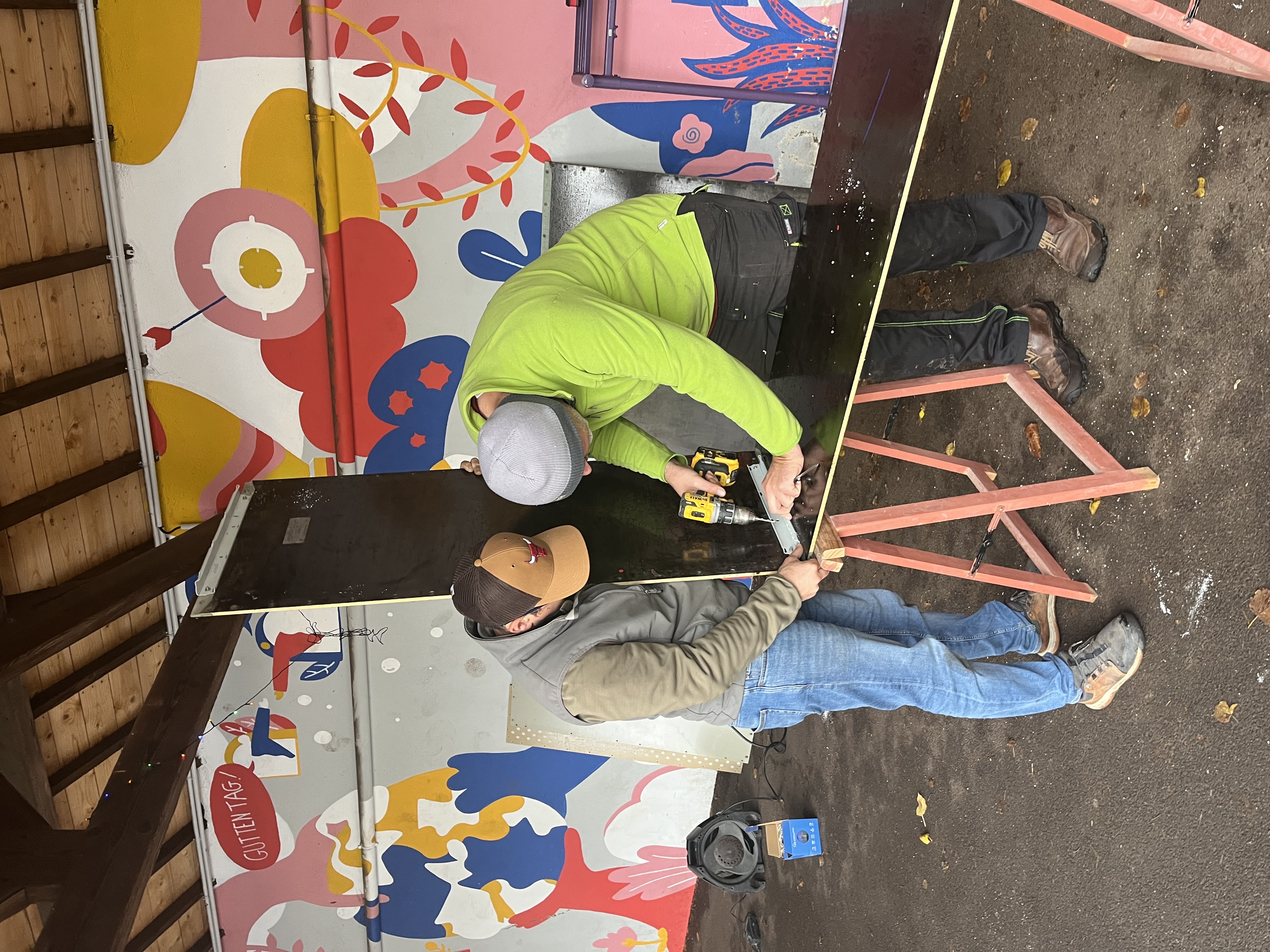 Un grand MERCI aux deux Nicolas, Didier, Thomas et Damien! Et BRAVO pour le temps passé, la bonne humeur, les stratégies de construction (Thomas et Nicolas L), l’outillage de compétition, le professionnalisme (spéciale dédicace à Didier) et le matériel “haut de gamme” (spéciale dédicace à Nicolas F)!