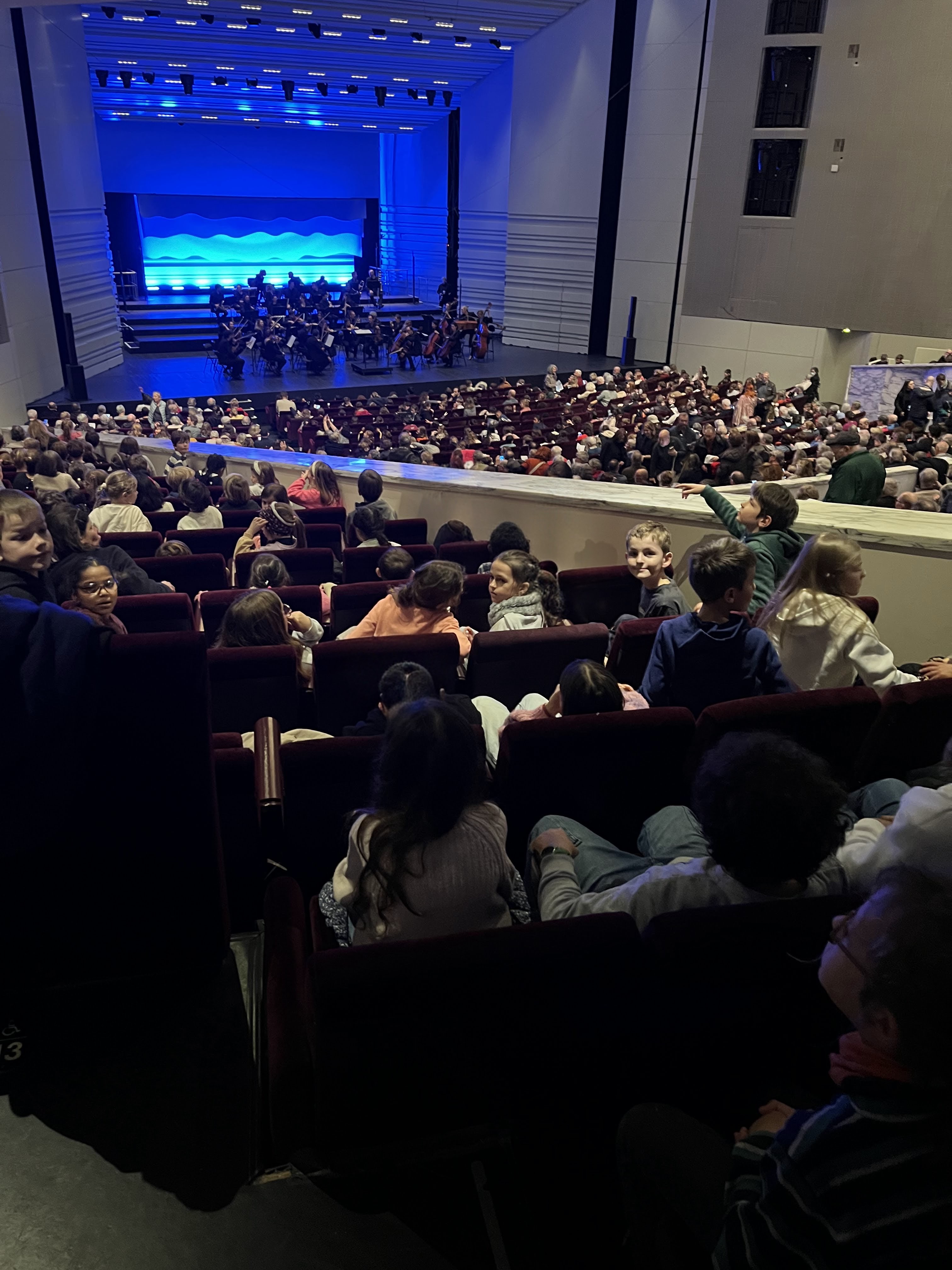 Ce vendredi 30 janvier, les classes de CP/CE2 et CE2 sont passées entre les gouttes pour aller profiter de la Folle Journée à la Cité des Congrès de Nantes, dans l’après-midi. Ce fut un véritable enchantement! L’occasion aussi de repérer tous les instruments dont nous avions parlé en classe et de se laisser bercer par cette « Symphonie pastorale » de Ludwig Van Beethoven.