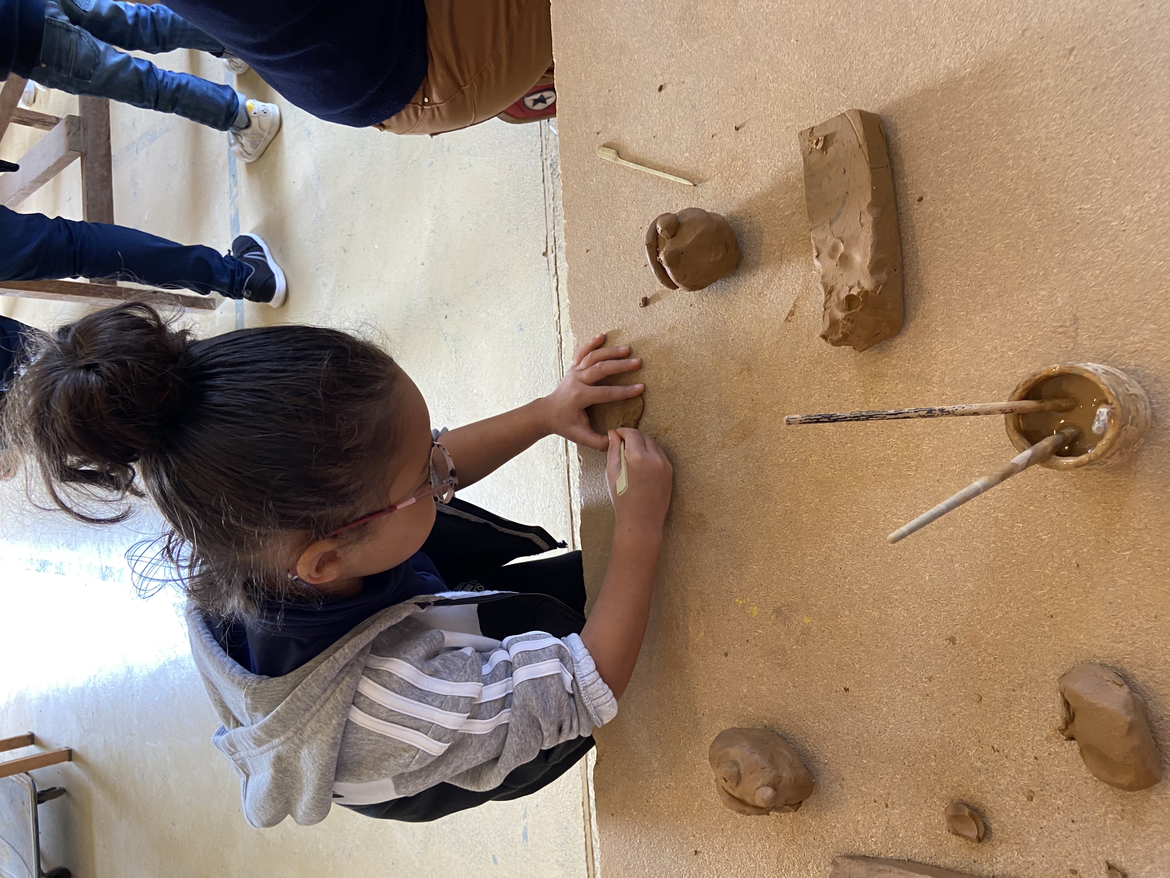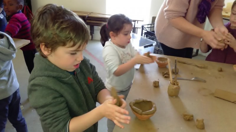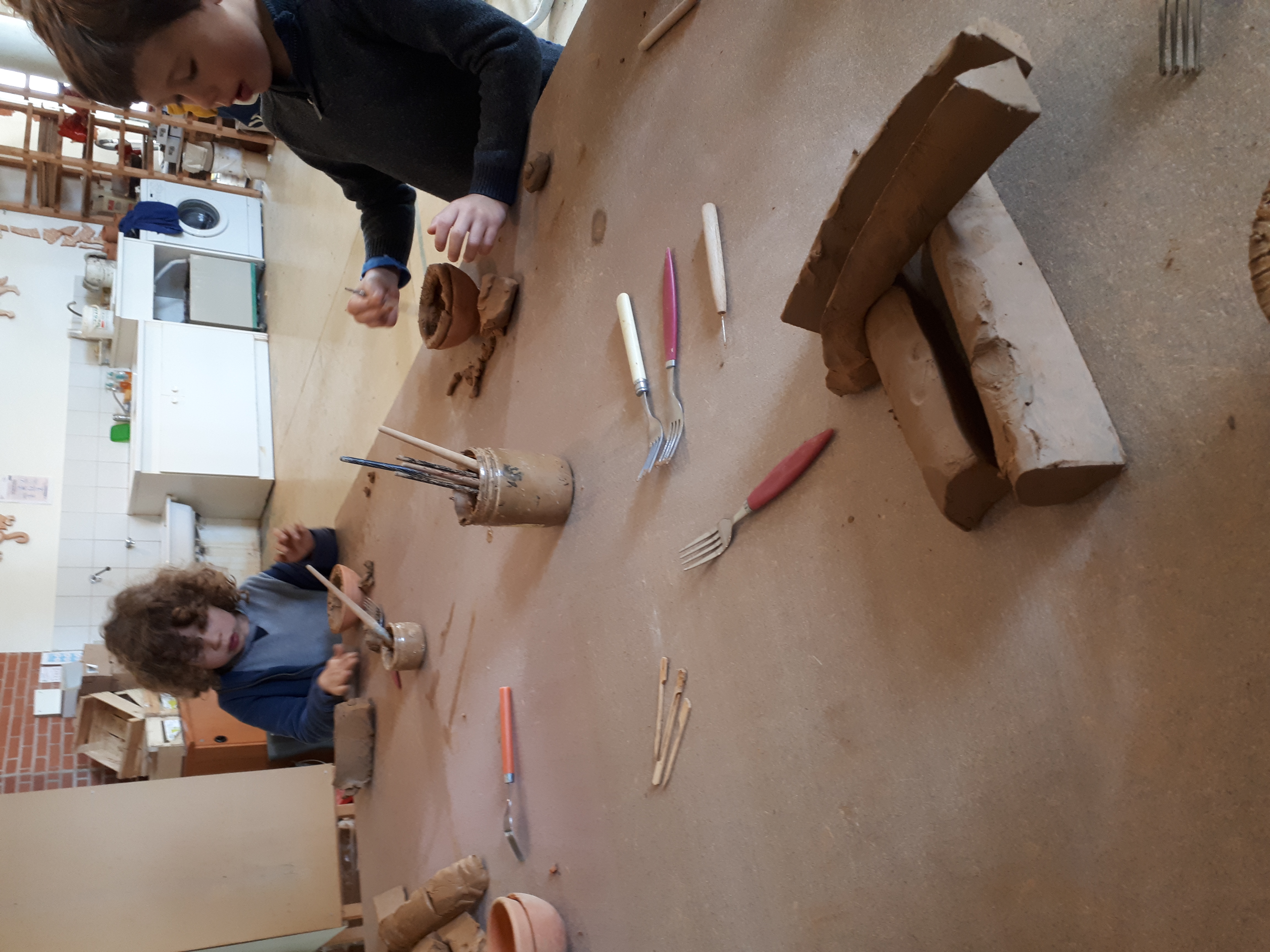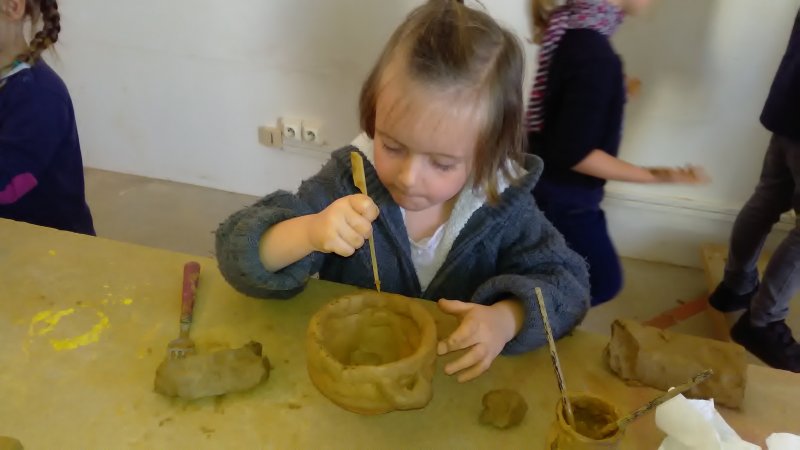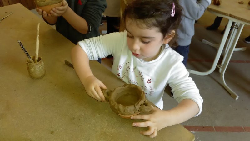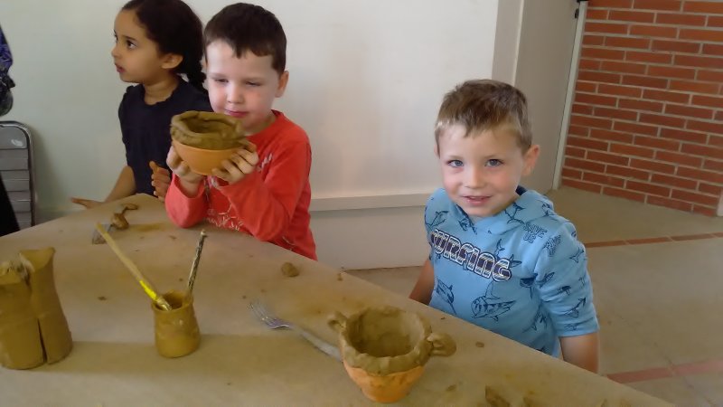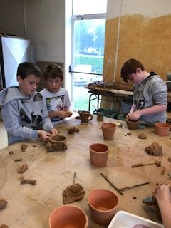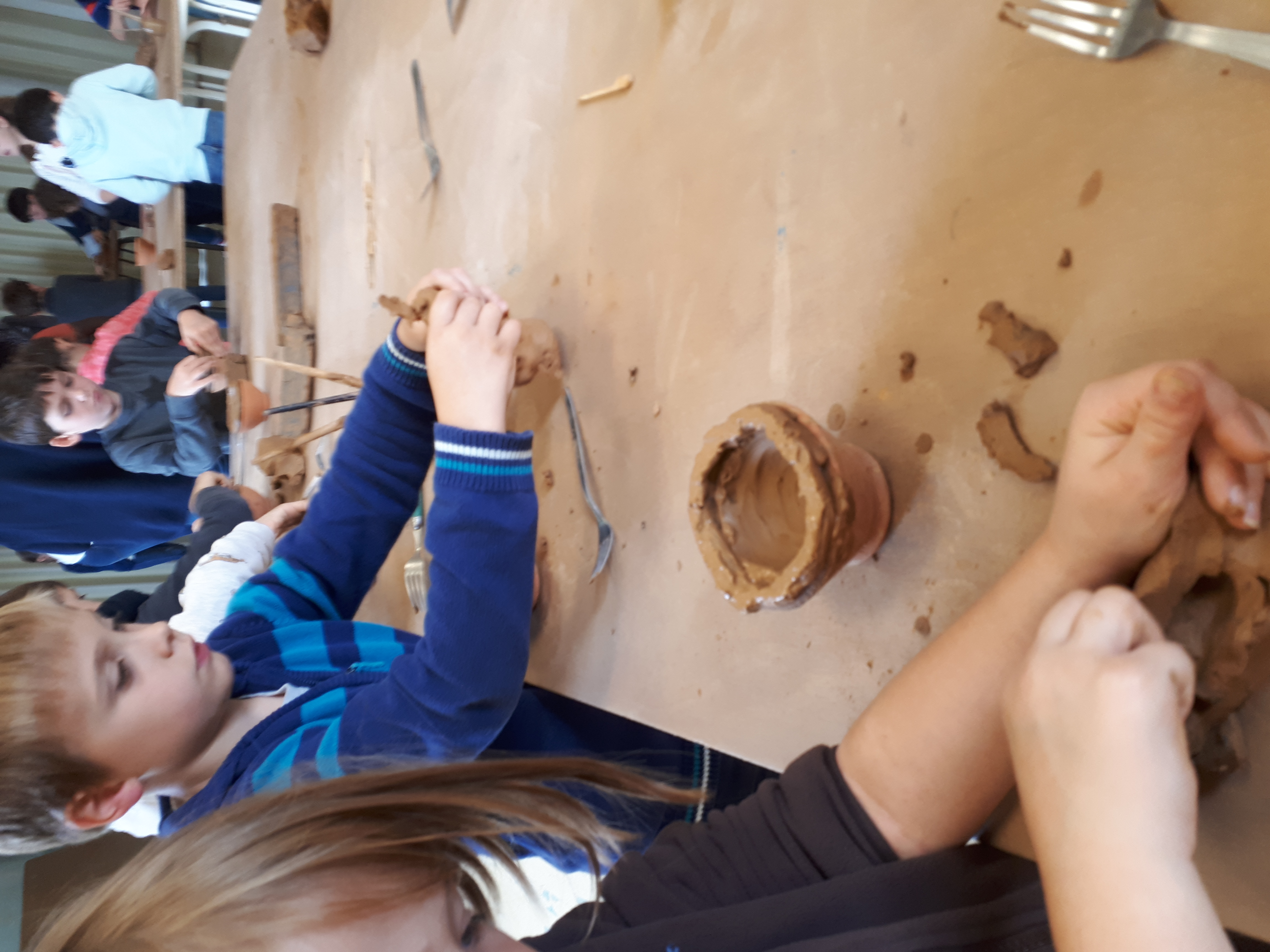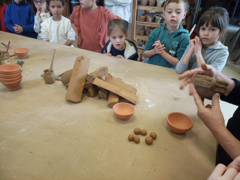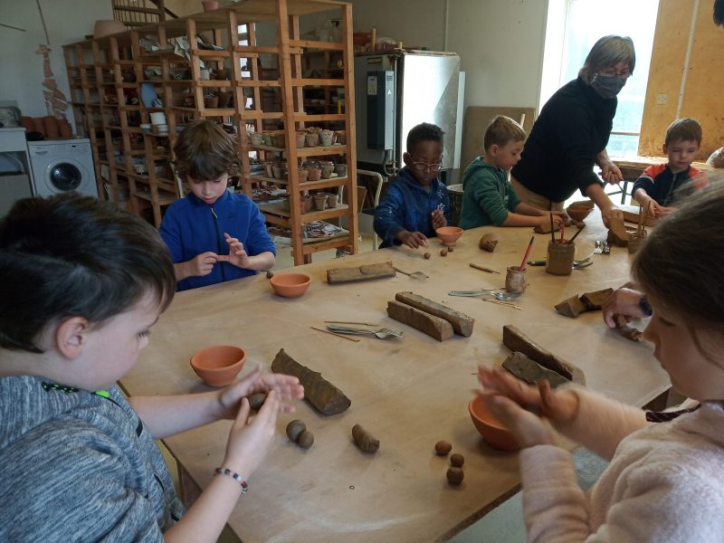 Chaque élève a pu apprendre l’histoire du site dans un petit musée pédagogique, observer une potière professionnelle sur un tour électrique, explorer une ancienne carrière d’exploitation, imaginer une œuvre de landart en équipe et en plein air et, enfin, … créer leur poterie en terre !