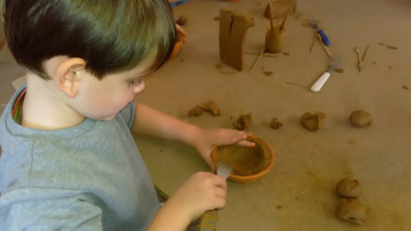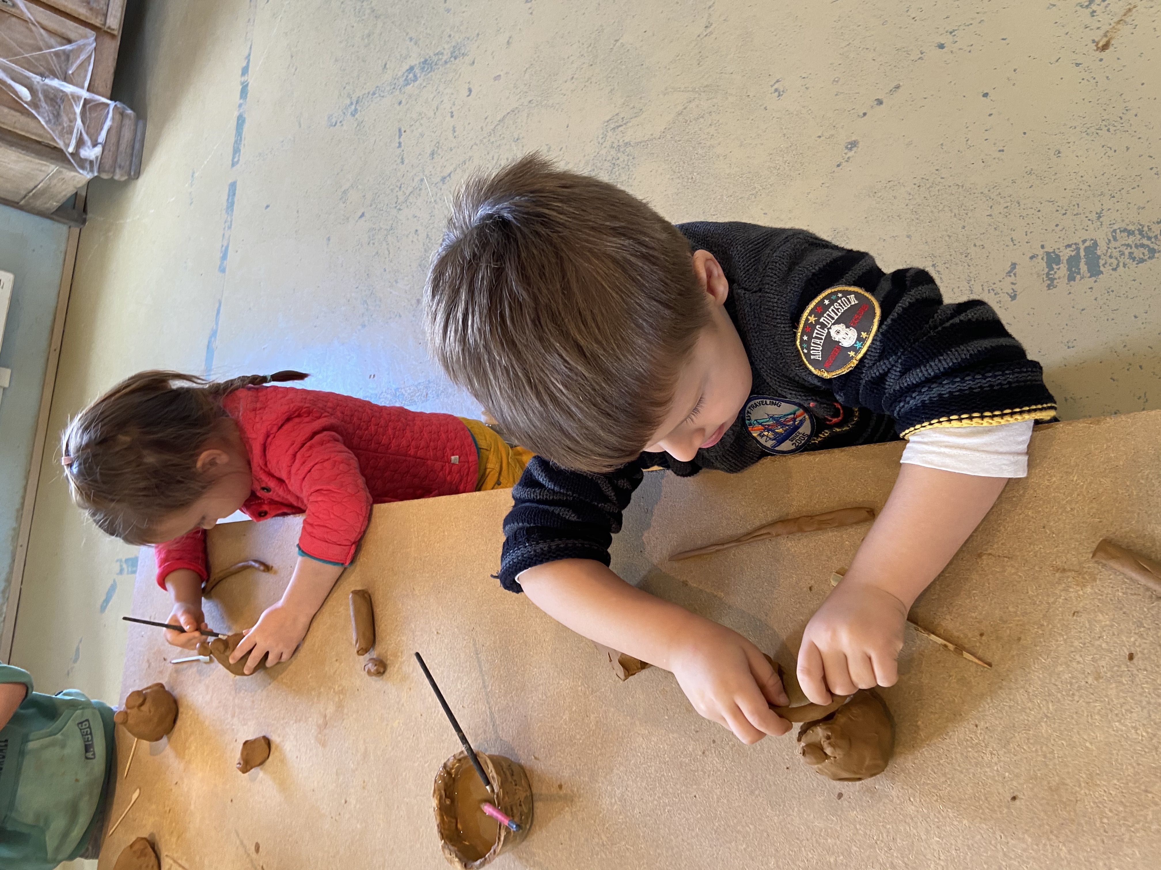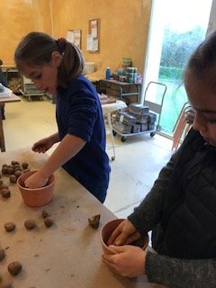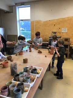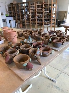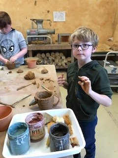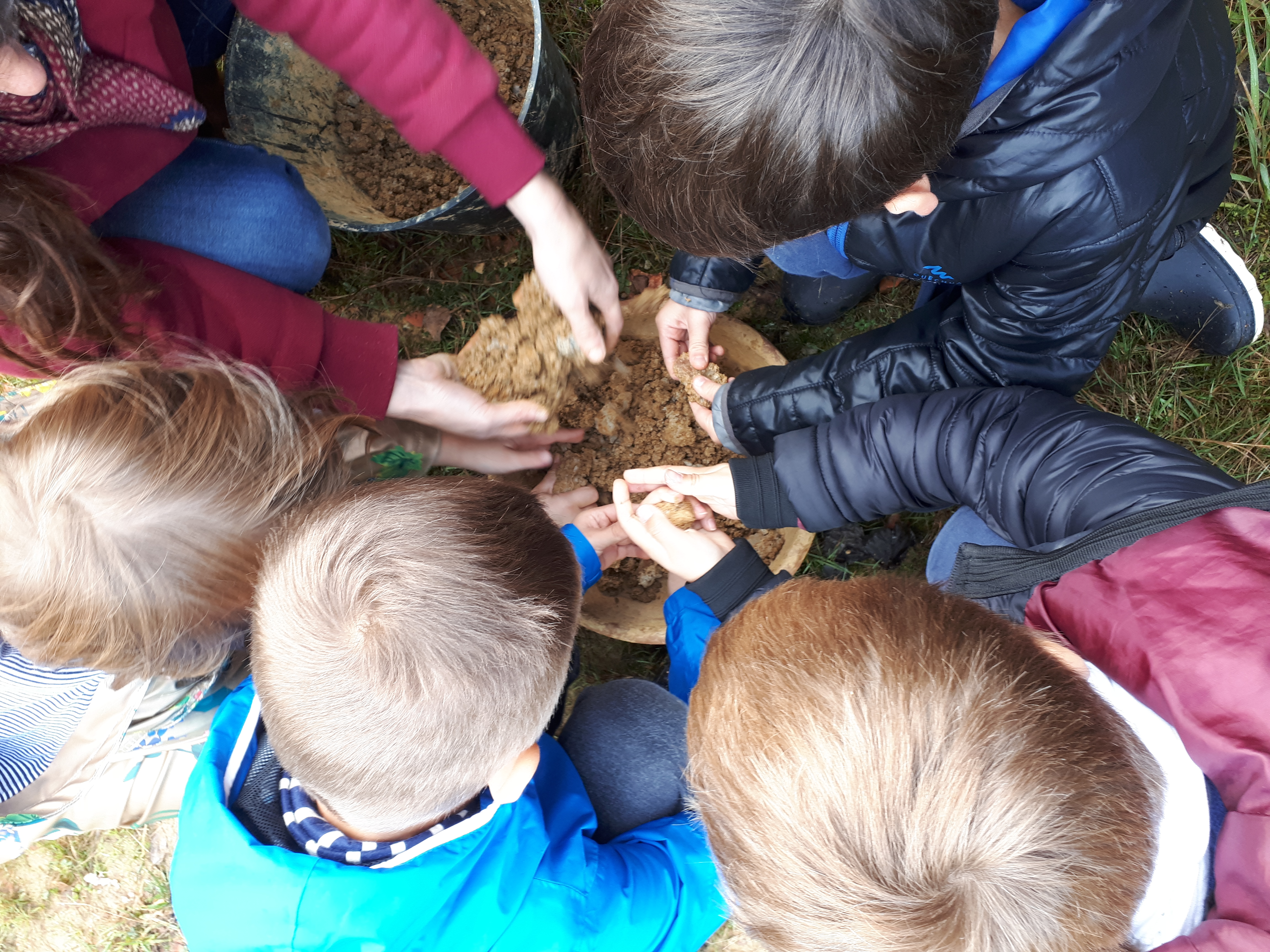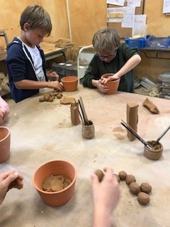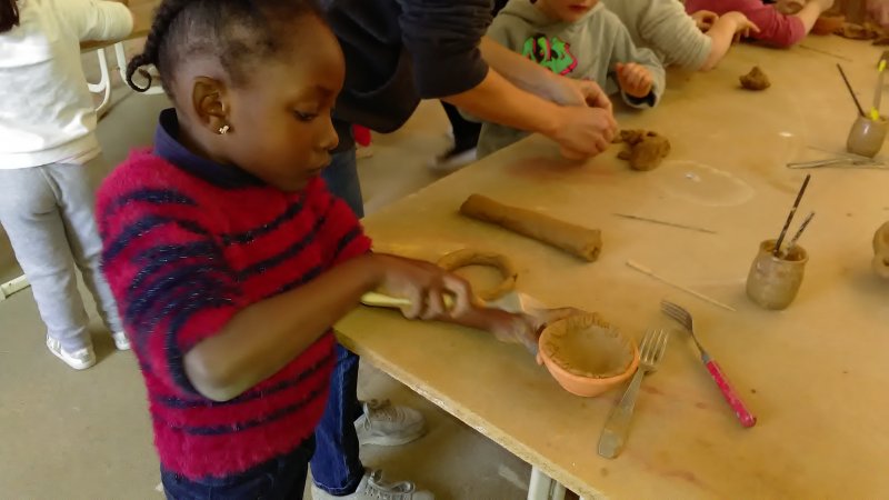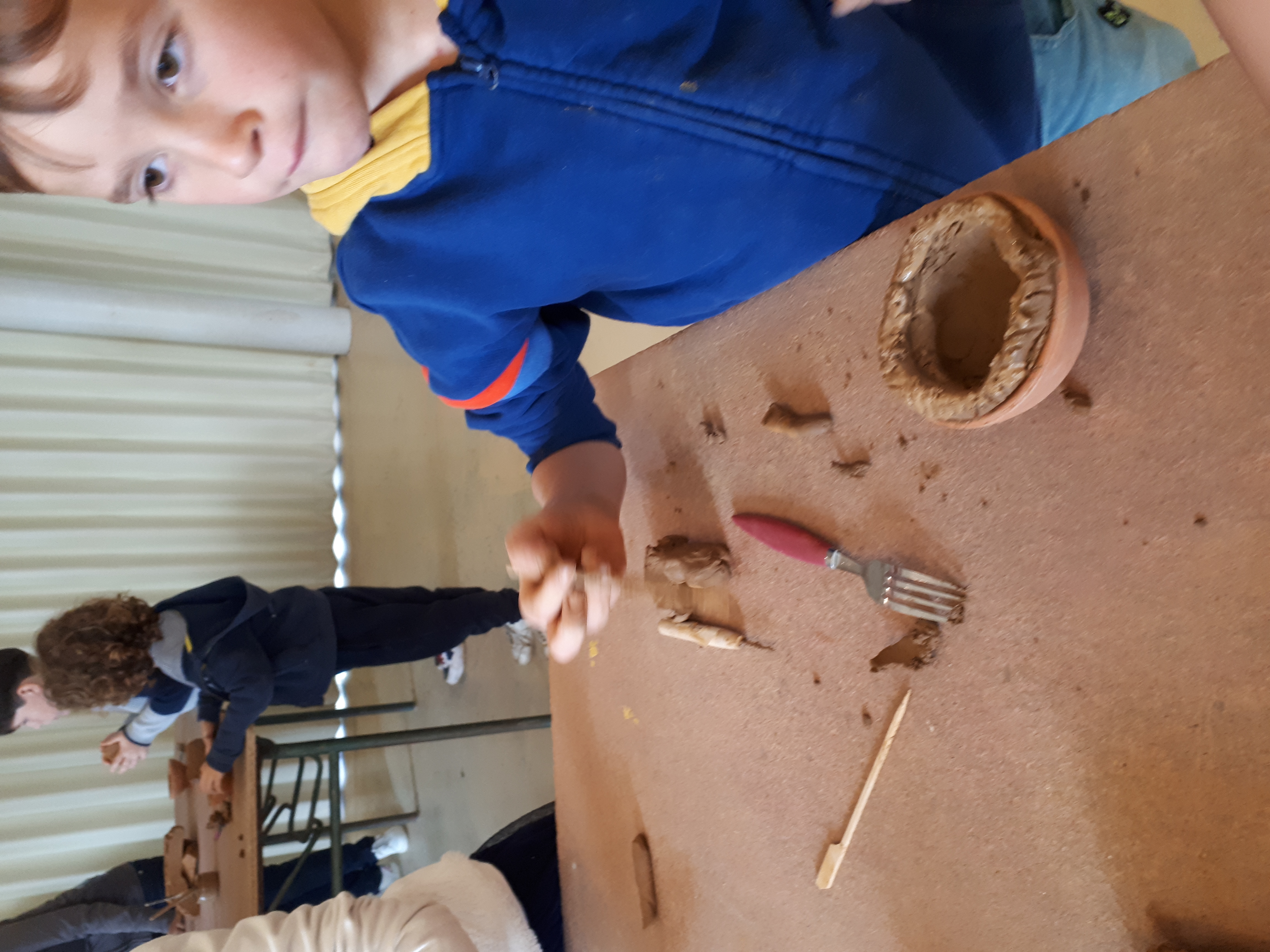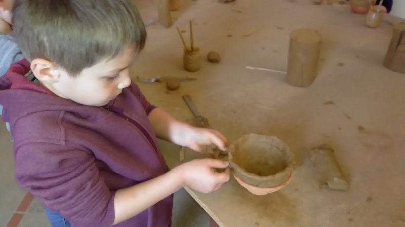 Chaque élève a pu apprendre l’histoire du site dans un petit musée pédagogique, observer une potière professionnelle sur un tour électrique, explorer une ancienne carrière d’exploitation, imaginer une œuvre de landart en équipe et en plein air et, enfin, … créer leur poterie en terre !