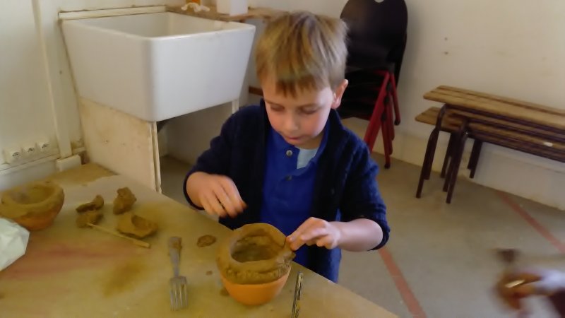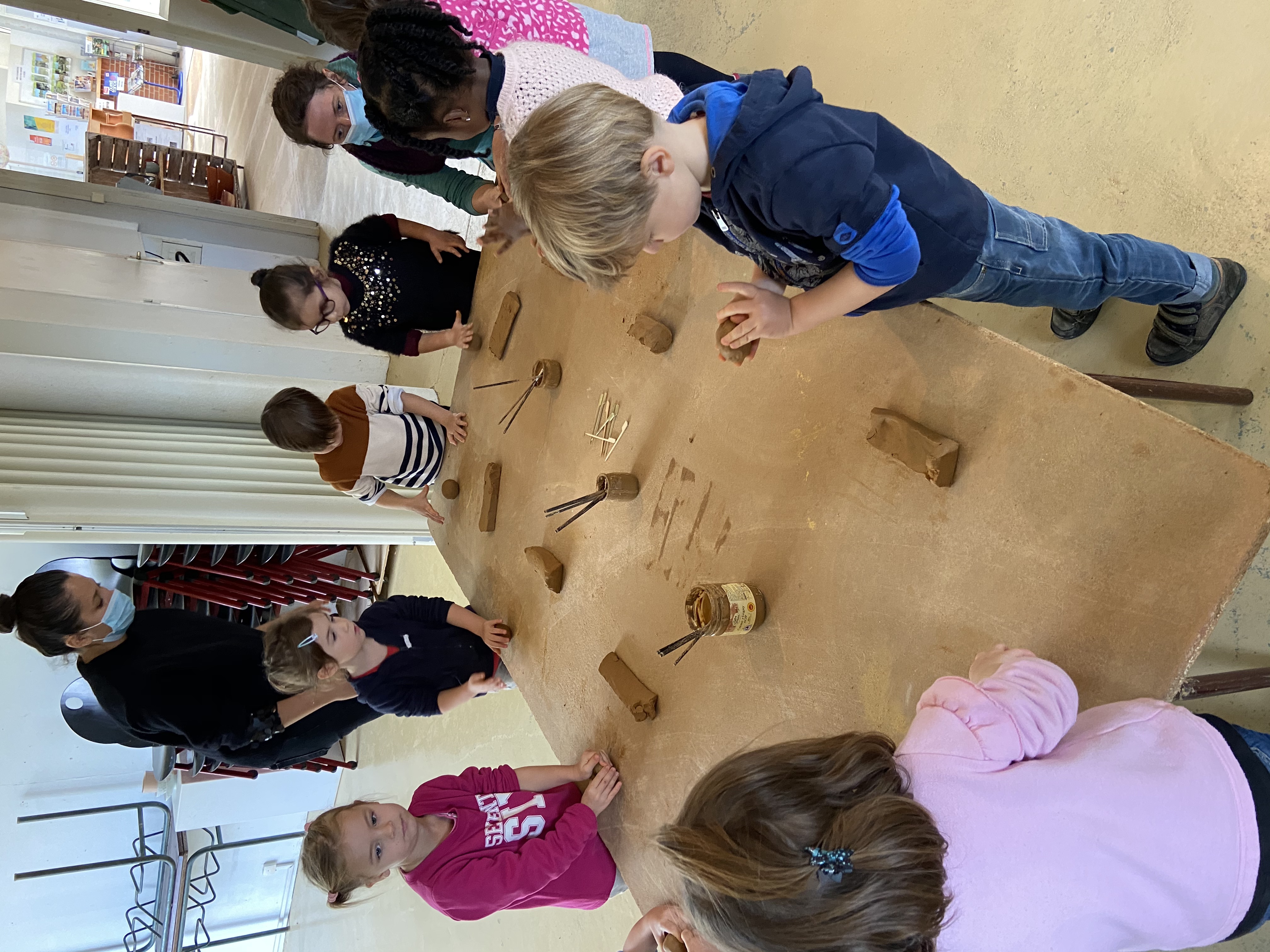Durant le mois d’octobre et dans le cadre de notre projet d’école autour de l’écriture, les classes de MS à CM1 ont découvert la Maison du Potier au Fuilet (49).