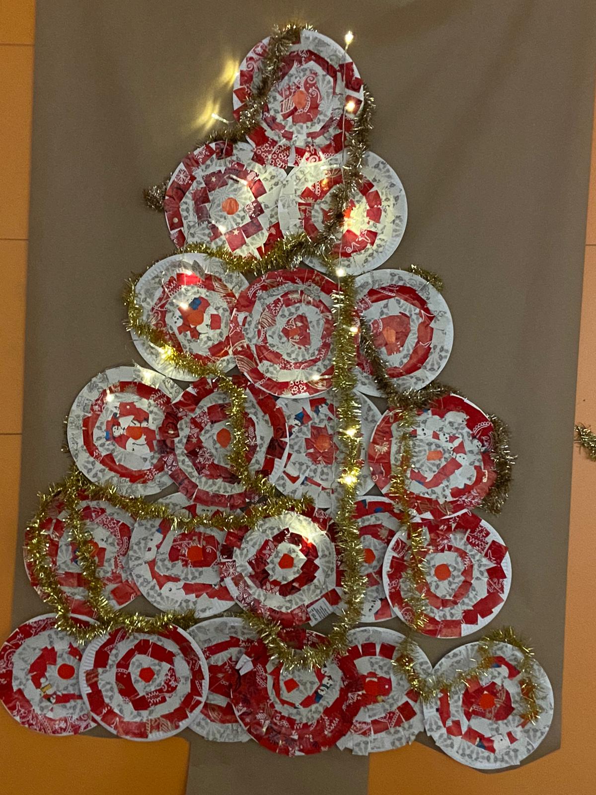 Les moyens ont réalisé un grand et beau sapin dans leur classe.
