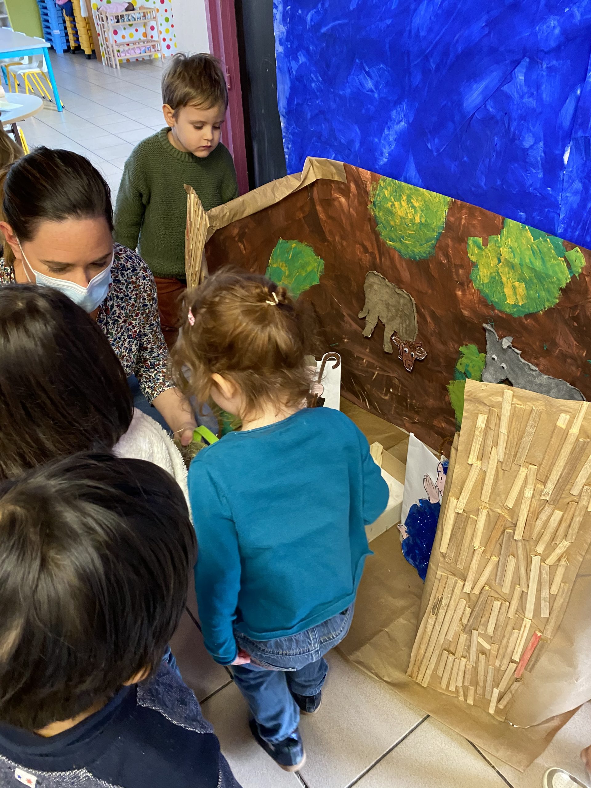 Nous écoutons des histoires de NOEL qui nous expliquent la naissance d’un bébé, Jésus, le soir de NOEL.