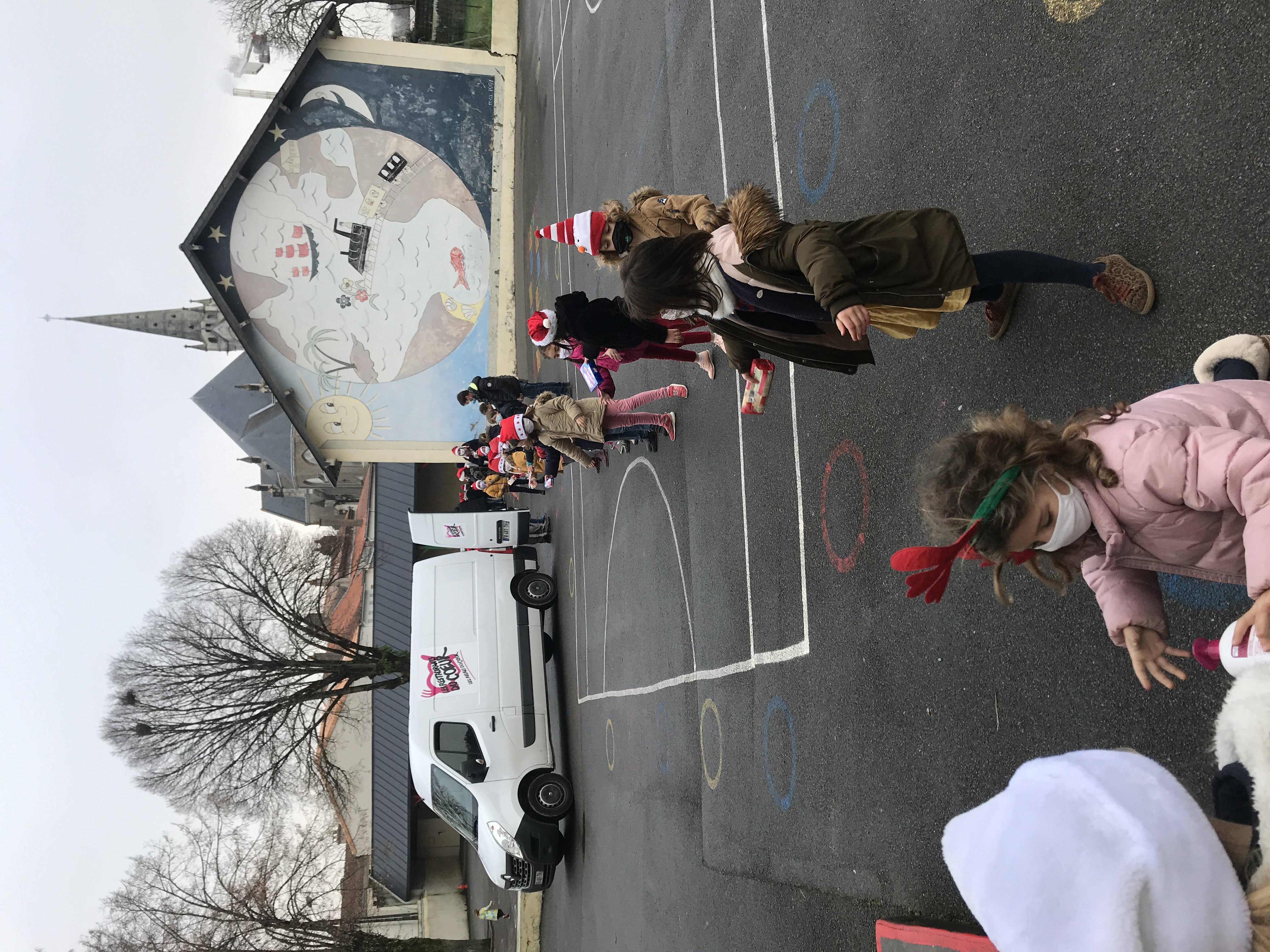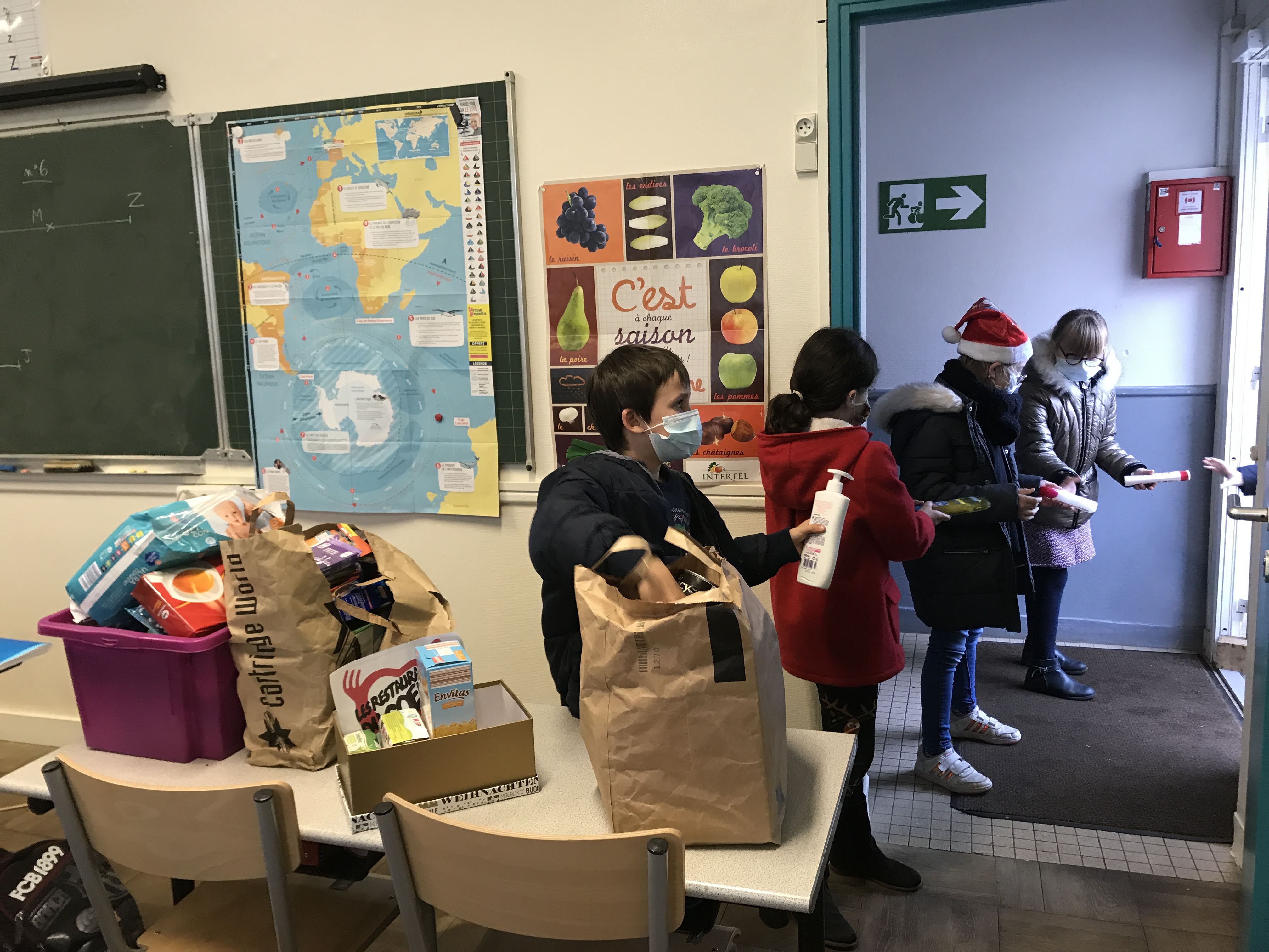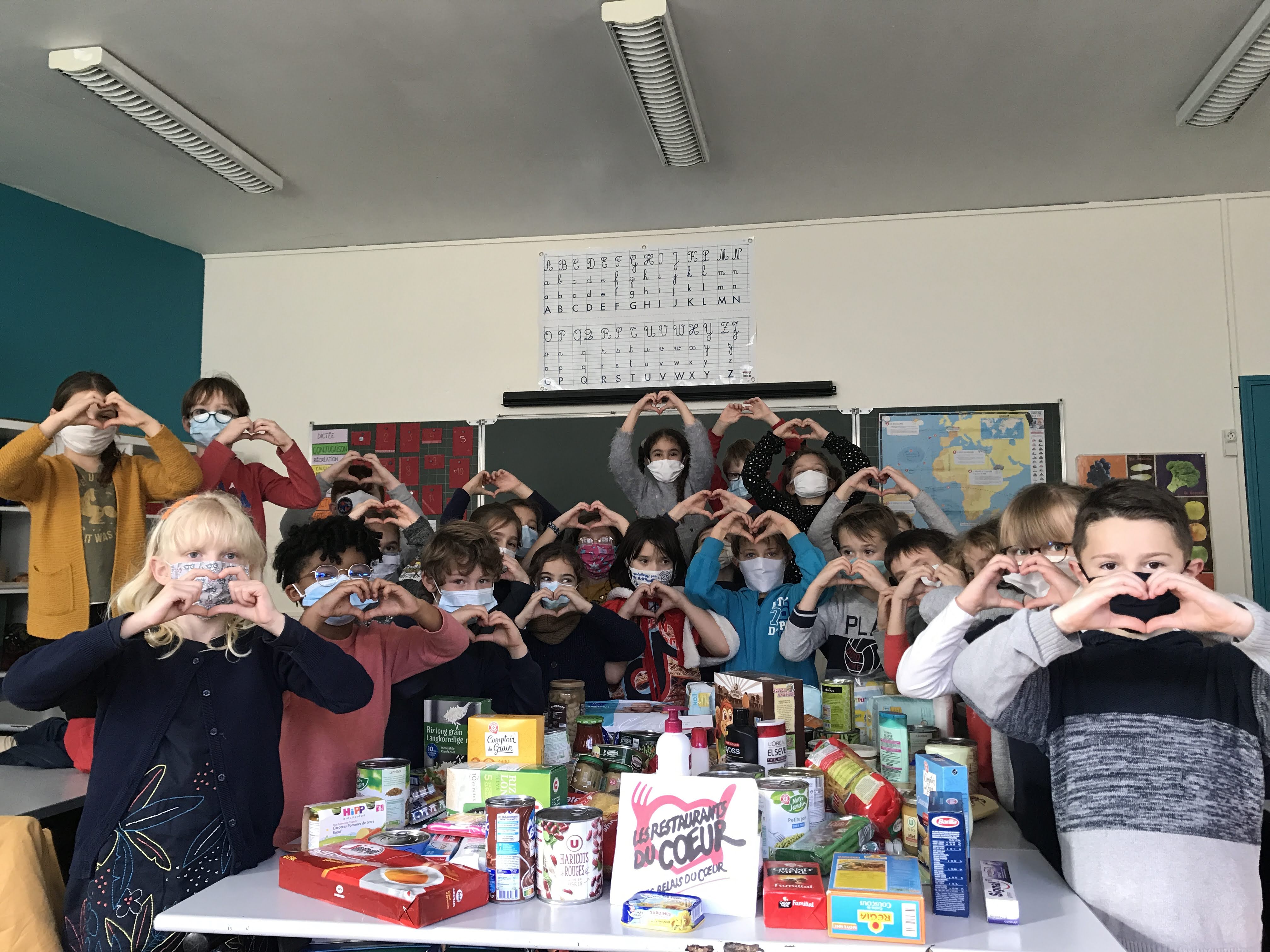 - Vendredi, le camion des “Restos” est venu récolter tous nos dons. Nous étions fiers et enthousiastes de faire la chaine, de la classe jusqu’au véhicule pour acheminer boites, paquets, flacons… Jusqu’au bout, nous avons été acteurs du partage, dans l’esprit de Noël. Que d’émotions!