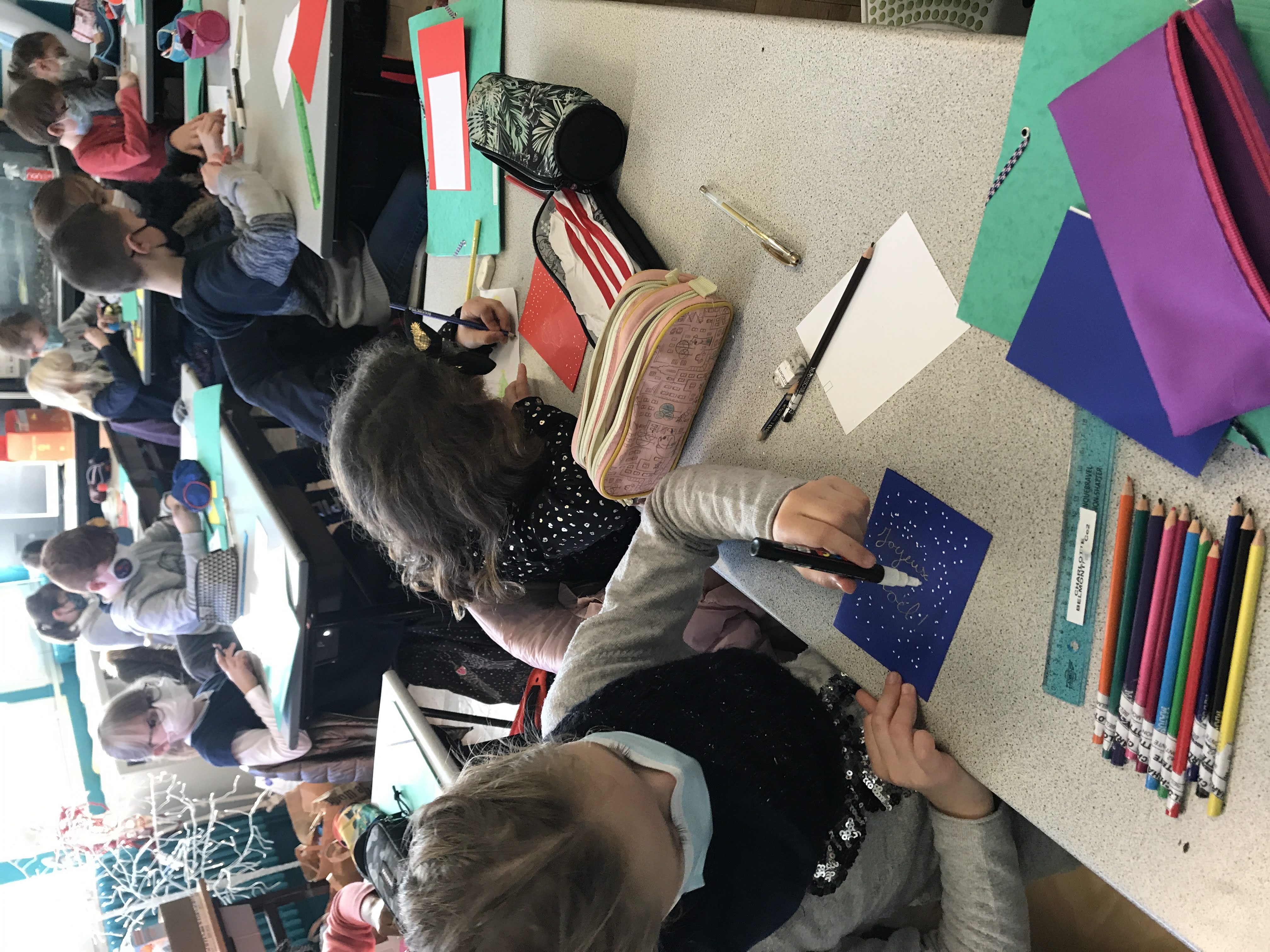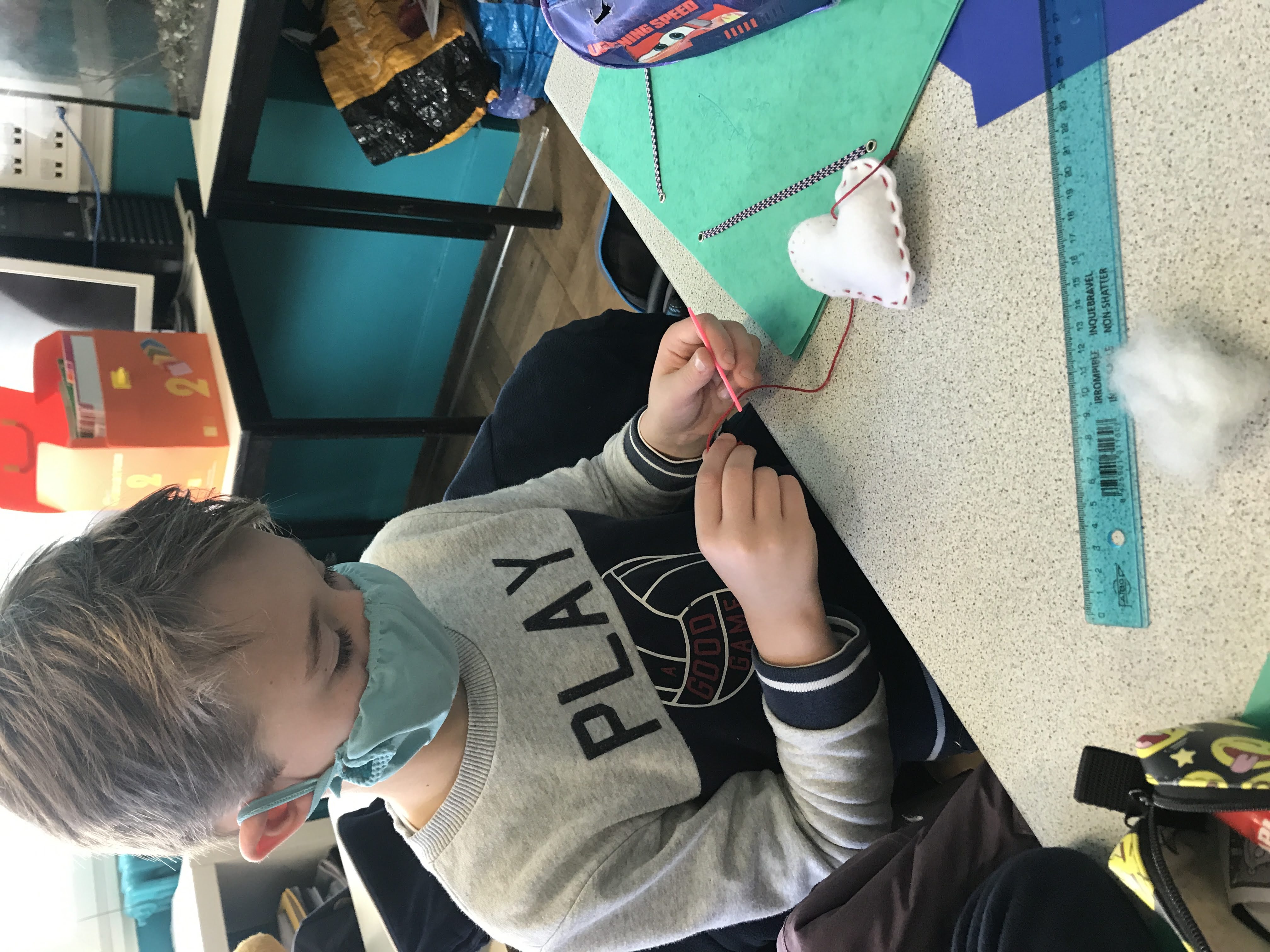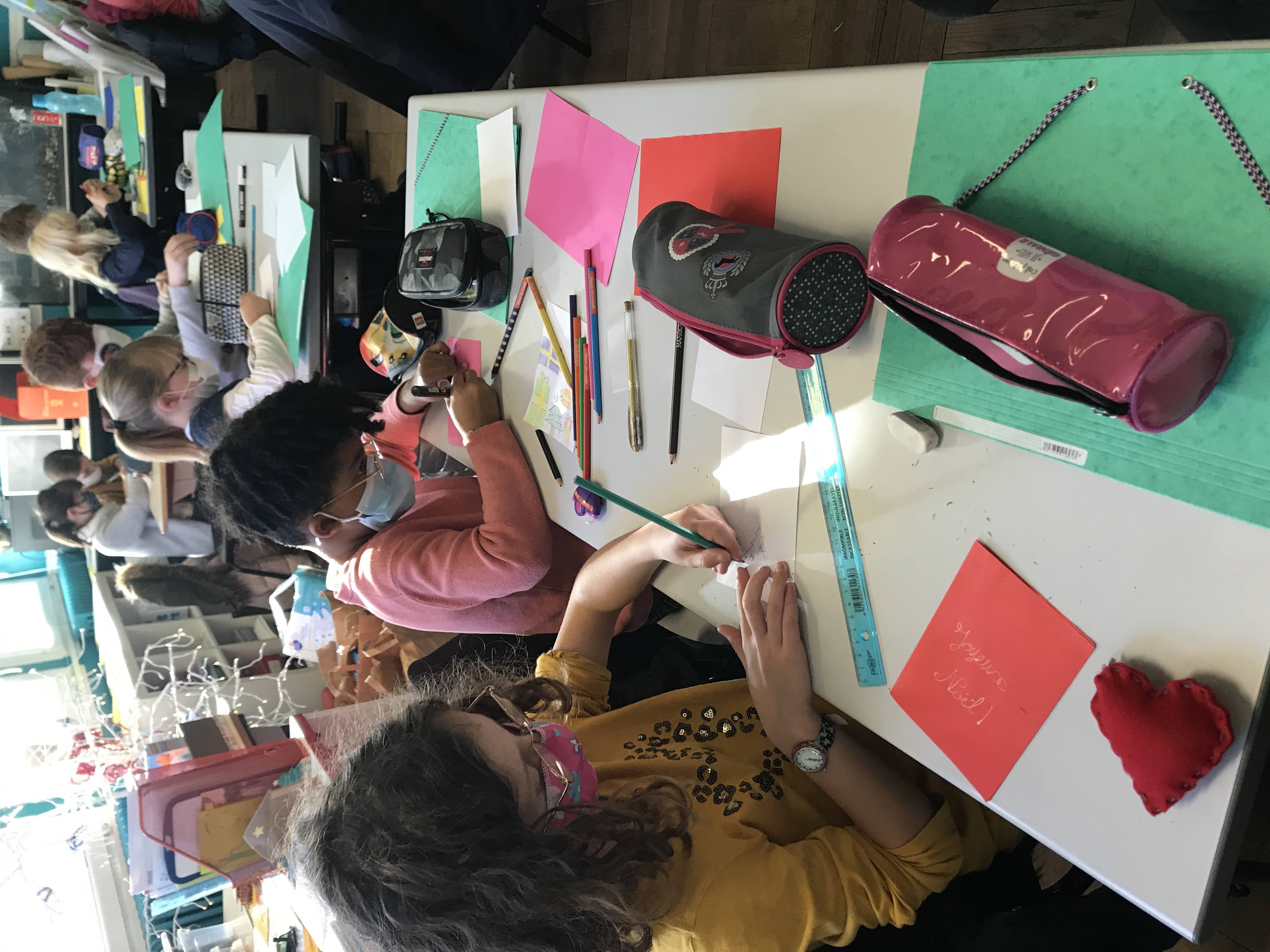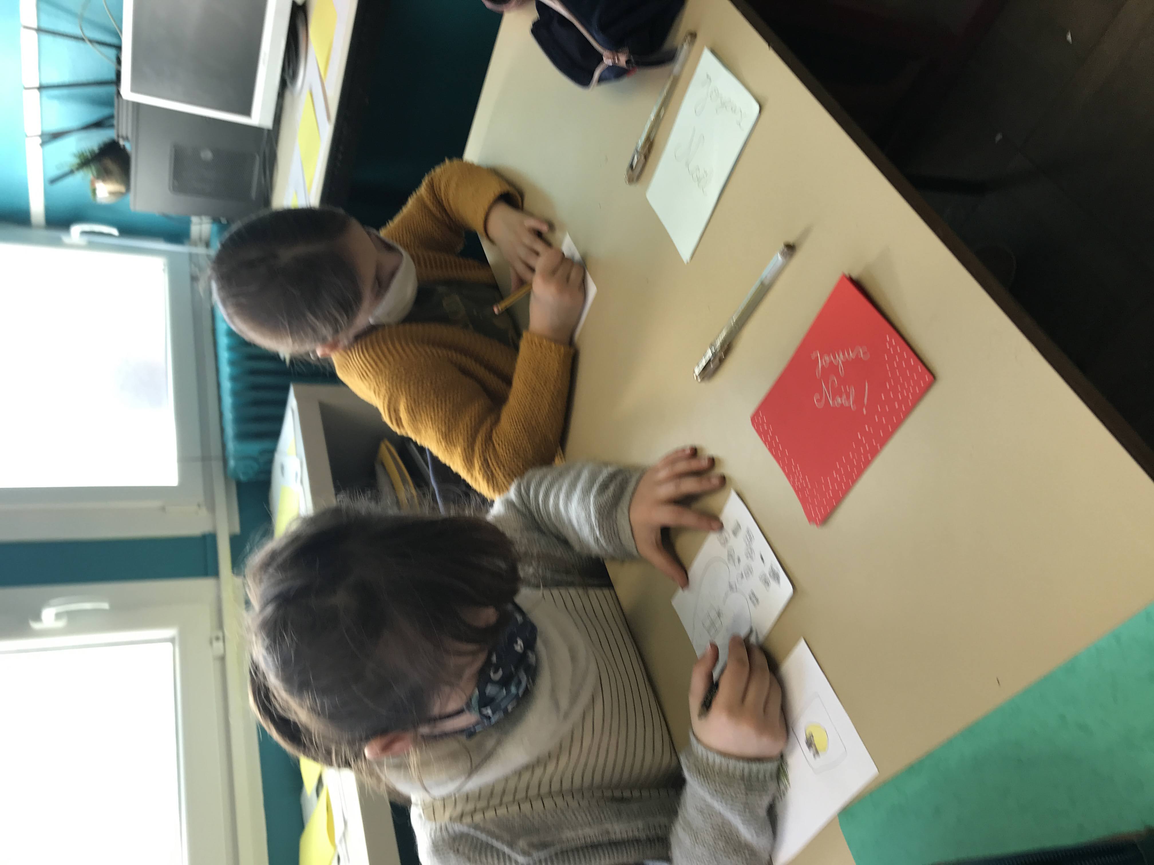 - Mardi, nous avons cousu et garni des coeurs en feutrine pour décorer notre maison à Noël, puis réalisé de belles cartes de voeux pour nos familles et pour les “Restos du coeur”. Nous y avons mis tout le nôtre… (le COEUR!)