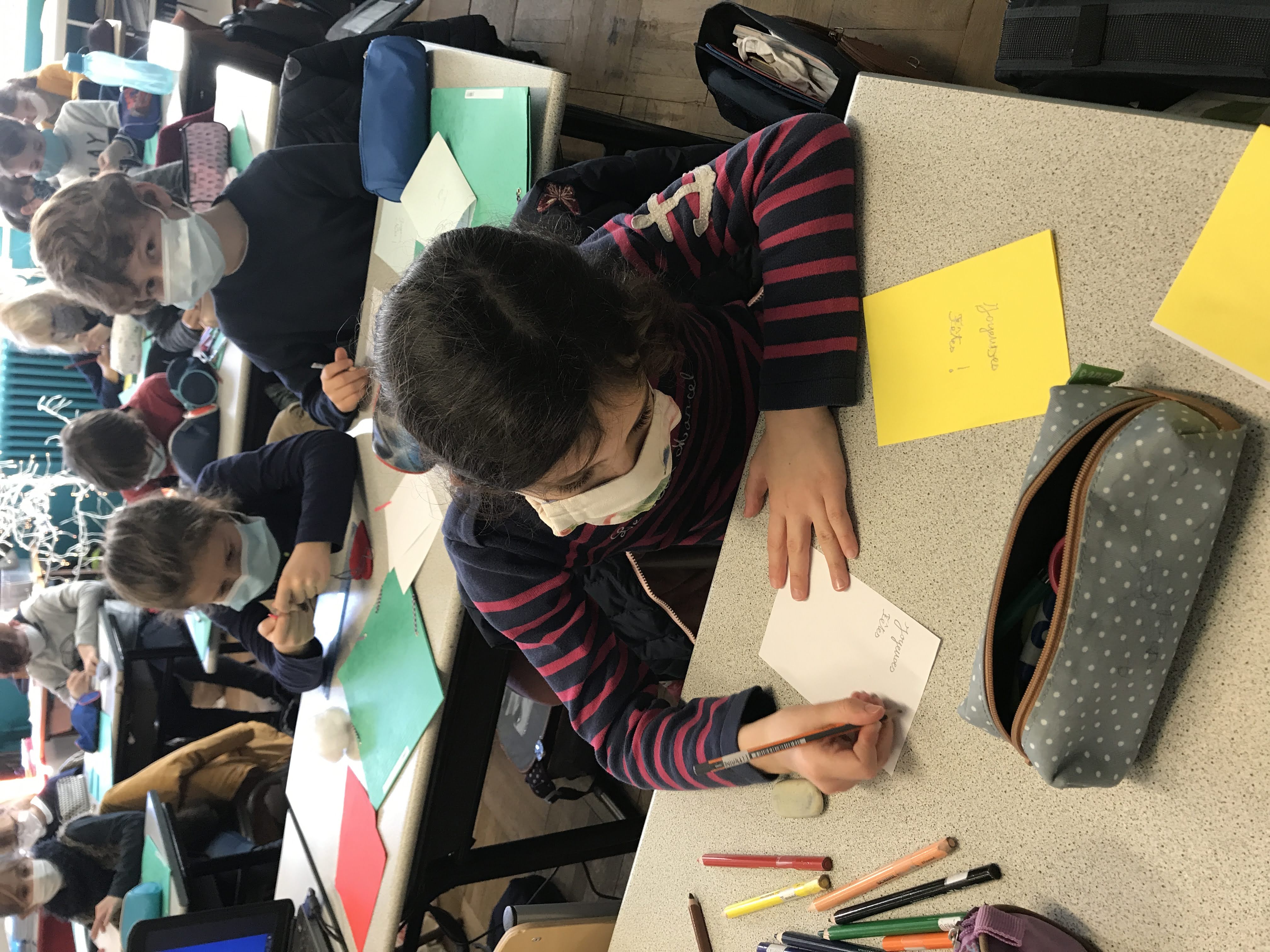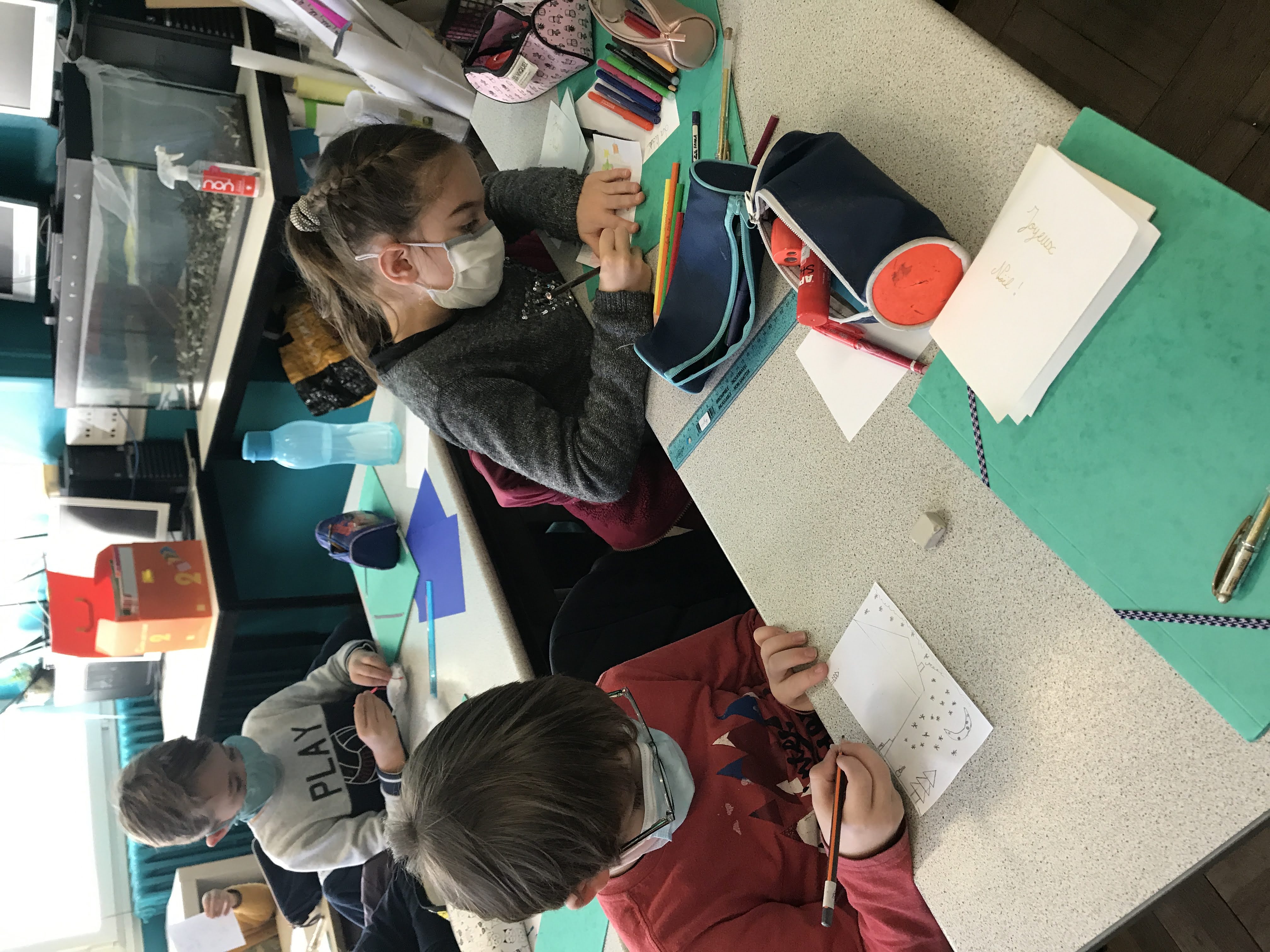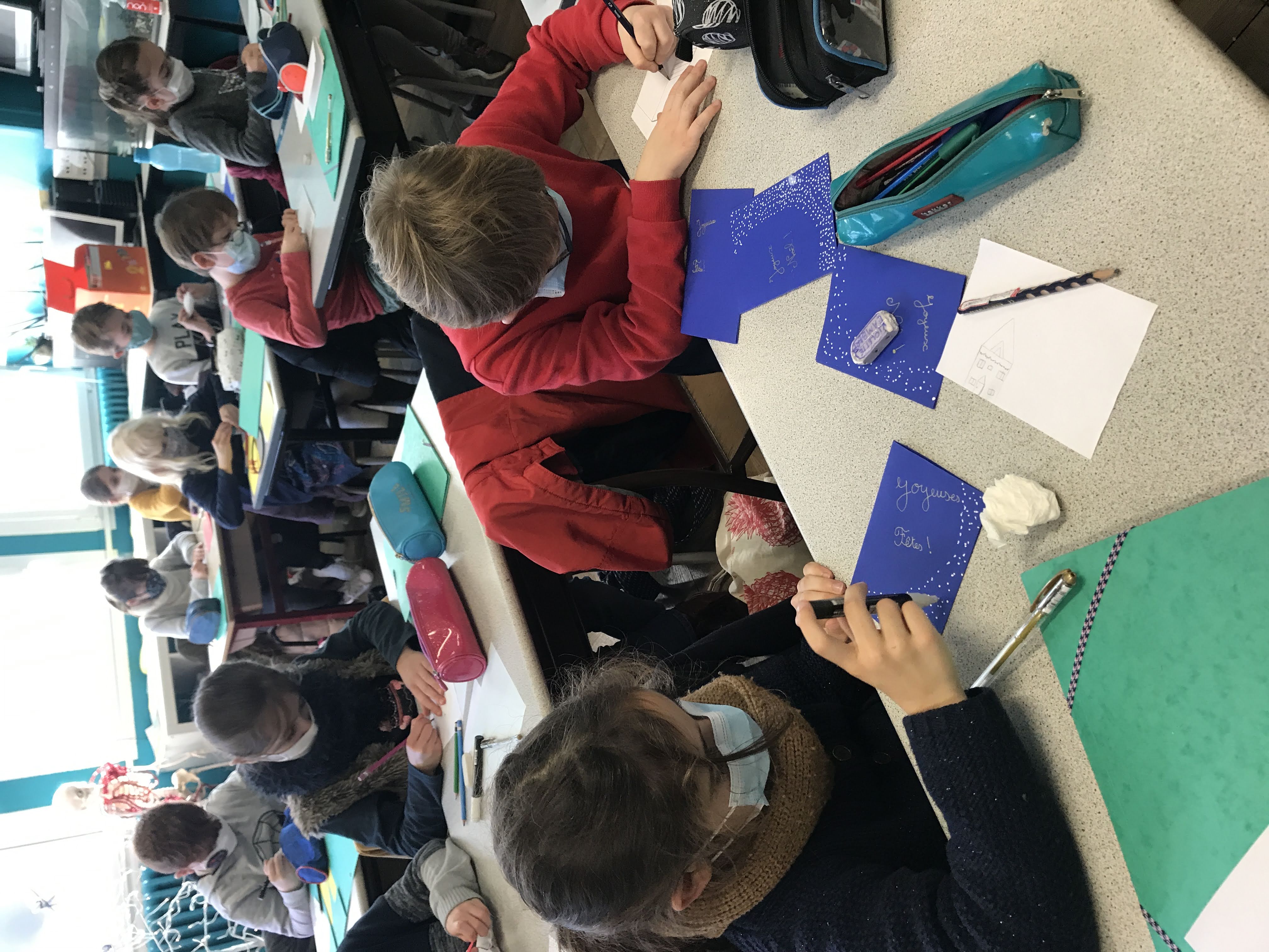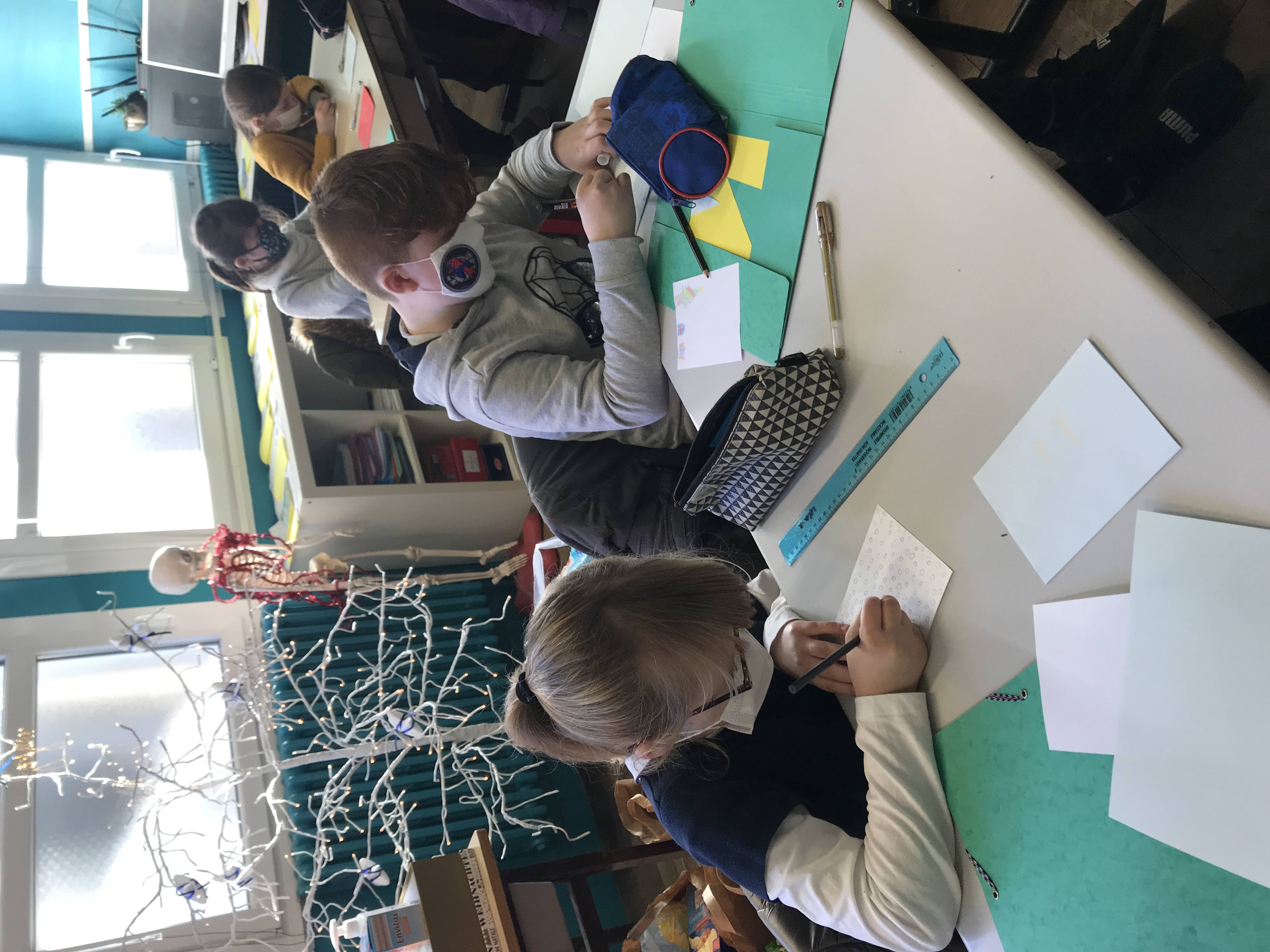 - Mardi, nous avons cousu et garni des coeurs en feutrine pour décorer notre maison à Noël, puis réalisé de belles cartes de voeux pour nos familles et pour les “Restos du coeur”. Nous y avons mis tout le nôtre… (le COEUR!)