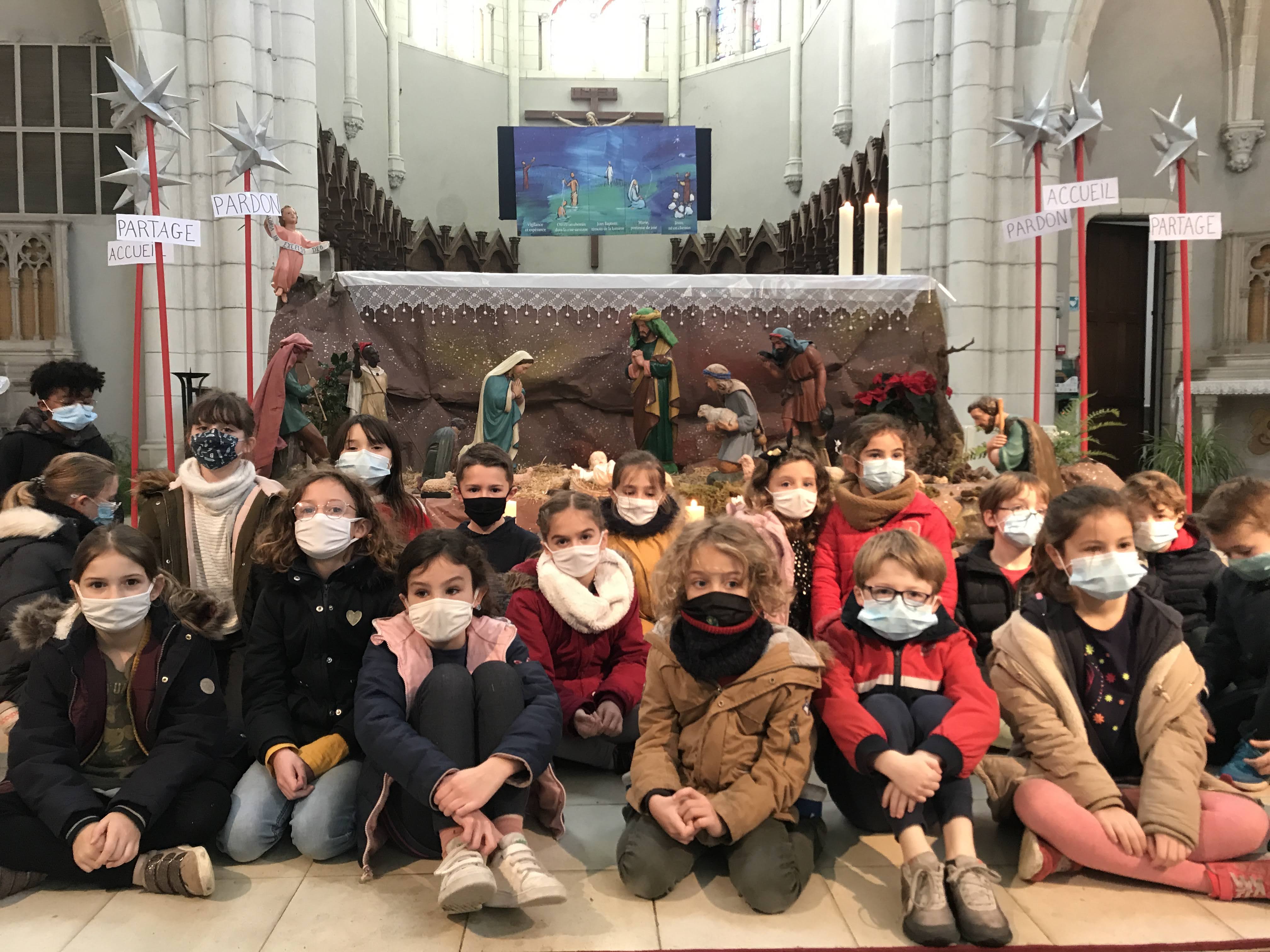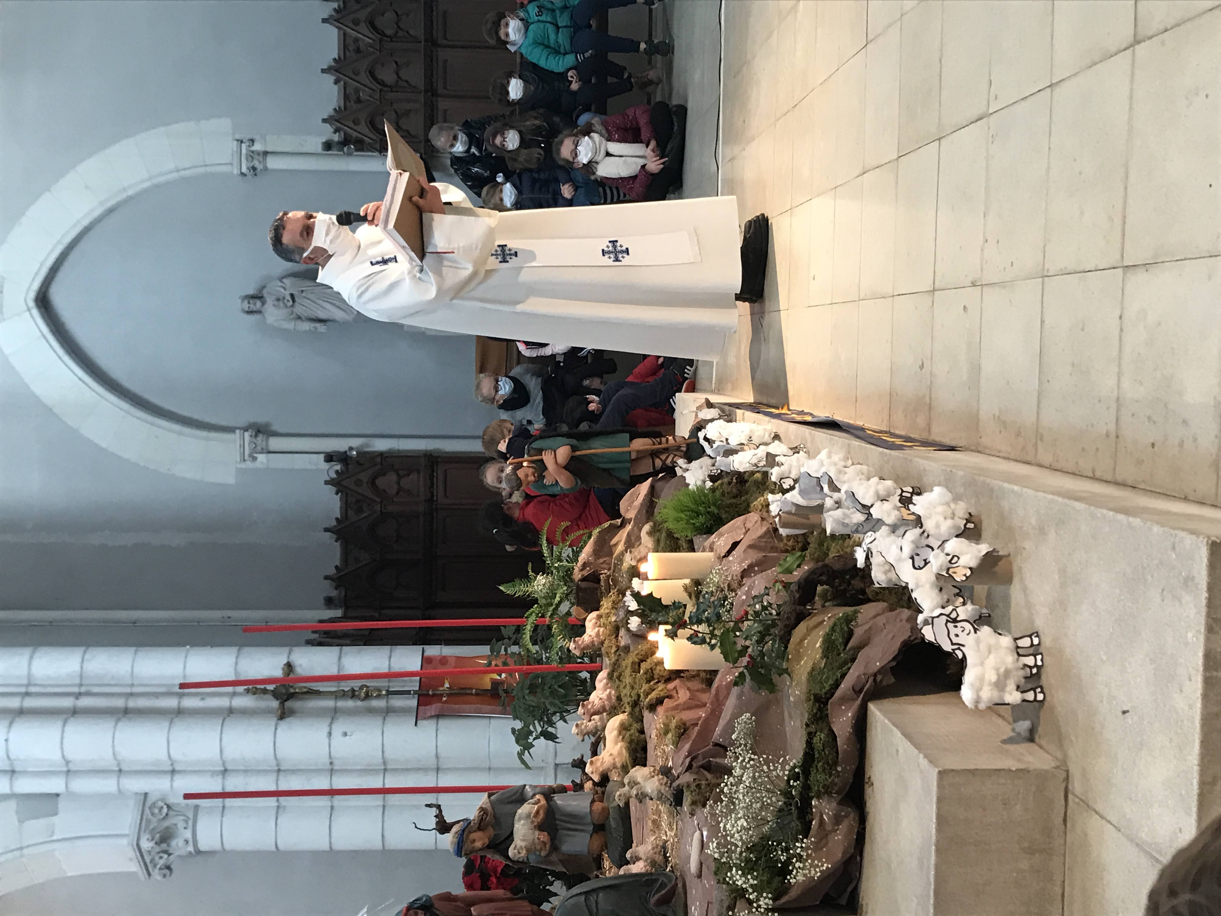 - Jeudi, nous sommes allés avec les CE1 et les CM à l’église St Pierre pour notre traditionnelle célébration de Noël. Nous étions assis dans le choeur, tout près de la crèche et avons pu écouter l’histoire de la naissance de Jésus et chanter les chants répétés avec la maitresse en classe. C’était très beau de partager ce moment, tous ensemble.