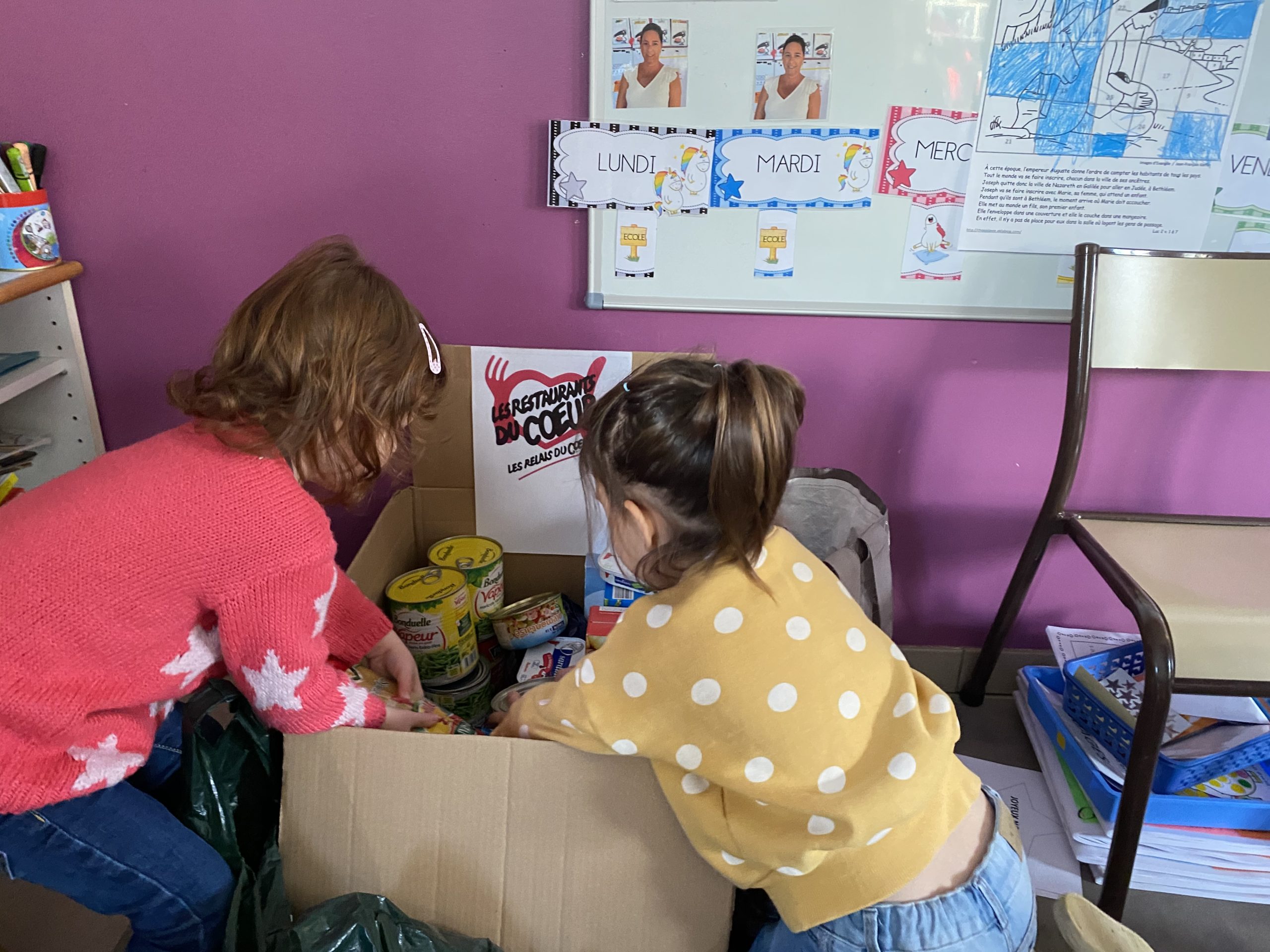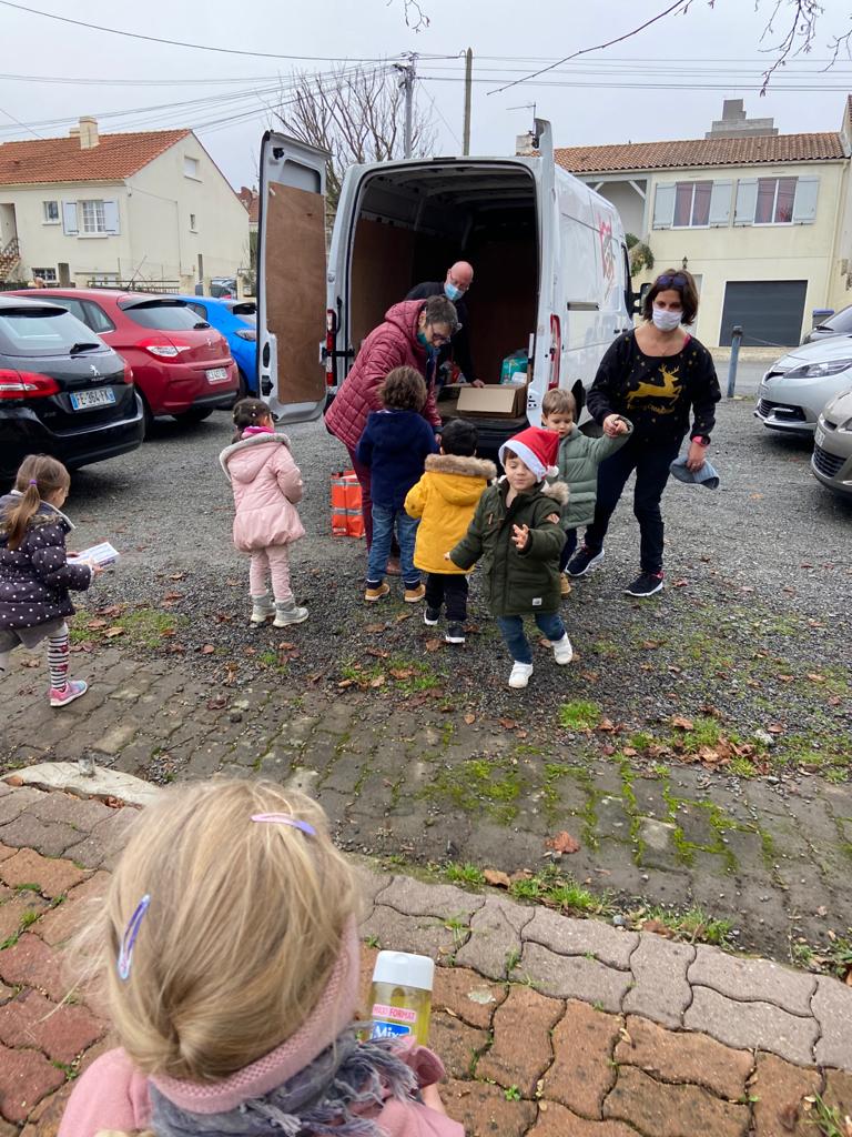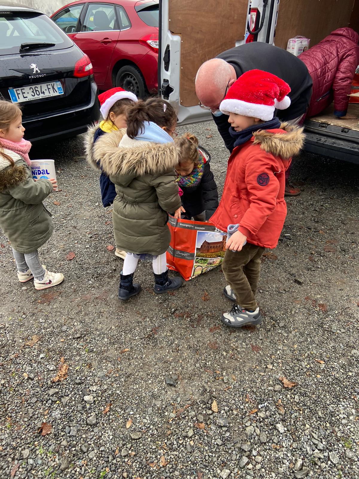 Un immense merci pour votre générosité, 515 kg de dons ont été récoltés. La venue des bénévoles des restos du cœur a été l’occasion d’une chaîne humaine, d’un relai où chaque enfant a participé au chargement .