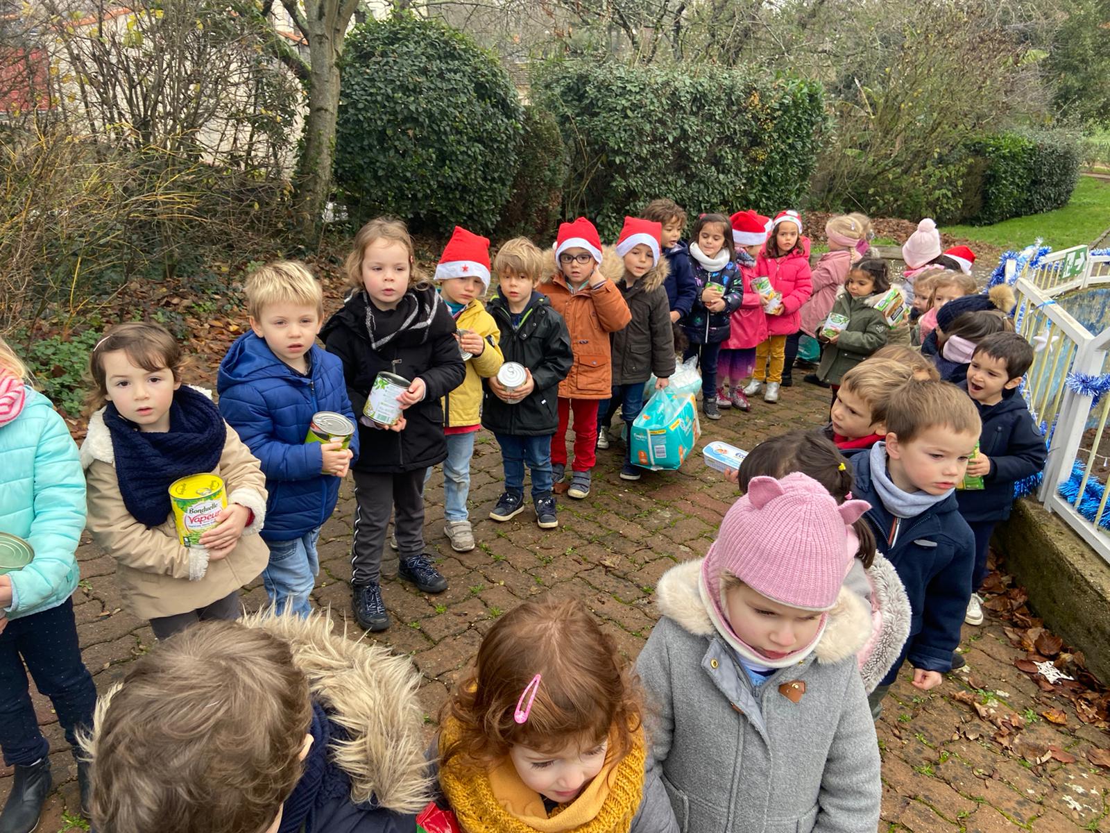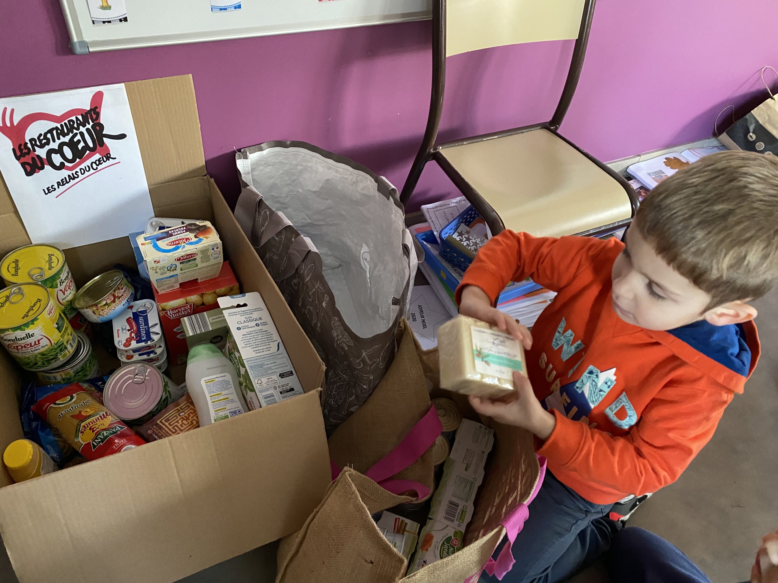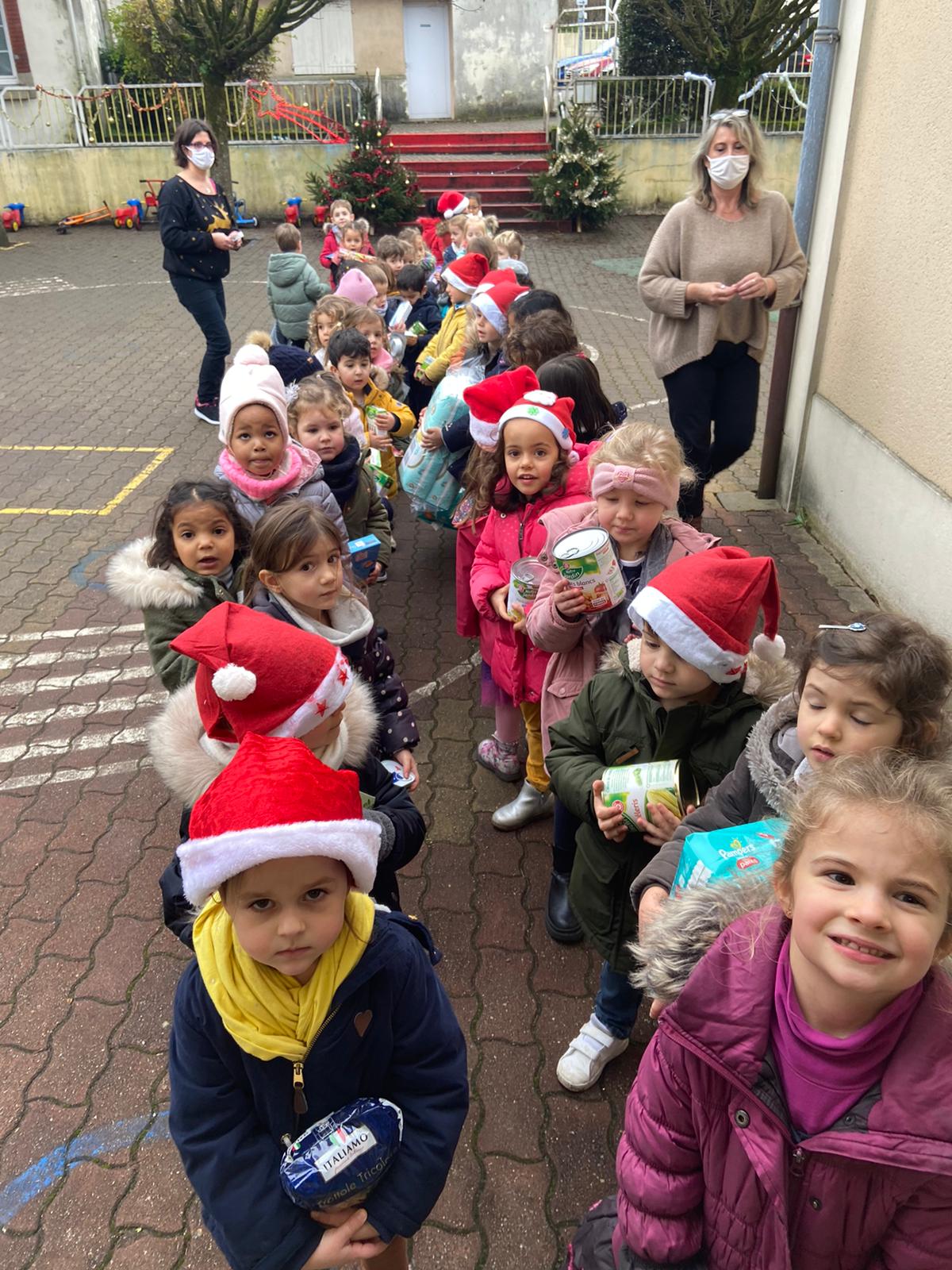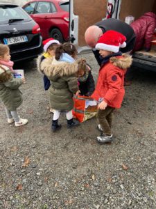 En classe nous avons expliqué qu’à Noël nous recevions beaucoup, nous avons tout ce qu’il nous faut à la maison. Certaines personnes n’ont pas cette chance aussi nous avons lancé une collecte et toute l’école a participé !