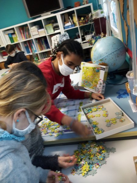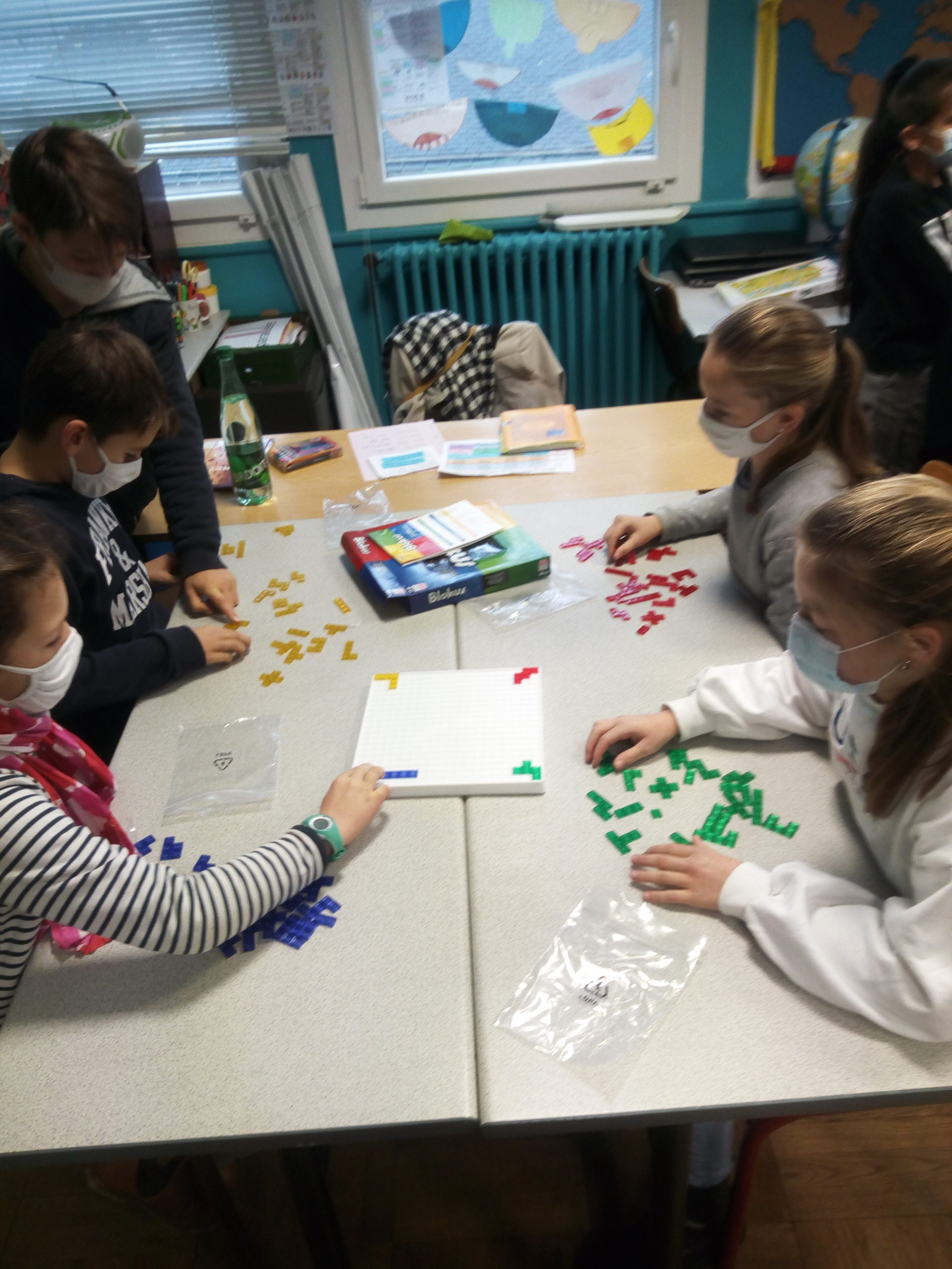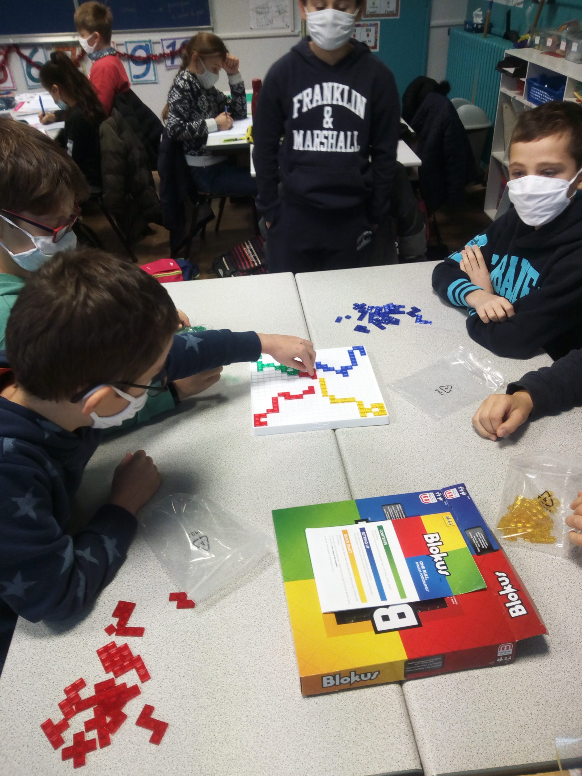 Le 4 janvier, au retour des vacances, nous avons eu le plaisir de recevoir nous aussi des surprises! Deux paquets contenant des jeux pour la classe que nous nous sommes empressés de tester ( après avoir terminé notre travail d’analyse grammaticale , bien évidemment!) ; un puzzle et un jeu de stratégie (blokus).