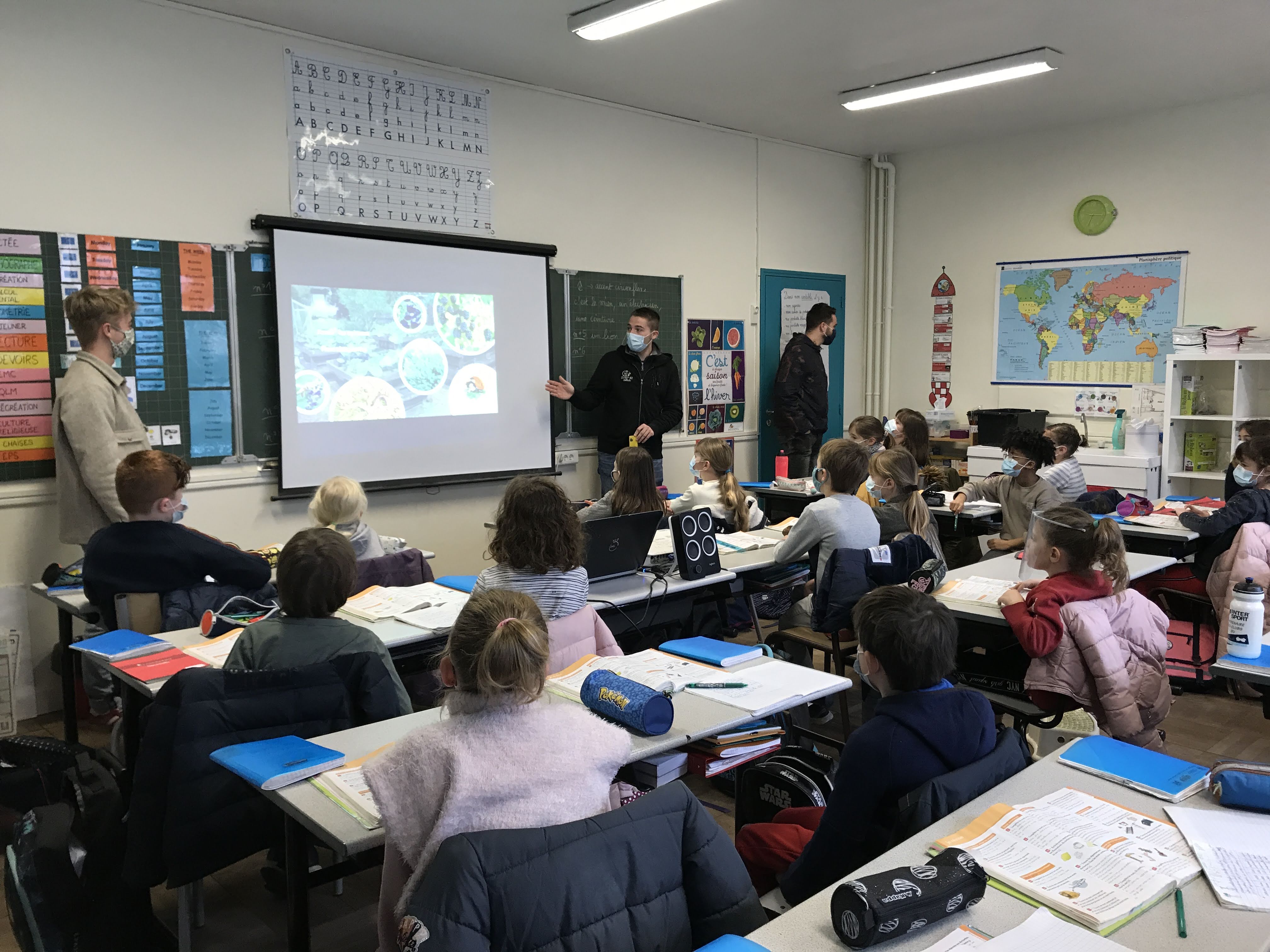 Ils étaient déjà passés la veille pour présenter dans chaque classe les plans du potager en vue aérienne qu’ils avaient réalisés pour nous, ainsi que des idées de plants et semis que nous pourrions réaliser pour donner vie à notre jardin. Ils avaient également expliqué aux enfants la nécessité de laisser un espace de jachère fleurie pour attirer les insectes pollinisateurs.