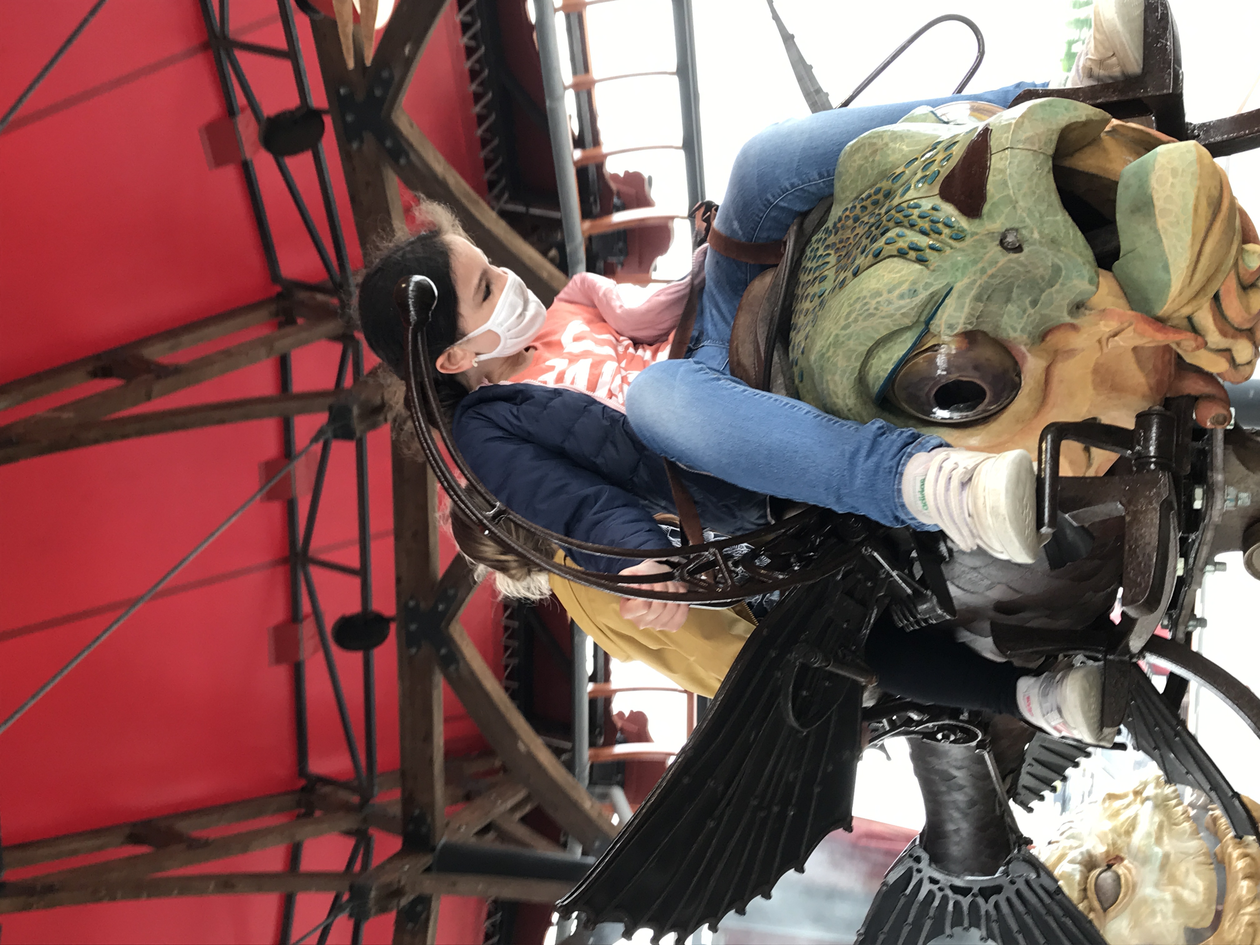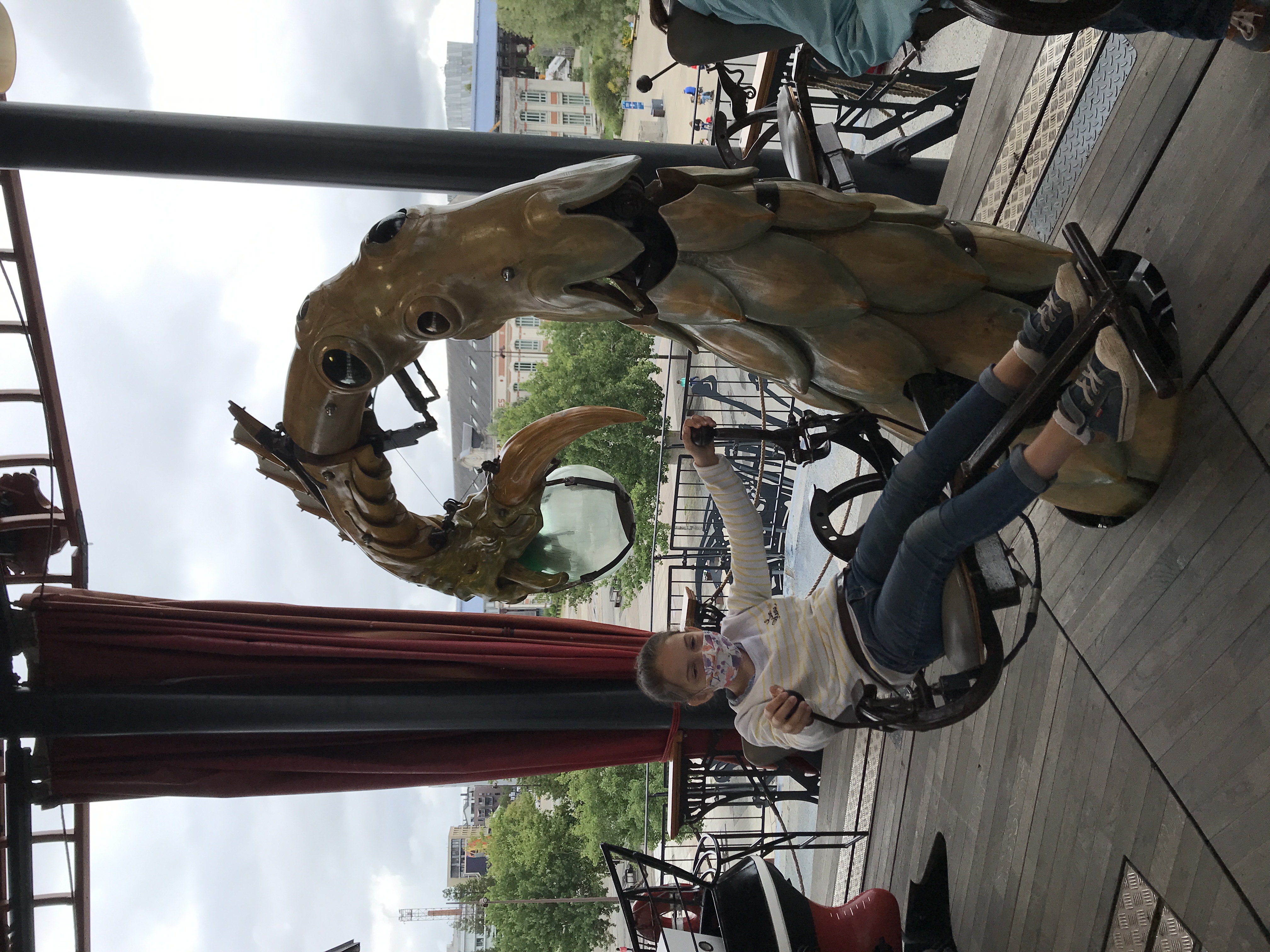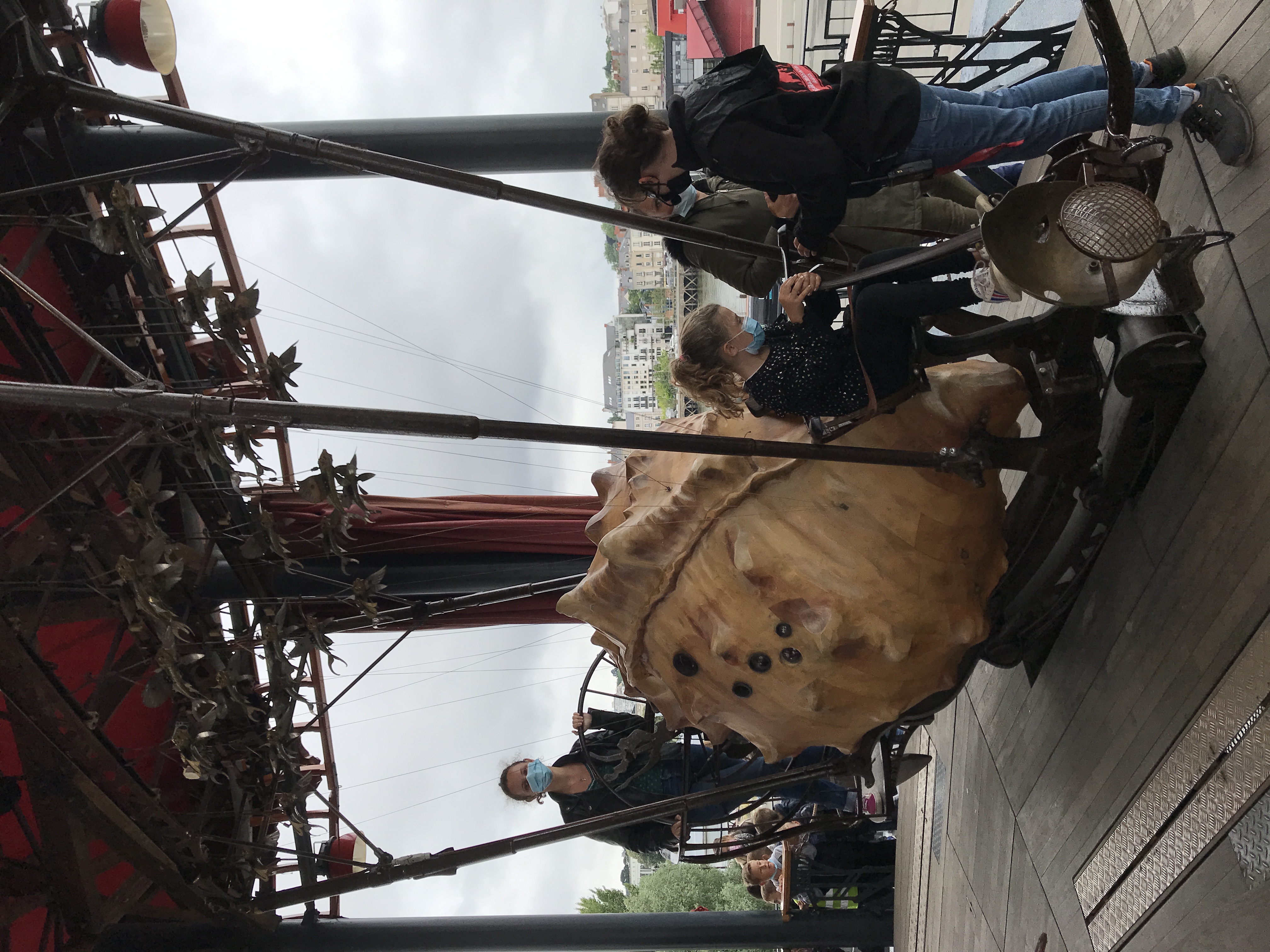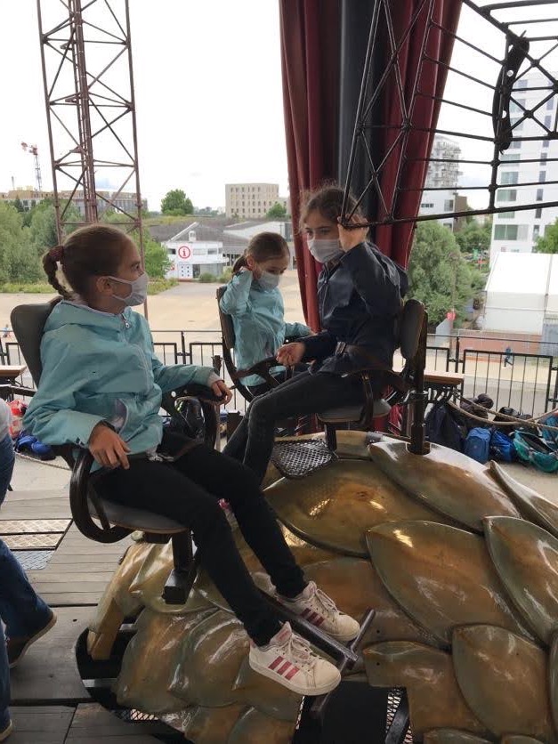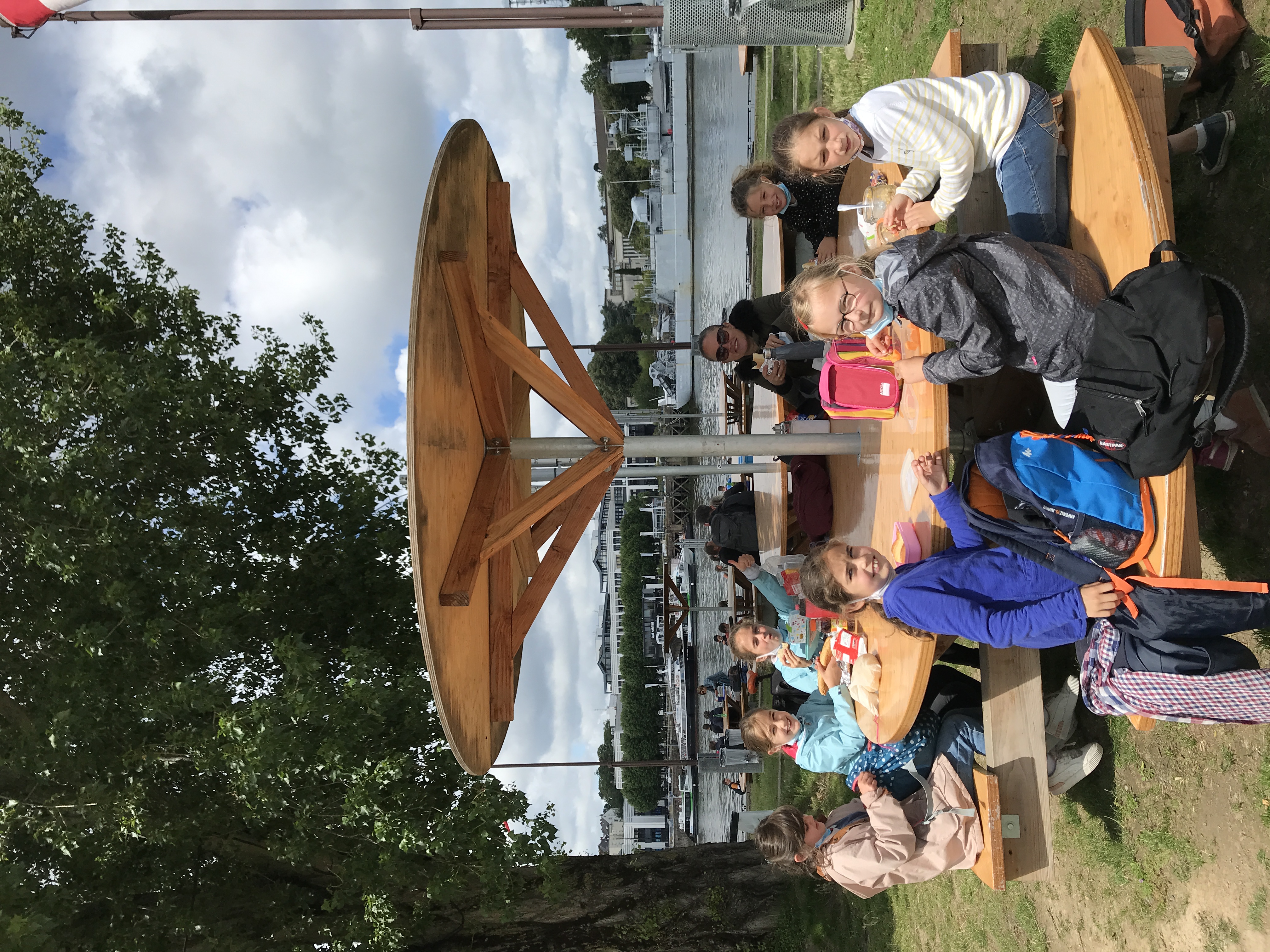 Quelle belle journée nous avons passée mardi 29 juin pour notre sortie scolaire! Le soleil s’était invité et nous a accompagnés du début à la fin. Nous avons emprunté toutes sortes de transports en commun: bus, tram et navibus. Après avoir salué le majestueux éléphant, nous sommes partis à notre rendez-vous de 10h au Carrousel des Mondes Marins pour une visite guidée, suivie d’un tour dont petits et grands se sont délectés! Puis, ce fut au tour de la galerie des Machines où Tiphaine, Amandine et Sarah ont eu la chance d’en faire fonctionner quelques-unes. Après un passage dans la serre tropicale et un tour très instructif aux ateliers de fabrication, nous sommes partis dévorer notre pique-nique sur les bords de Loire et sauter sur les trampolines de la « Lune »! Sous la Titan grise, nous avons ensuite emprunté la nouvelle ligne de Navibus vers Chantenay. Et c’est le nez au vent que nous avons fait route jusqu’au LAB, puis suivi la ligne verte jusqu’au Jardin Extraordinaire. Nous avons encore pu jouer un bon moment avant de naviguer à nouveau sur la Loire et prendre le bus à Trentemoult jusqu’à l’école, enchantés par cette magnifique journée!