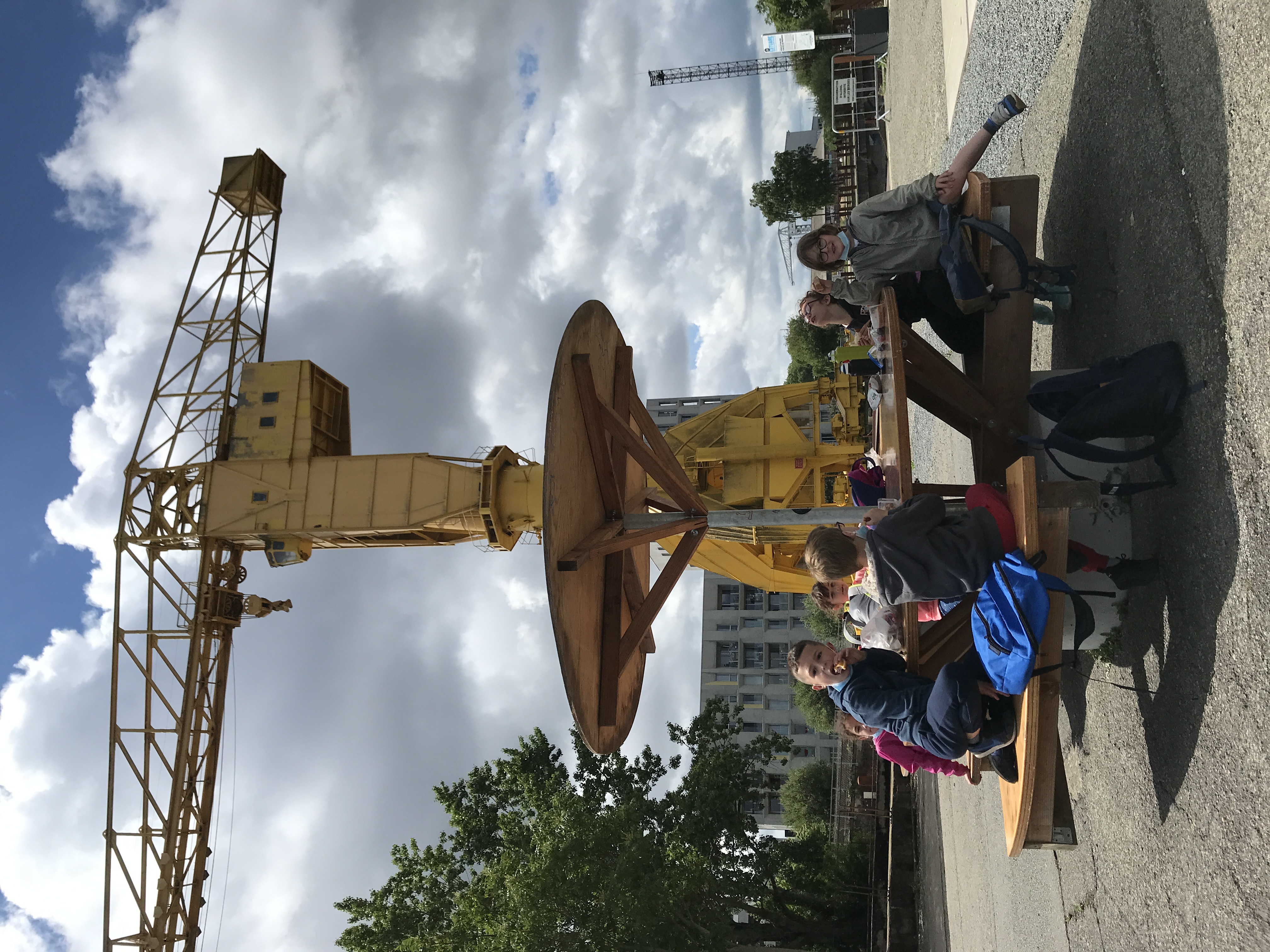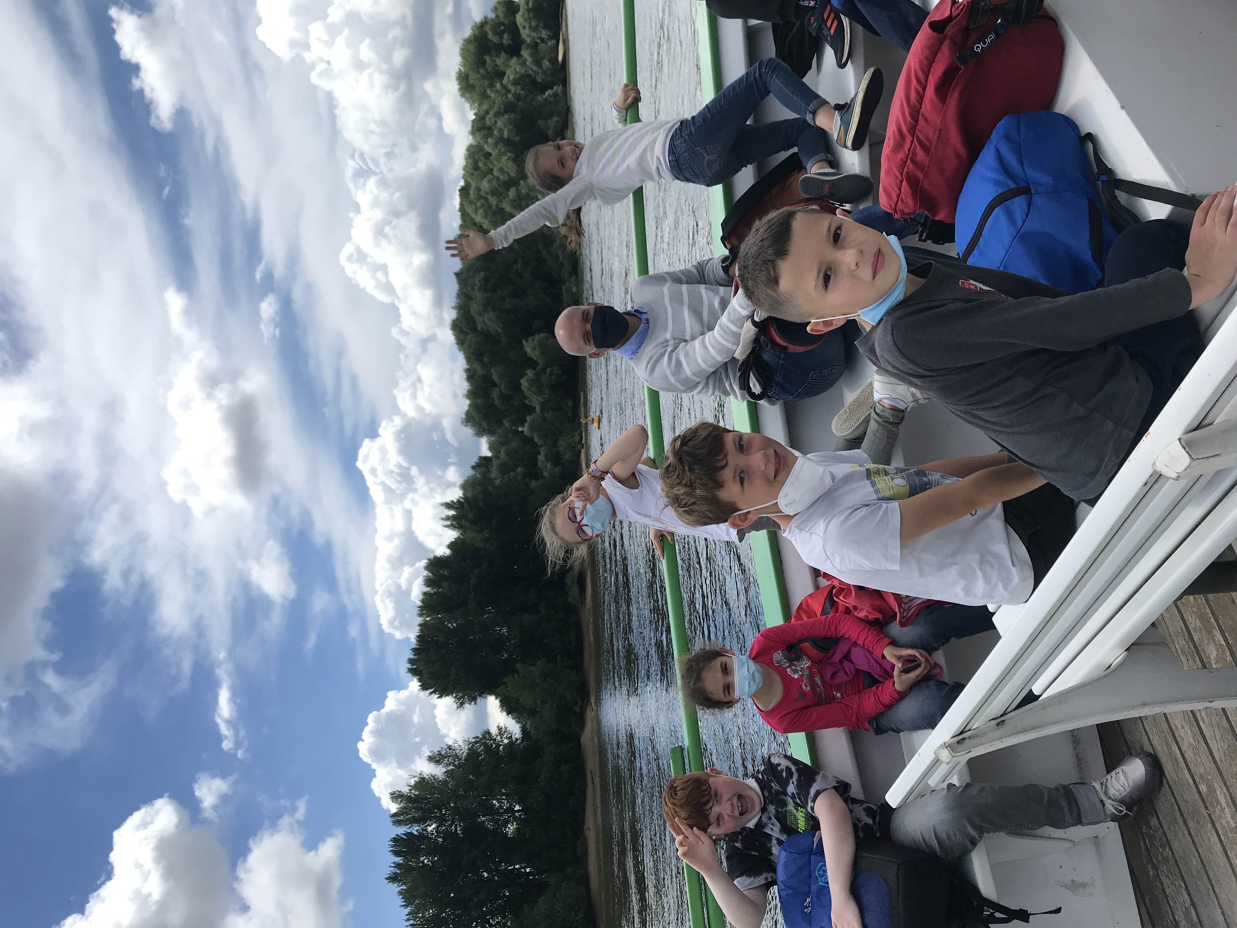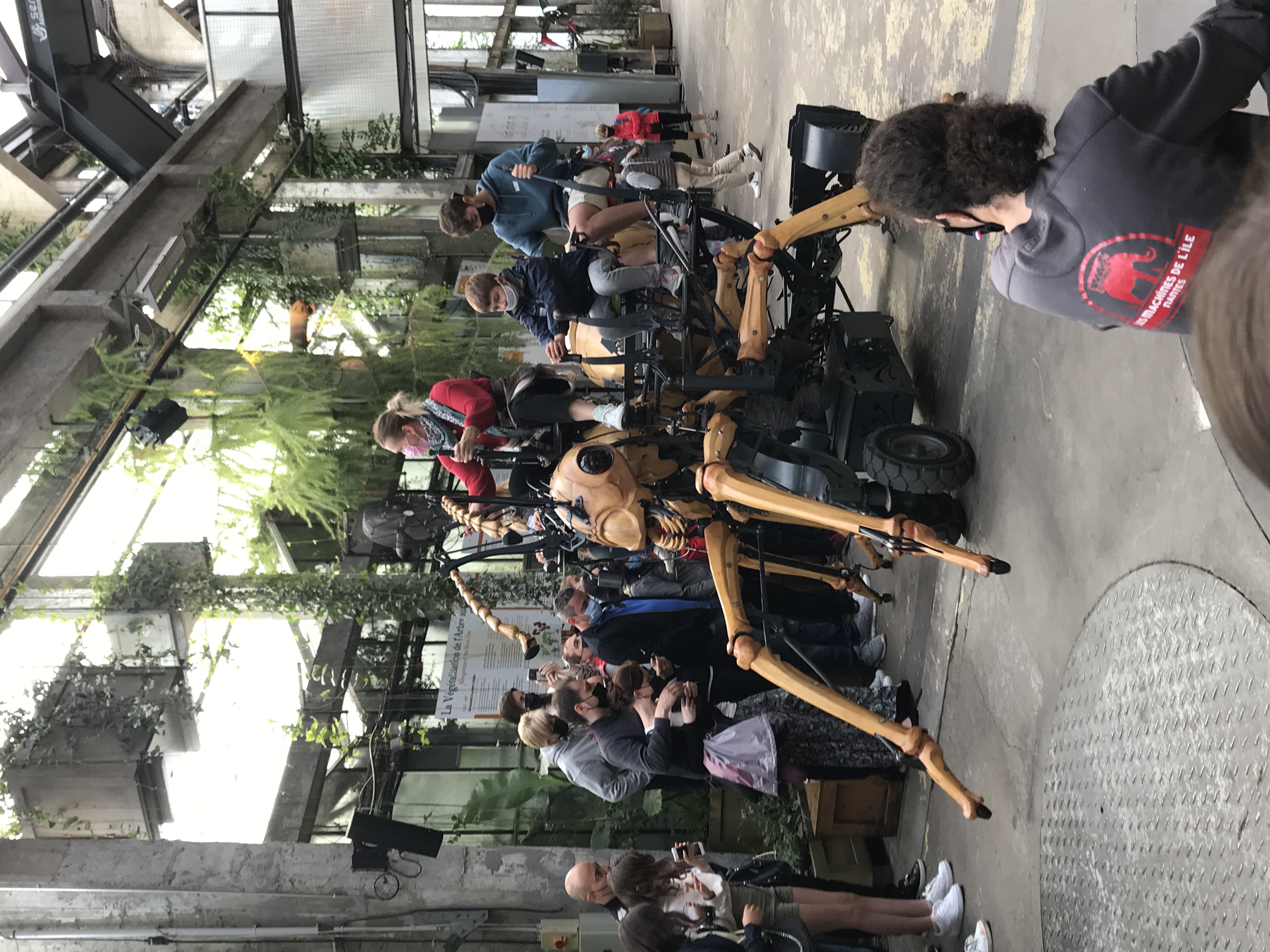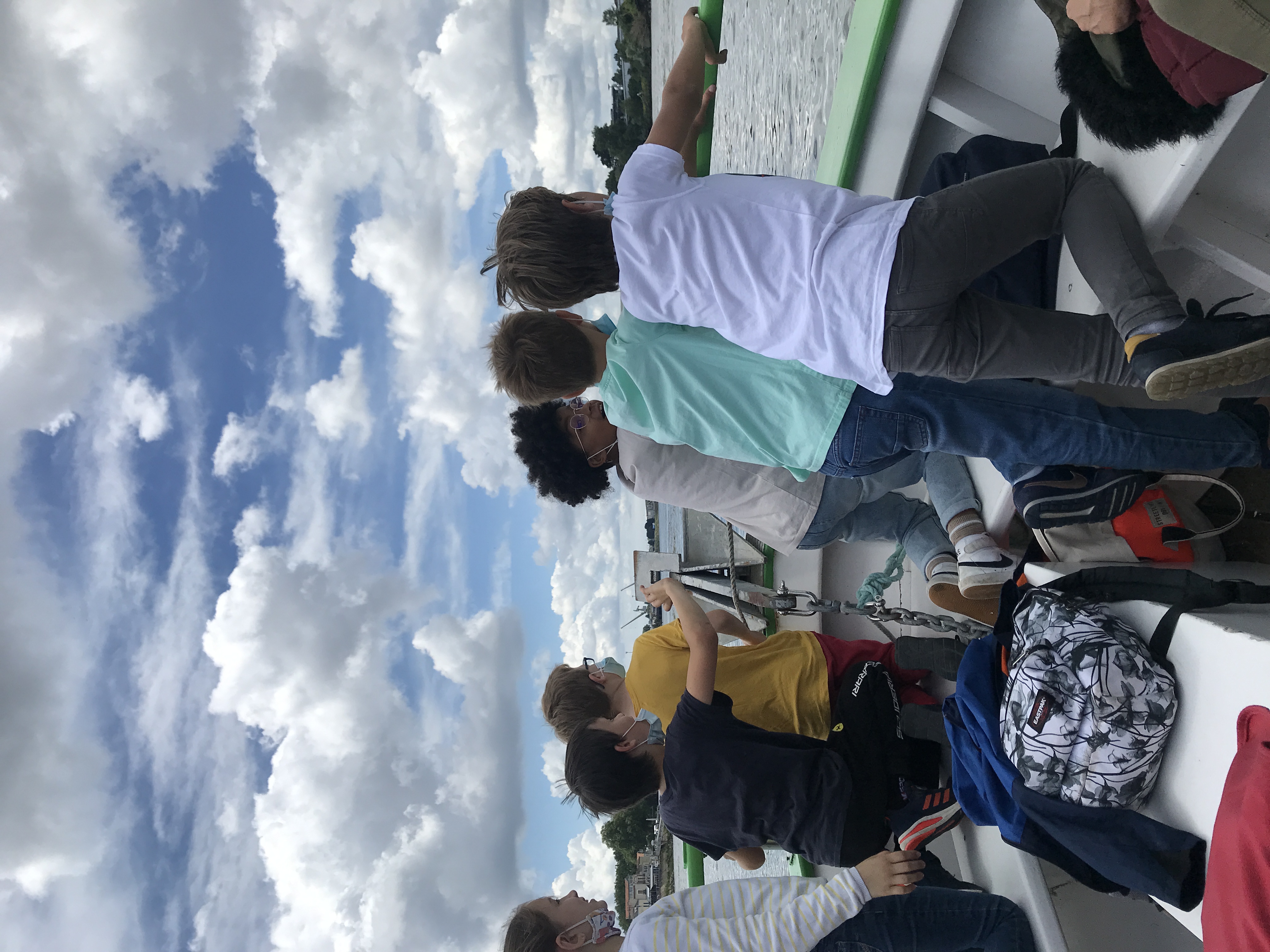 Quelle belle journée nous avons passée mardi 29 juin pour notre sortie scolaire! Le soleil s’était invité et nous a accompagnés du début à la fin. Nous avons emprunté toutes sortes de transports en commun: bus, tram et navibus. Après avoir salué le majestueux éléphant, nous sommes partis à notre rendez-vous de 10h au Carrousel des Mondes Marins pour une visite guidée, suivie d’un tour dont petits et grands se sont délectés! Puis, ce fut au tour de la galerie des Machines où Tiphaine, Amandine et Sarah ont eu la chance d’en faire fonctionner quelques-unes. Après un passage dans la serre tropicale et un tour très instructif aux ateliers de fabrication, nous sommes partis dévorer notre pique-nique sur les bords de Loire et sauter sur les trampolines de la « Lune »! Sous la Titan grise, nous avons ensuite emprunté la nouvelle ligne de Navibus vers Chantenay. Et c’est le nez au vent que nous avons fait route jusqu’au LAB, puis suivi la ligne verte jusqu’au Jardin Extraordinaire. Nous avons encore pu jouer un bon moment avant de naviguer à nouveau sur la Loire et prendre le bus à Trentemoult jusqu’à l’école, enchantés par cette magnifique journée!