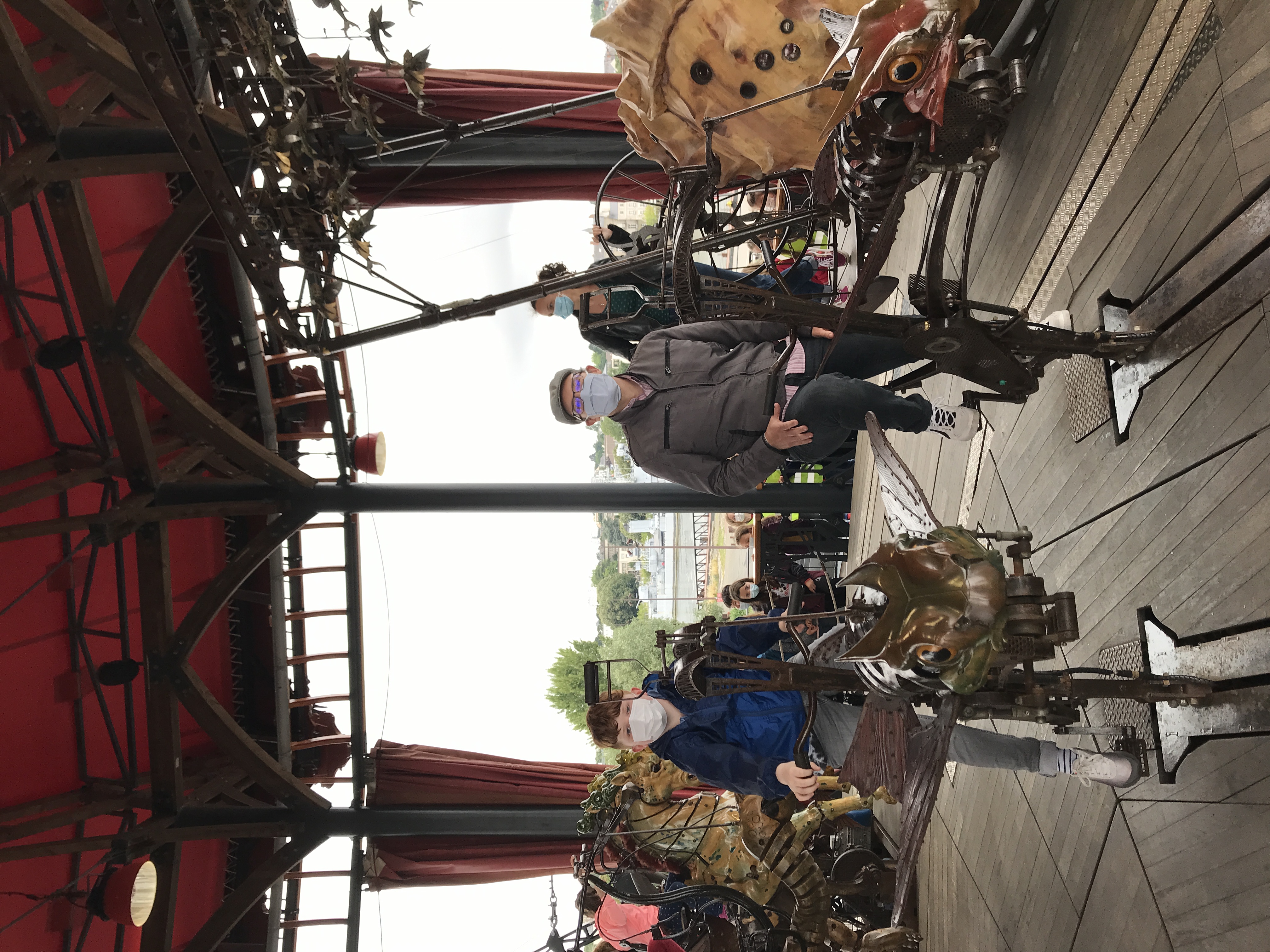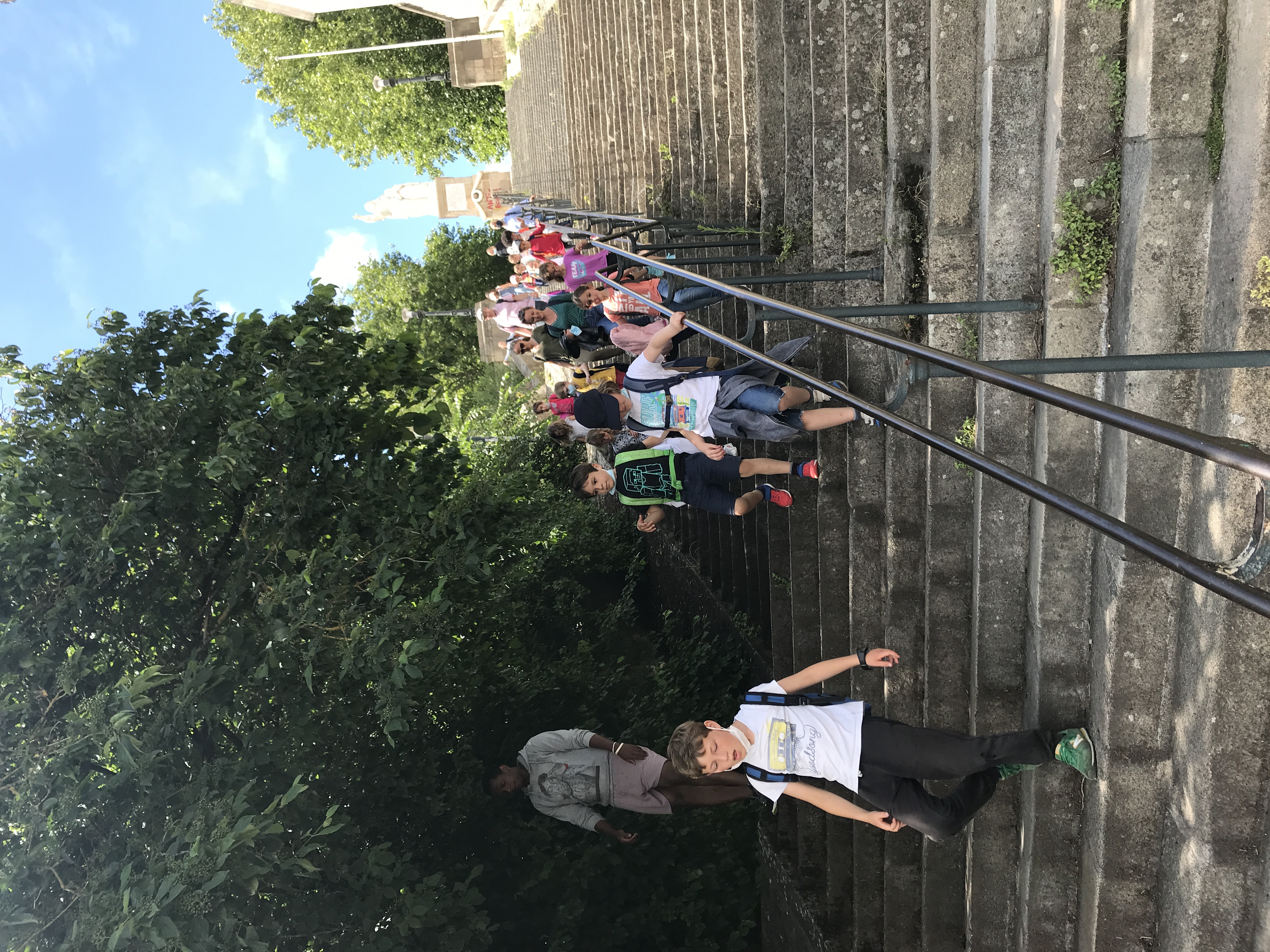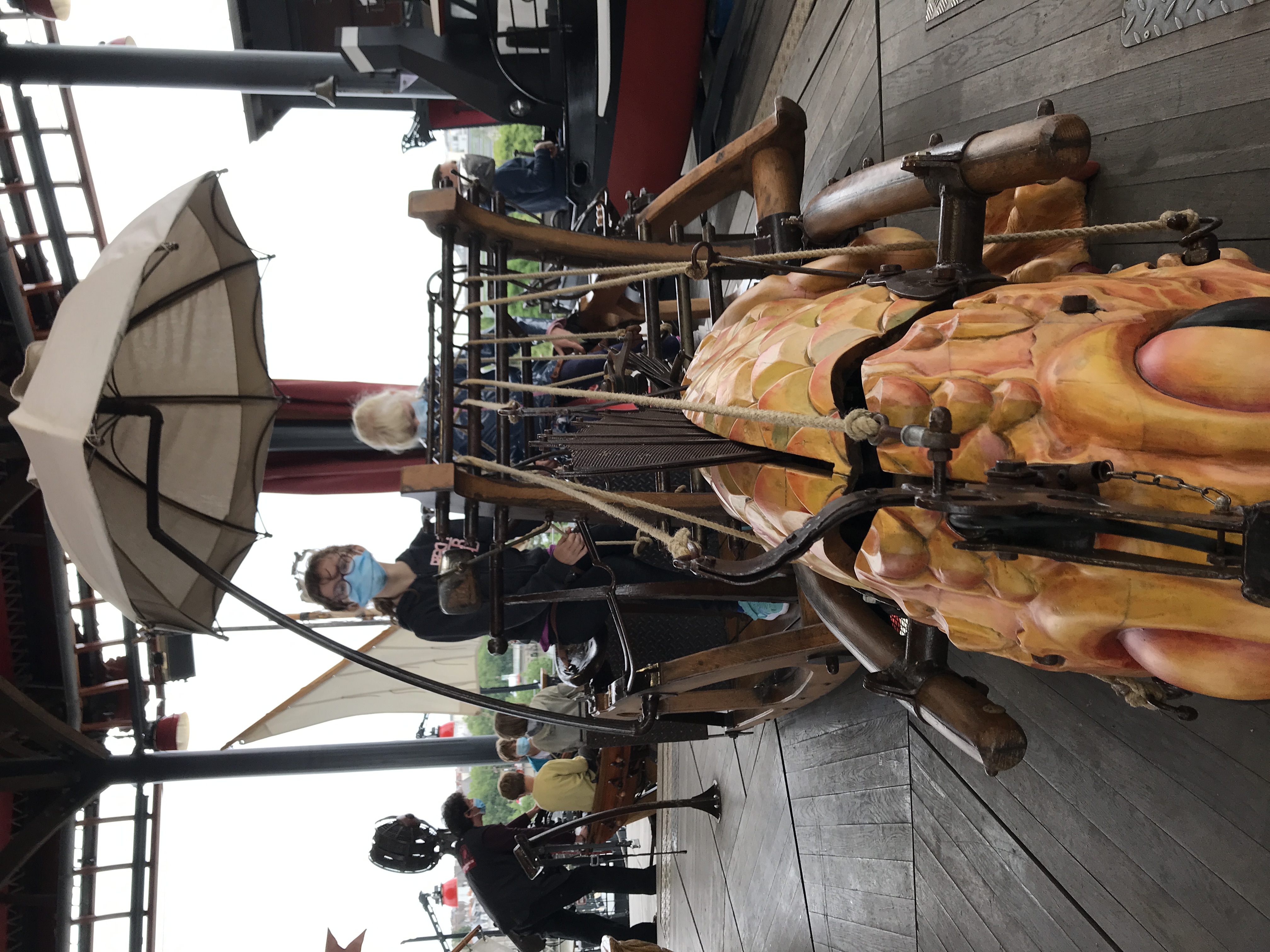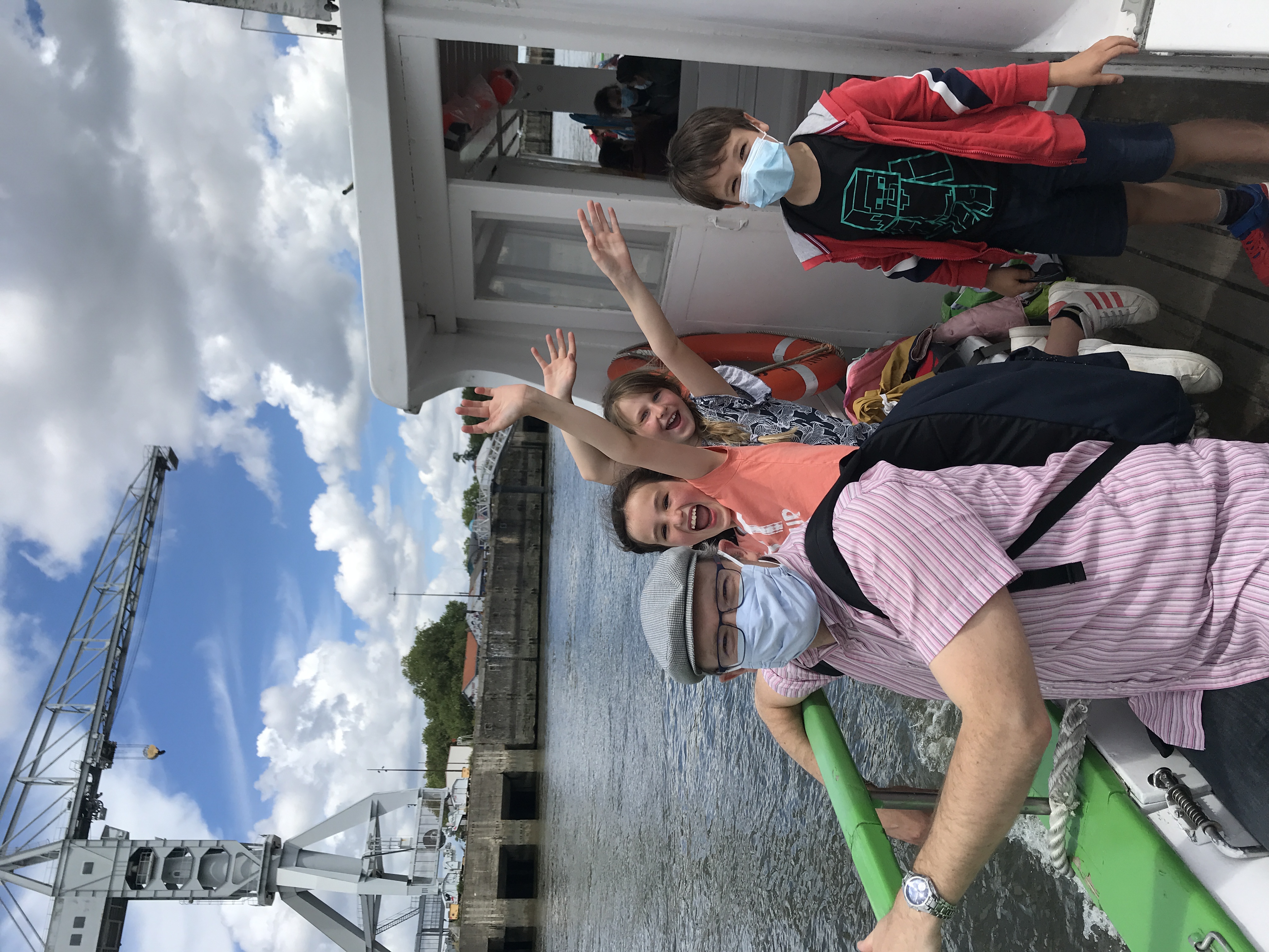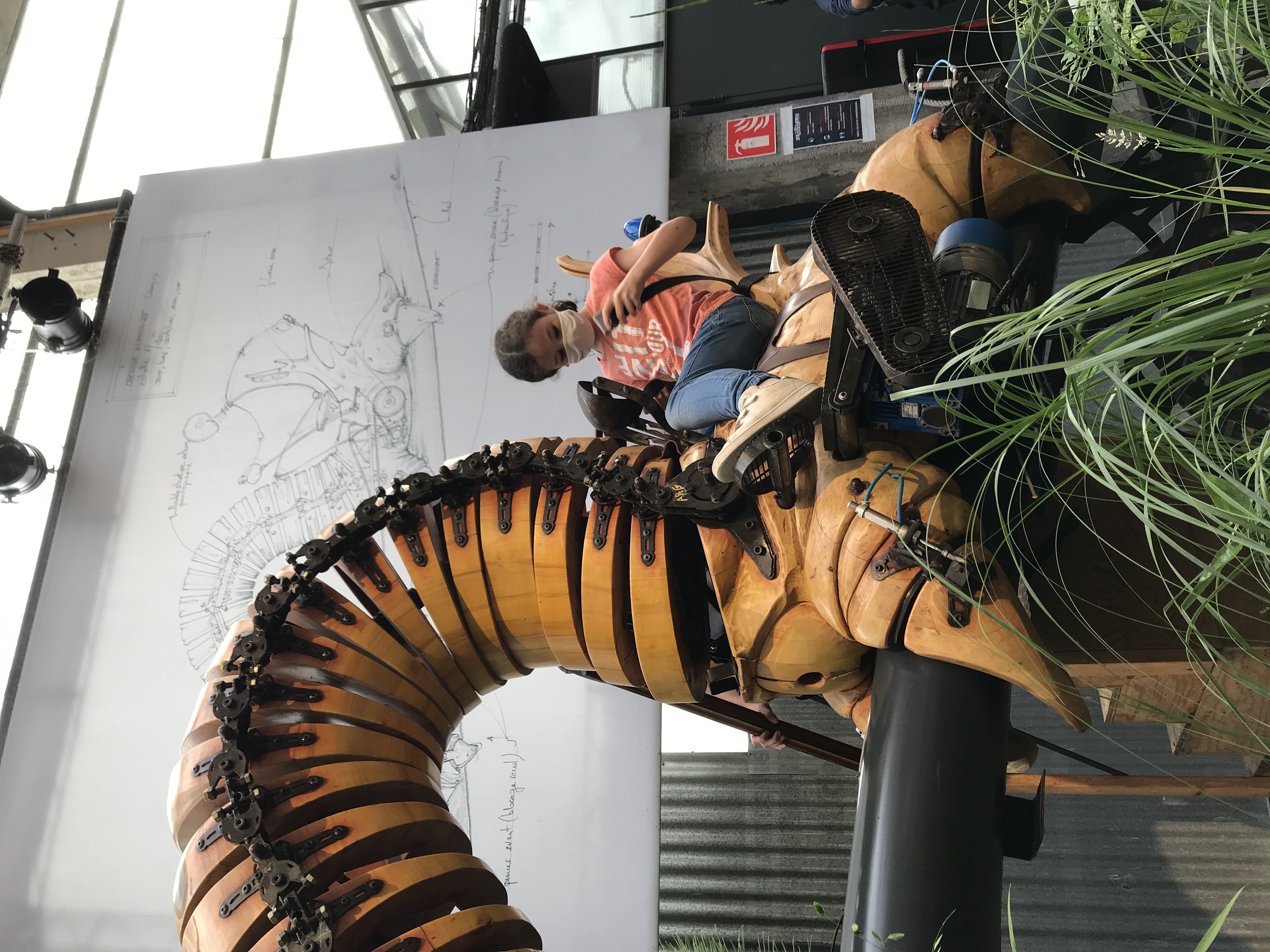 Quelle belle journée nous avons passée mardi 29 juin pour notre sortie scolaire! Le soleil s’était invité et nous a accompagnés du début à la fin. Nous avons emprunté toutes sortes de transports en commun: bus, tram et navibus. Après avoir salué le majestueux éléphant, nous sommes partis à notre rendez-vous de 10h au Carrousel des Mondes Marins pour une visite guidée, suivie d’un tour dont petits et grands se sont délectés! Puis, ce fut au tour de la galerie des Machines où Tiphaine, Amandine et Sarah ont eu la chance d’en faire fonctionner quelques-unes. Après un passage dans la serre tropicale et un tour très instructif aux ateliers de fabrication, nous sommes partis dévorer notre pique-nique sur les bords de Loire et sauter sur les trampolines de la « Lune »! Sous la Titan grise, nous avons ensuite emprunté la nouvelle ligne de Navibus vers Chantenay. Et c’est le nez au vent que nous avons fait route jusqu’au LAB, puis suivi la ligne verte jusqu’au Jardin Extraordinaire. Nous avons encore pu jouer un bon moment avant de naviguer à nouveau sur la Loire et prendre le bus à Trentemoult jusqu’à l’école, enchantés par cette magnifique journée!
