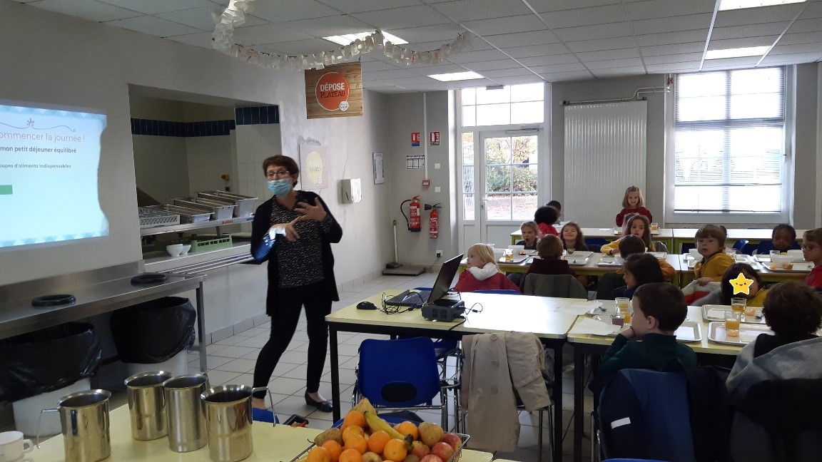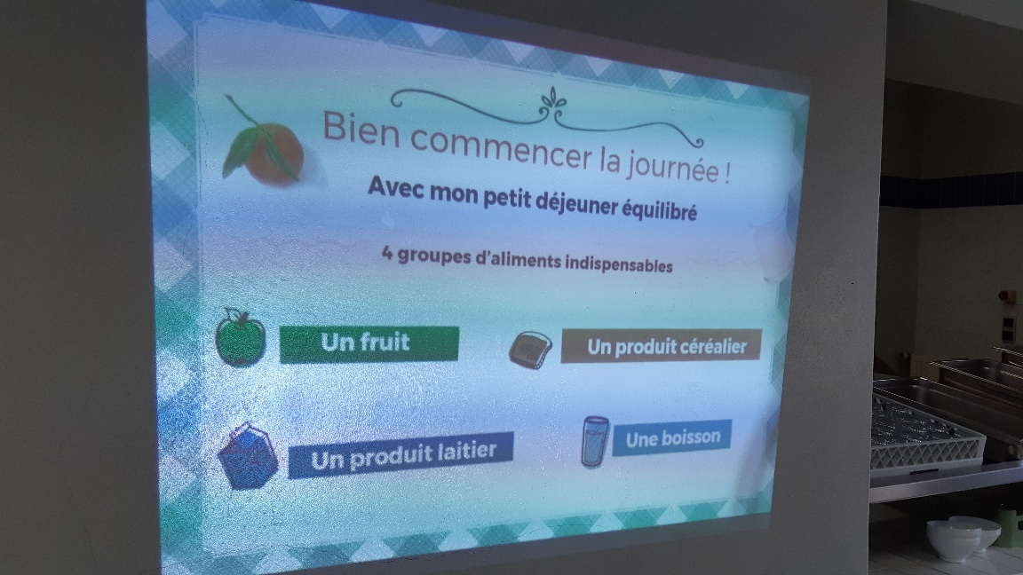 La société de restauration Scolarest propose tous les ans aux GS et aux 6e de l’Etablissement une sensibilisation avec une nutritionniste sur les bienfaits du petit déjeuner sur la forme physique et mentale pour entamer la journée.