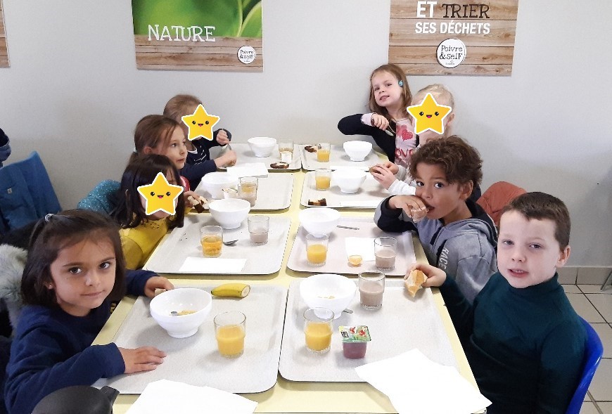 Ils ont pu découvrir les différentes familles d’aliments nécessaires à un petit déjeuner équilibré : un fruit (compote, fruit frais, jus de fruit…), un laitage (yaourt, fromage, lait…), un produit céréalier (céréales, pain, biscuit…), le tout accompagné d’une boisson (lait chocolaté, eau, jus de fruit…). Ils sont repartis en pleine forme pour le reste de la journée. Les familles ont reçu un dépliant pour présenter les bienfaits du petit déjeuner et pour permettre aux enfants de parler de cette expérience.
