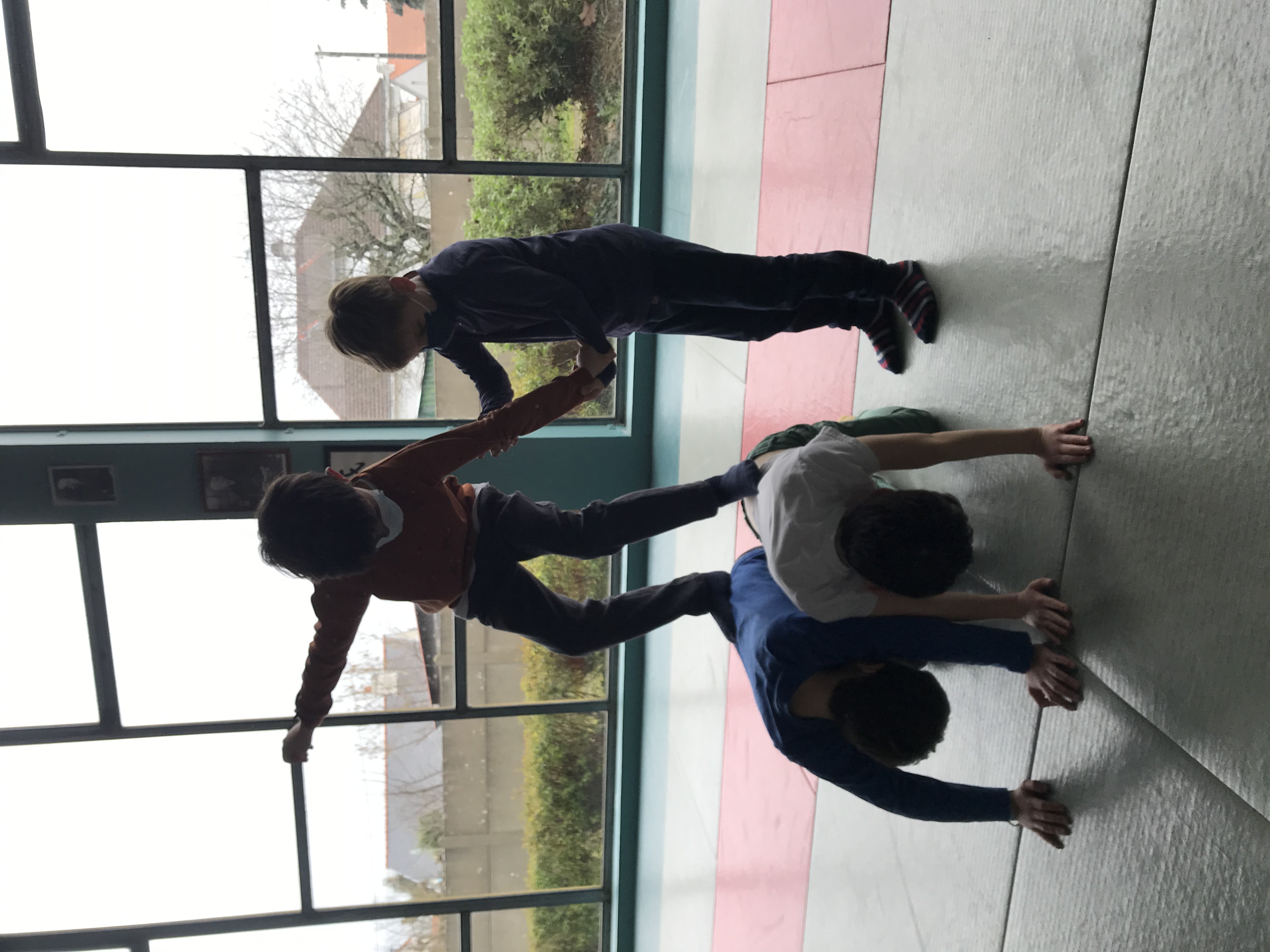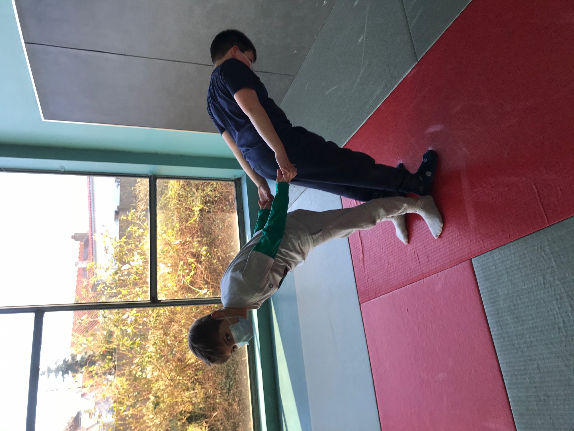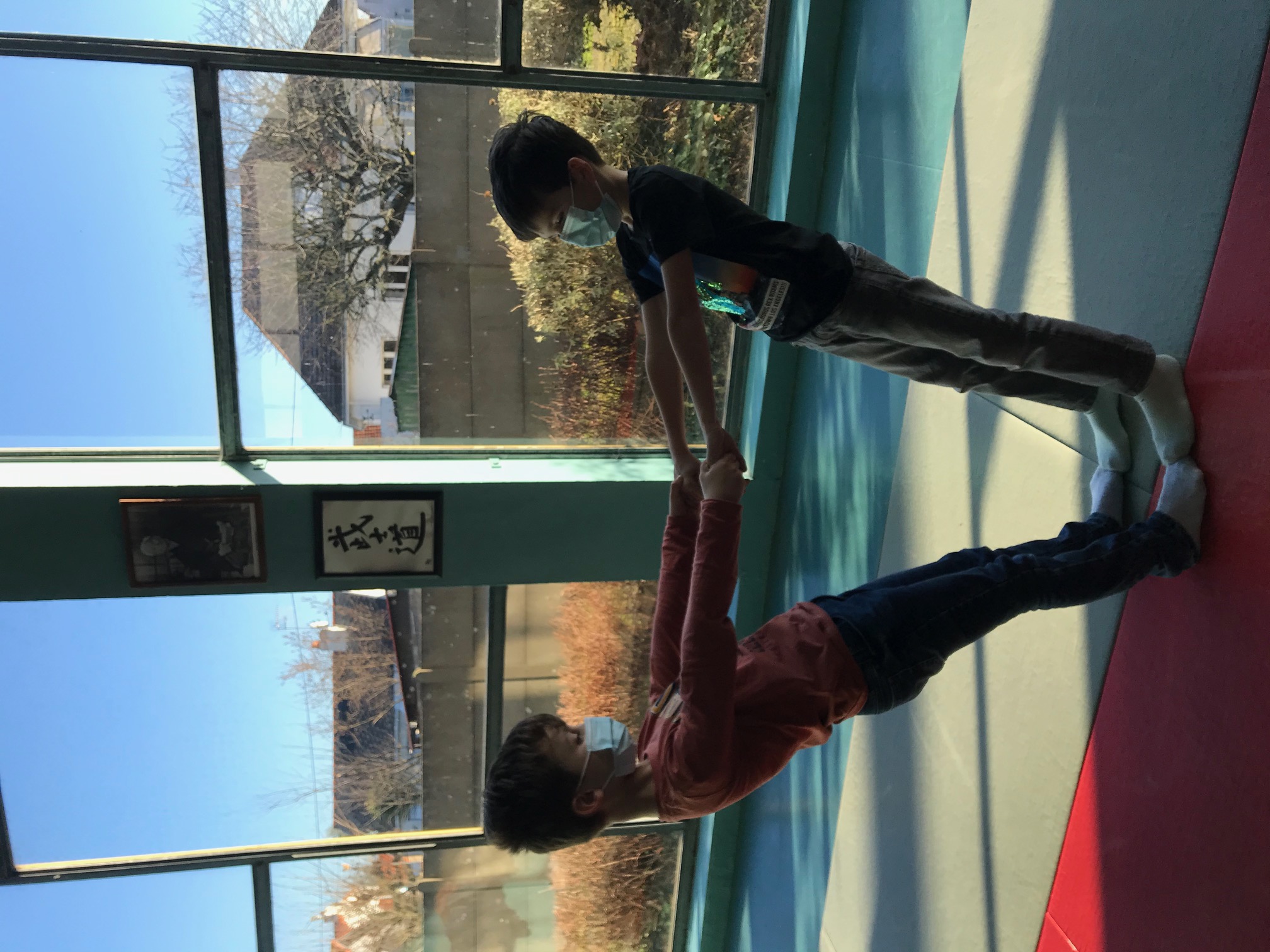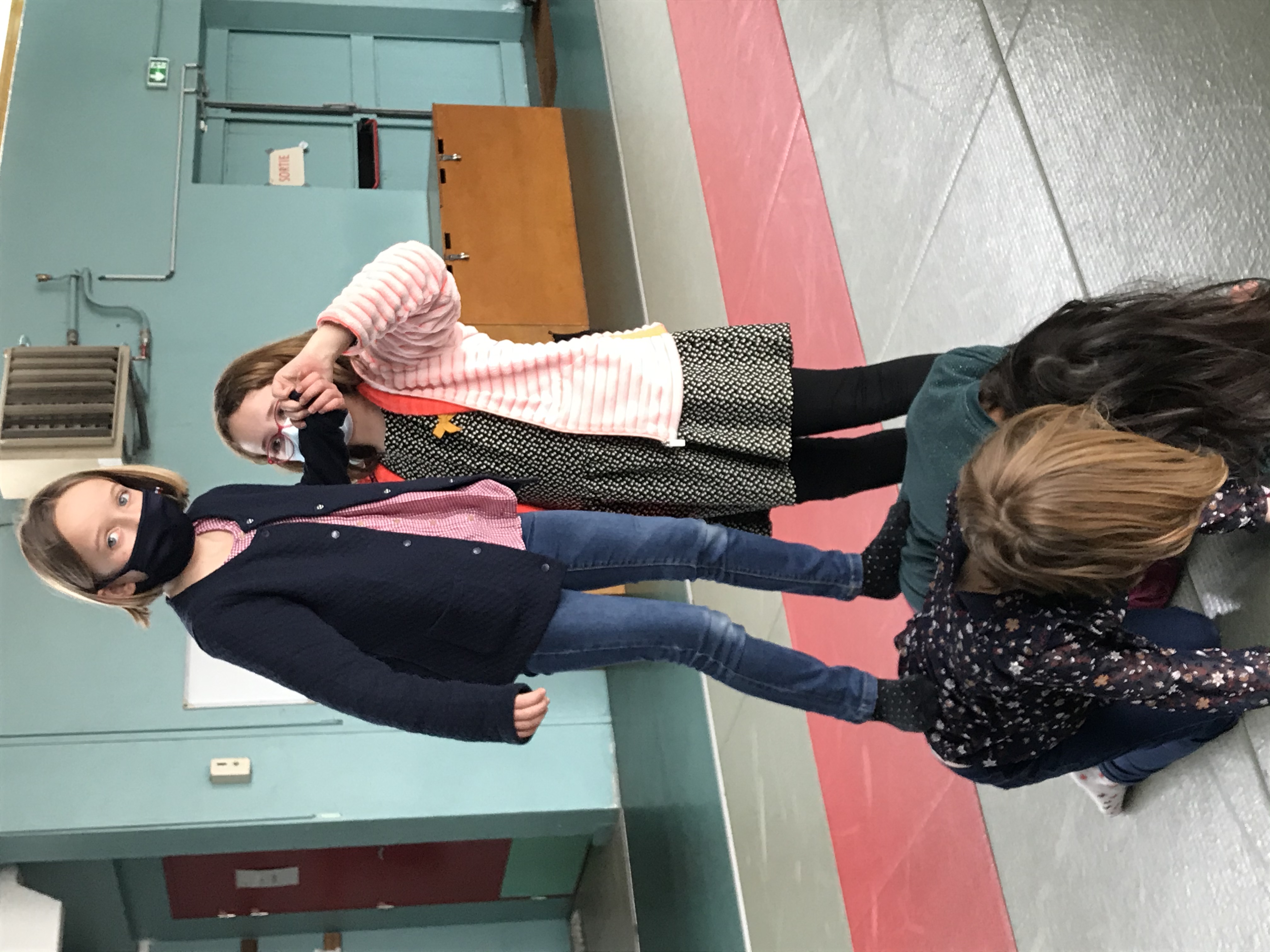 Tous les vendredis matins, pendant toute la troisième période, les CE2 se rendent au dojo de la Trocardière afin de découvrir l’acrosport! Même masqués, c’est un vrai plaisir d’éprouver les sensations de déséquilibre et d’équilibre (parfois fragile) dans des postures plus ou moins complexes. C’est à pied, avec une belle marche dynamique que nous nous rendons jusqu’à la salle, en traversant le parc de la Cité Radieuse. Les séances commencent toujours par un échauffement mesuré des principales articulations sollicitées. Cette discipline demande à chacun d’être à l’écoute de ses sensations et de faire confiance à son ou ses partenaires: c’est donc aussi un apprentissage en éducation morale et civique, comme souvent en sport! (respect de soi et des autres, respect des règles et des lieux, équité filles/garçons…)