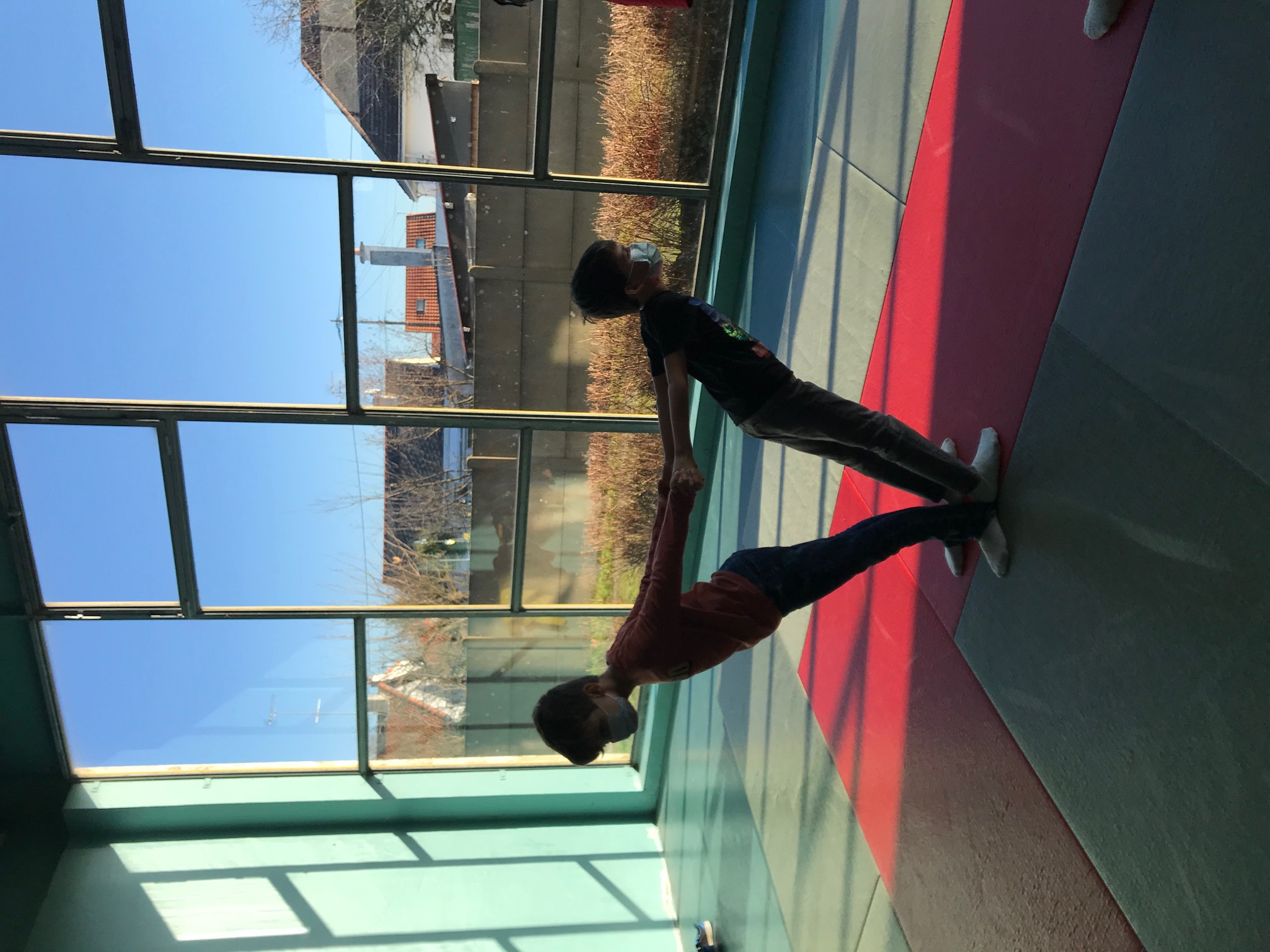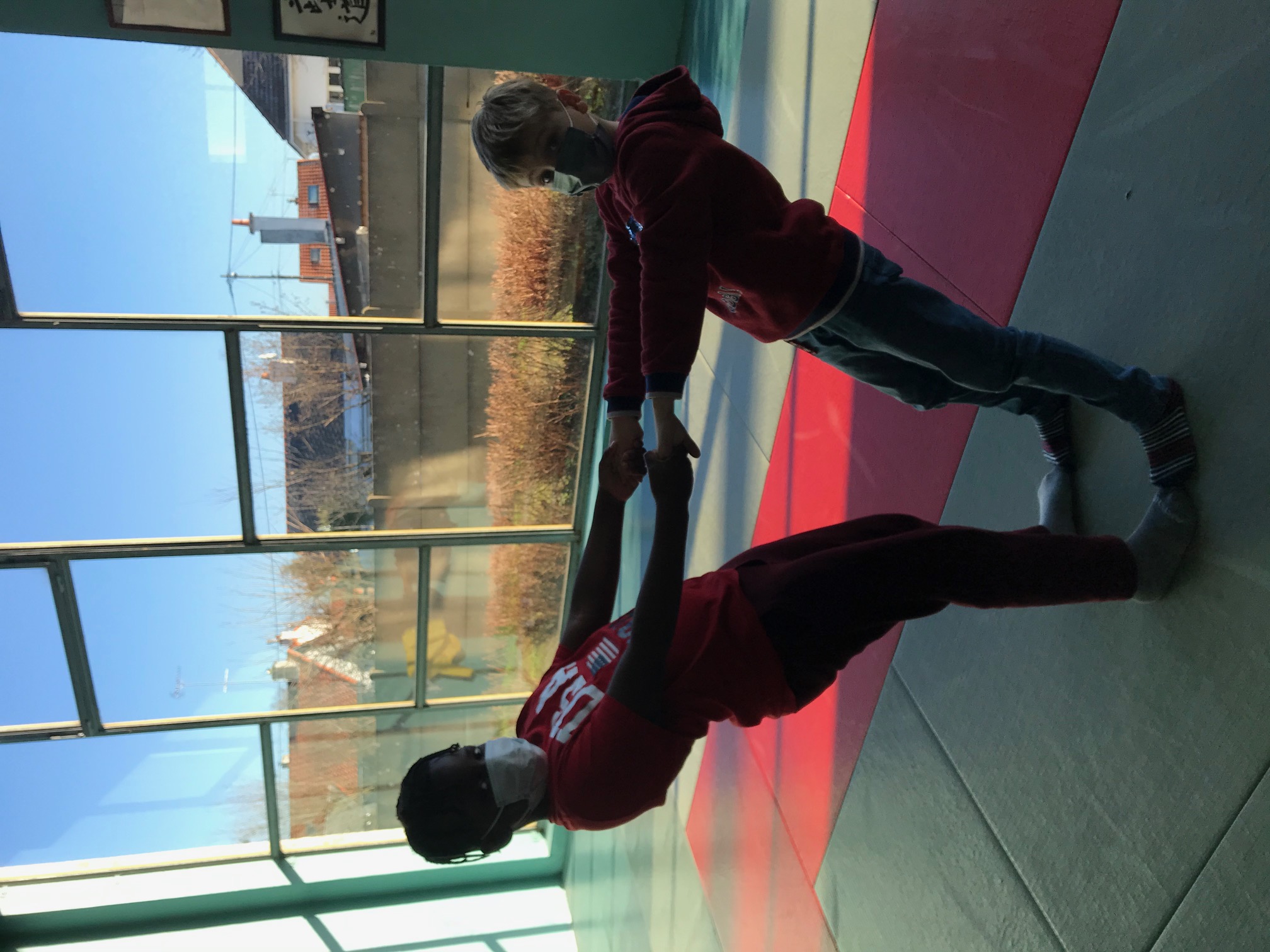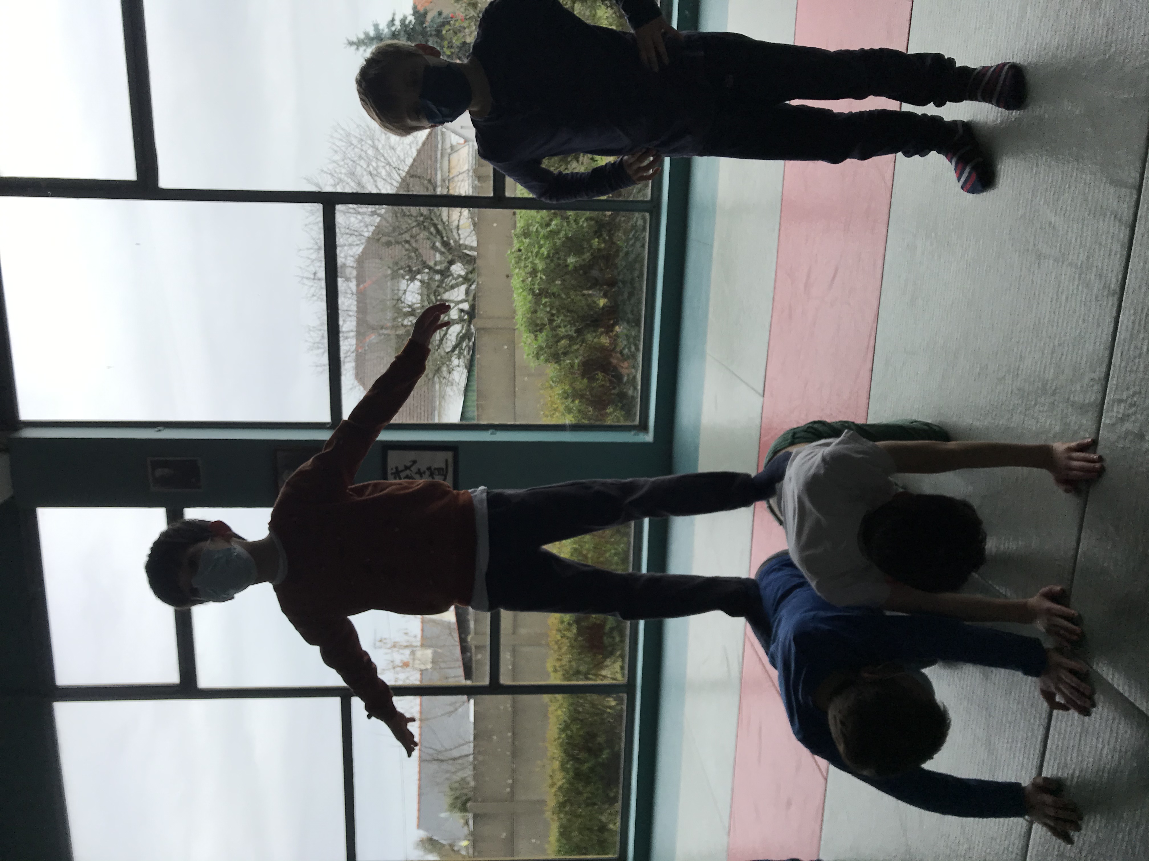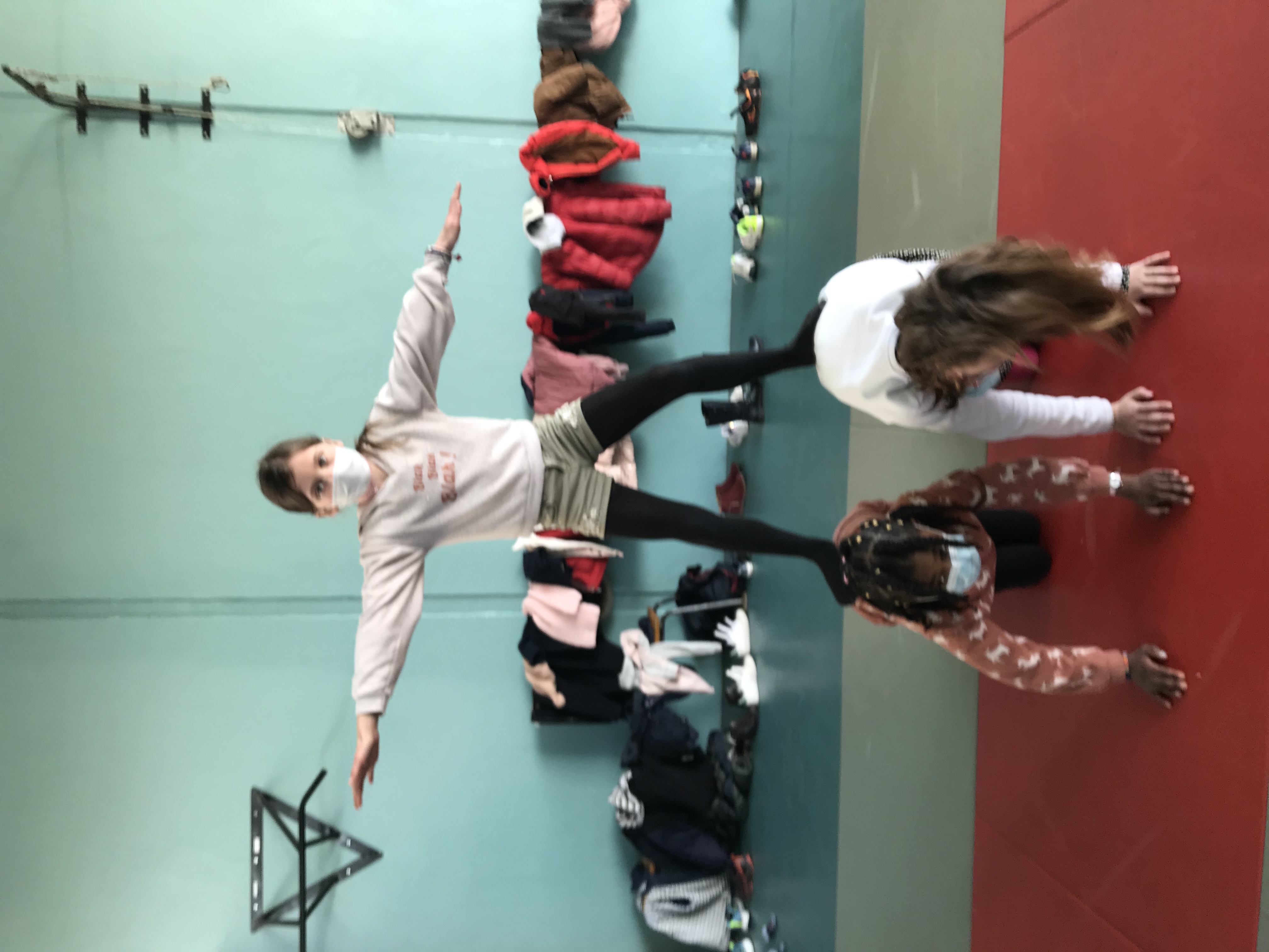 Tous les vendredis matins, pendant toute la troisième période, les CE2 se rendent au dojo de la Trocardière afin de découvrir l’acrosport! Même masqués, c’est un vrai plaisir d’éprouver les sensations de déséquilibre et d’équilibre (parfois fragile) dans des postures plus ou moins complexes. C’est à pied, avec une belle marche dynamique que nous nous rendons jusqu’à la salle, en traversant le parc de la Cité Radieuse. Les séances commencent toujours par un échauffement mesuré des principales articulations sollicitées. Cette discipline demande à chacun d’être à l’écoute de ses sensations et de faire confiance à son ou ses partenaires: c’est donc aussi un apprentissage en éducation morale et civique, comme souvent en sport! (respect de soi et des autres, respect des règles et des lieux, équité filles/garçons…)
