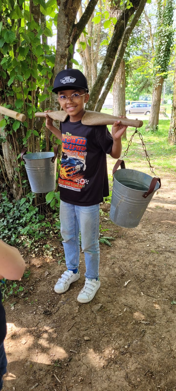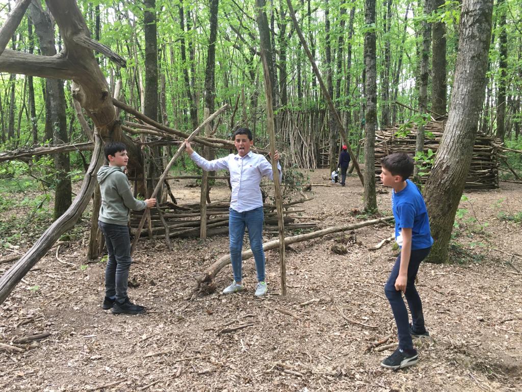 Nous avons commencé les activités cet après-midi entre balade en forêt et observation des empreintes d’animaux, soin du poney et pratique et découverte de la vie d’autrefois.