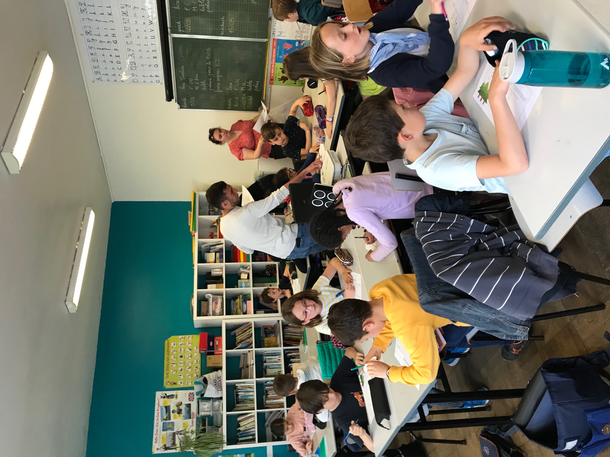 Le vendredi 6 mai, six étudiants de l’IUT GEA de Nantes sont venus en CE2 pour animer 3 grands jeux qu’ils avaient réalisés afin de sensibiliser les élèves au développement durable:
